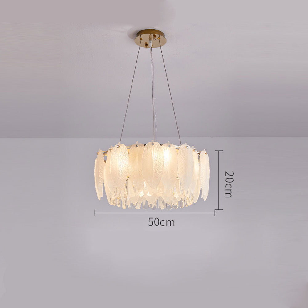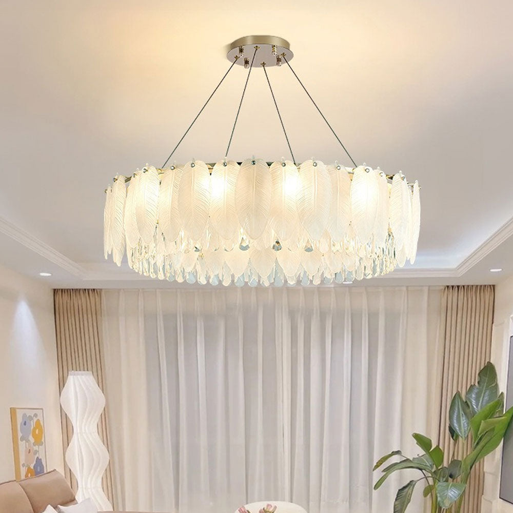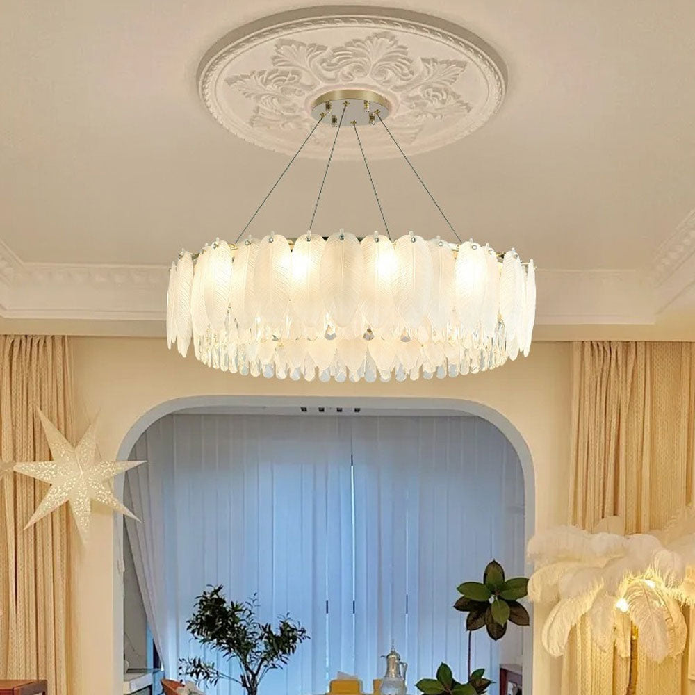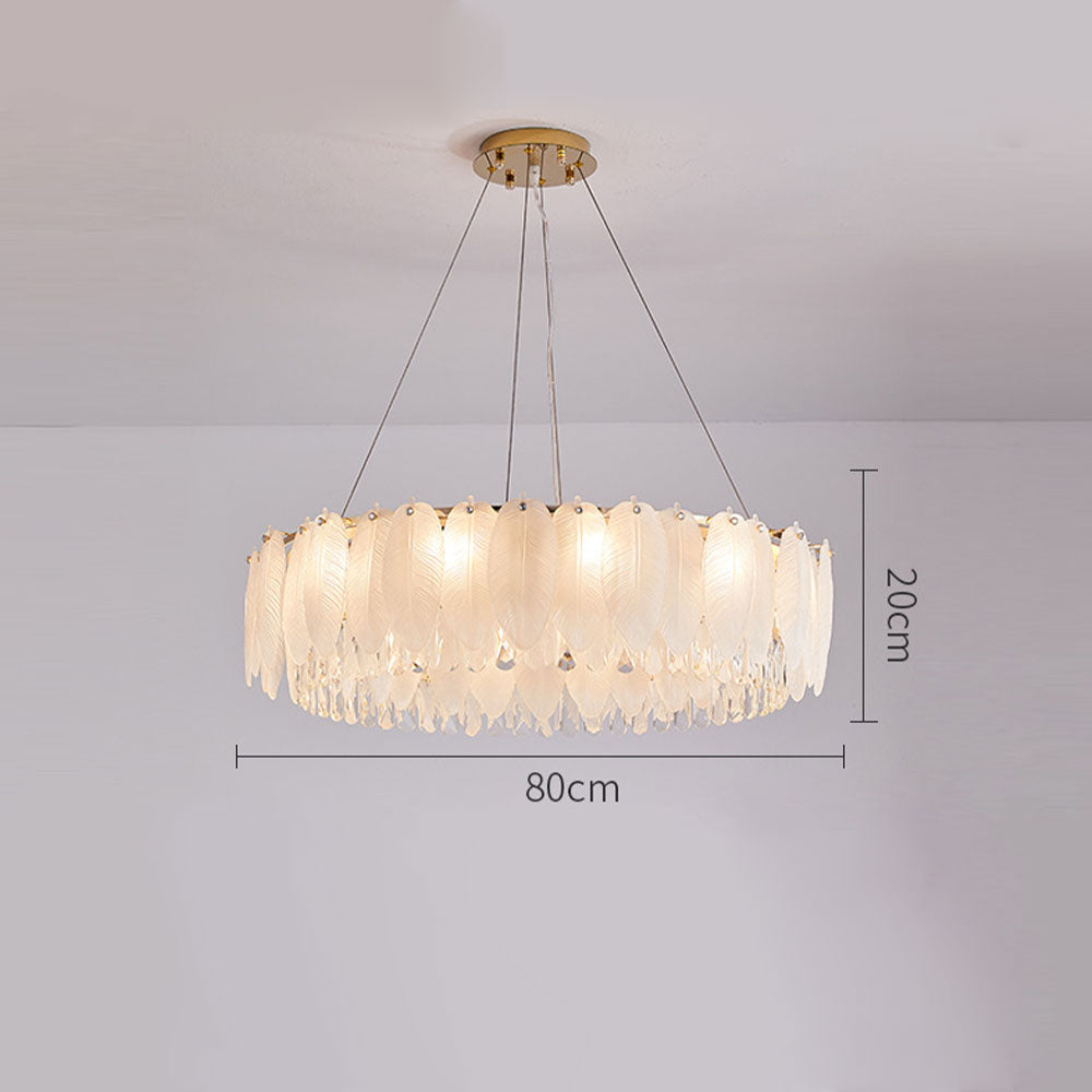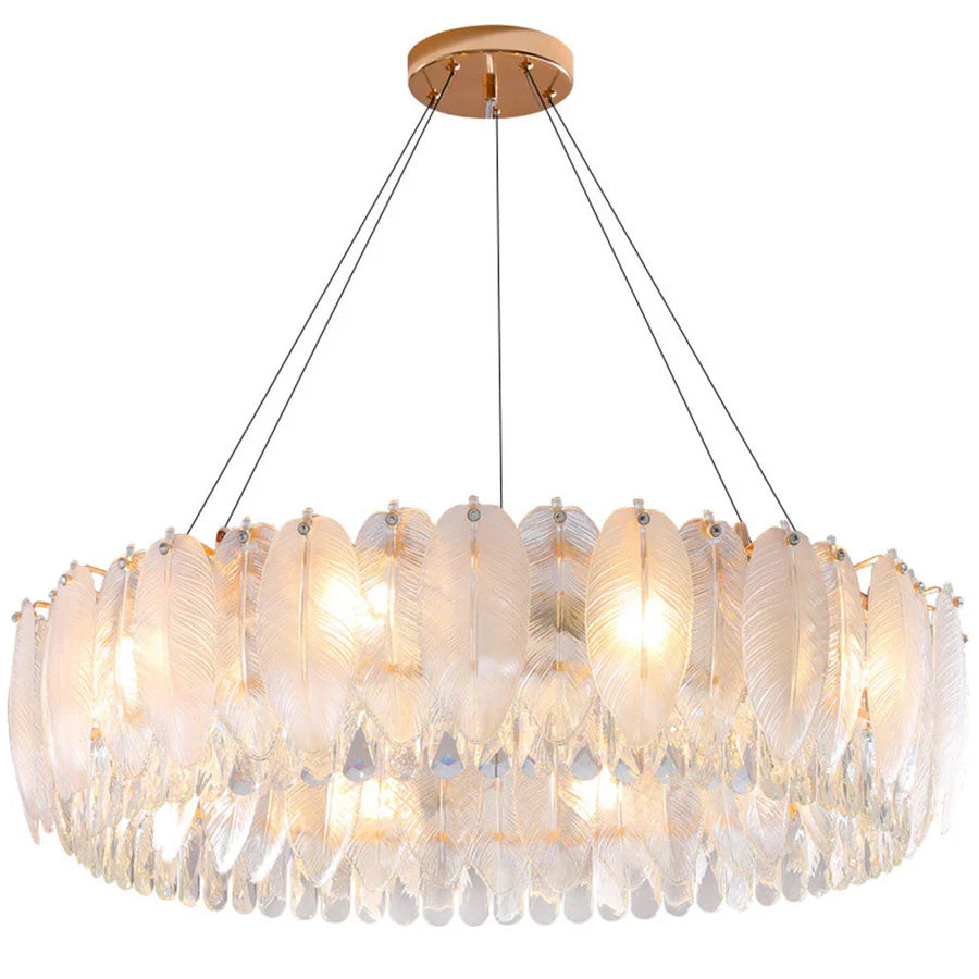 American Luxury Feather Shape Crystal Glass Round Chandelier