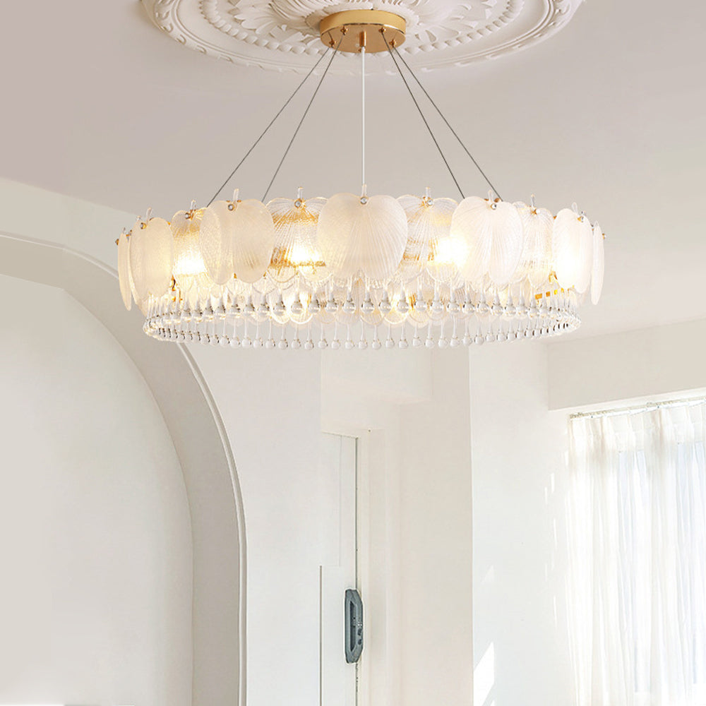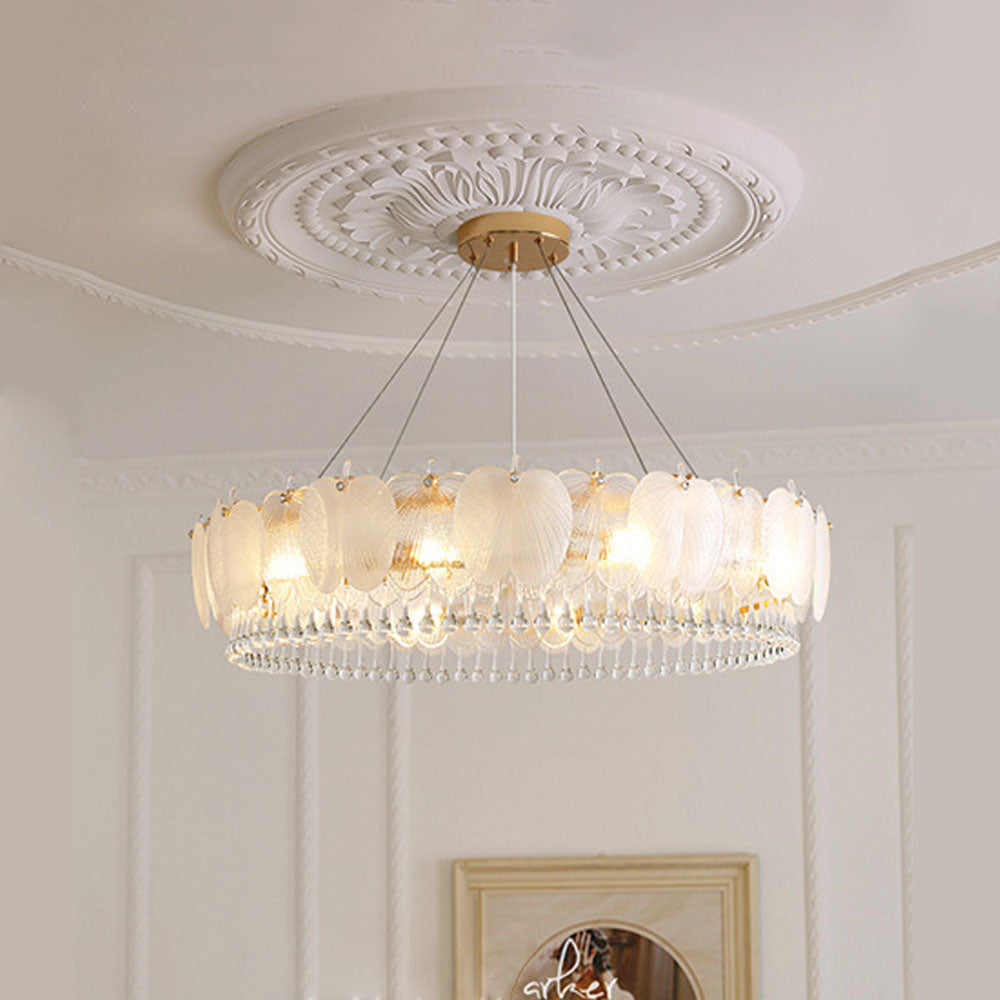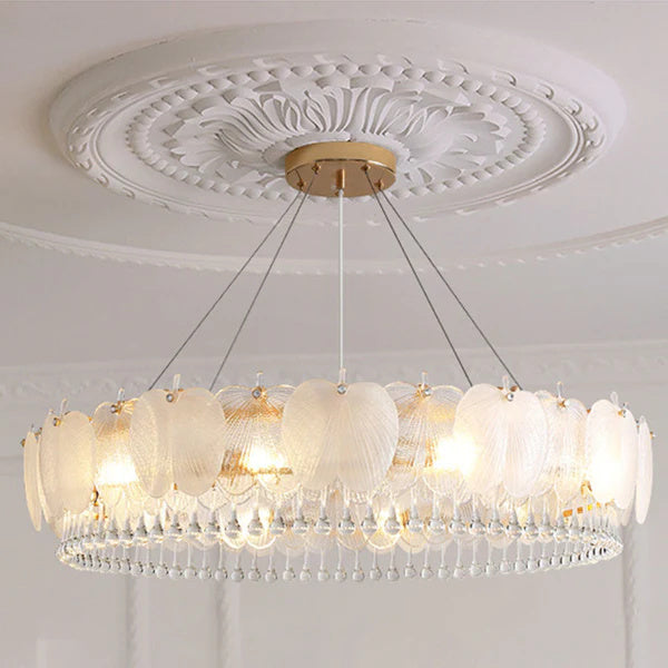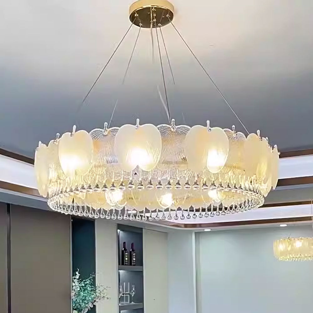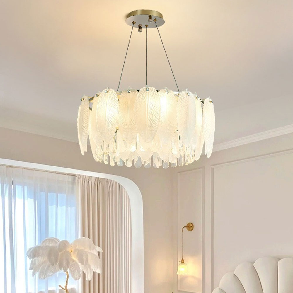 American Luxury Feather Shape Crystal Glass Round Chandelier