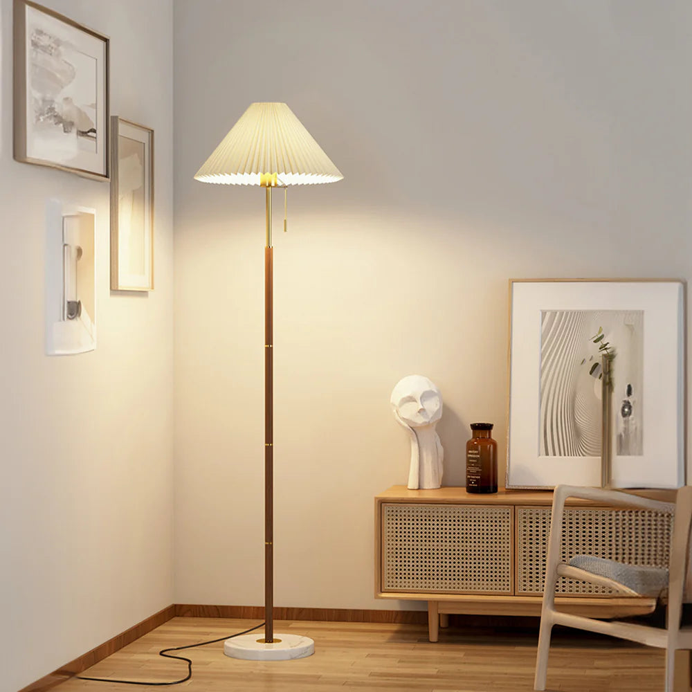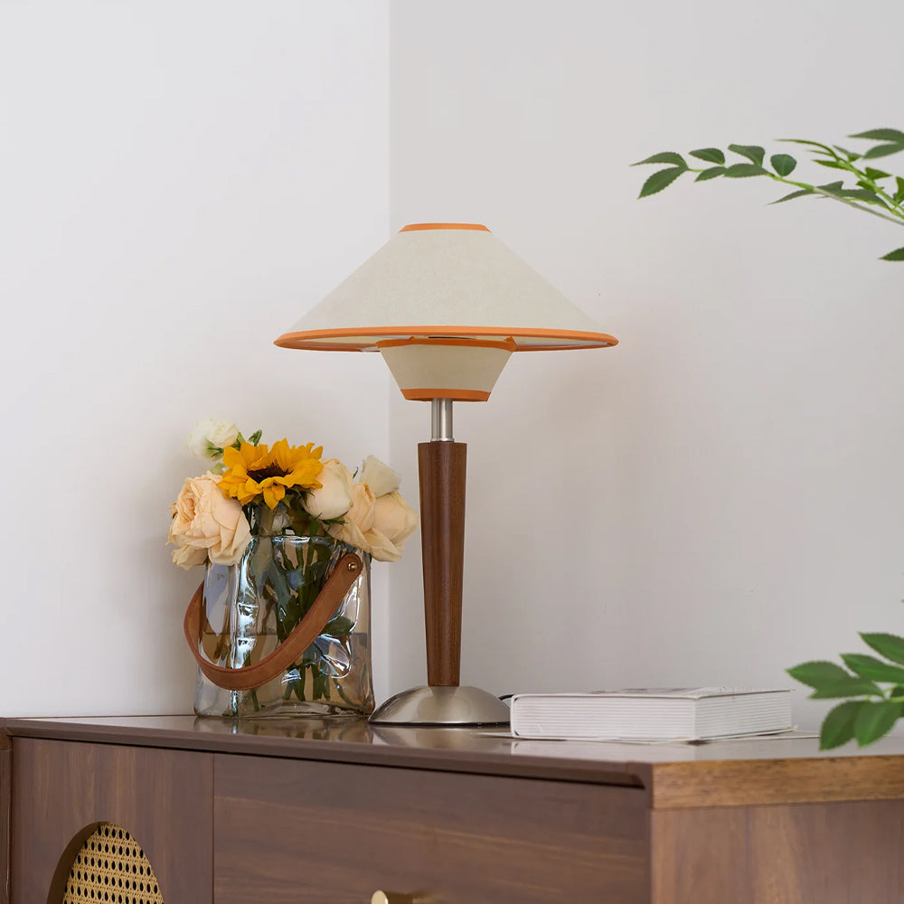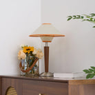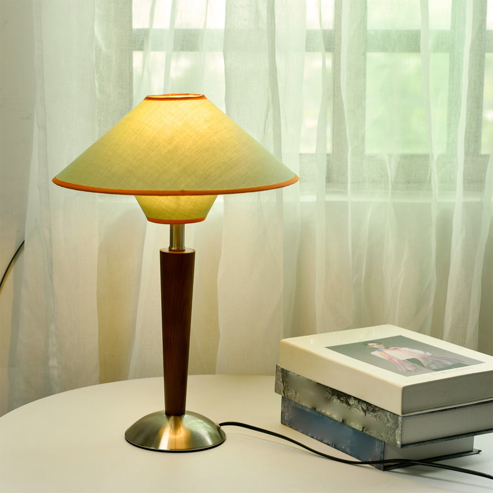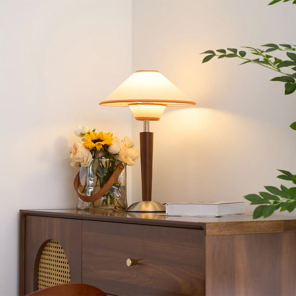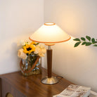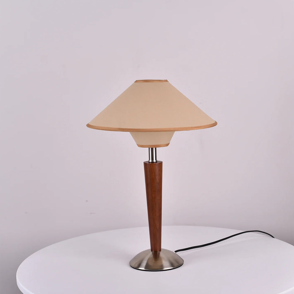 The Table Lamp features a refined wooden base crowned by a soft fabric shade. This harmonious blend of organic texture and subtle metal accents creates a look of understated elegance, effortlessly elevating any contemporary space.