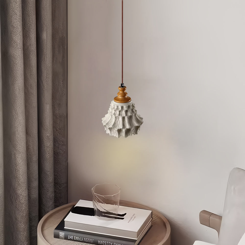 Design Style: This pendant light has a unique design style, perfectly blending cream-colored plaster with wooden elements, presenting a special yet high-end visual effect. The plaster part uses special lines and a design shape, making the entire pendant light stand out; the wooden part uses simple lines and natural textures, adding a sense of simplicity and heaviness to the entire chandelier. This pendant light is suitable for both modern and simple restaurant environments and for homes that pursue a natural and warm style.