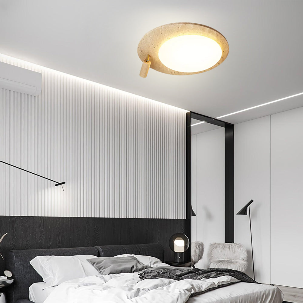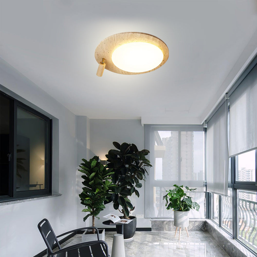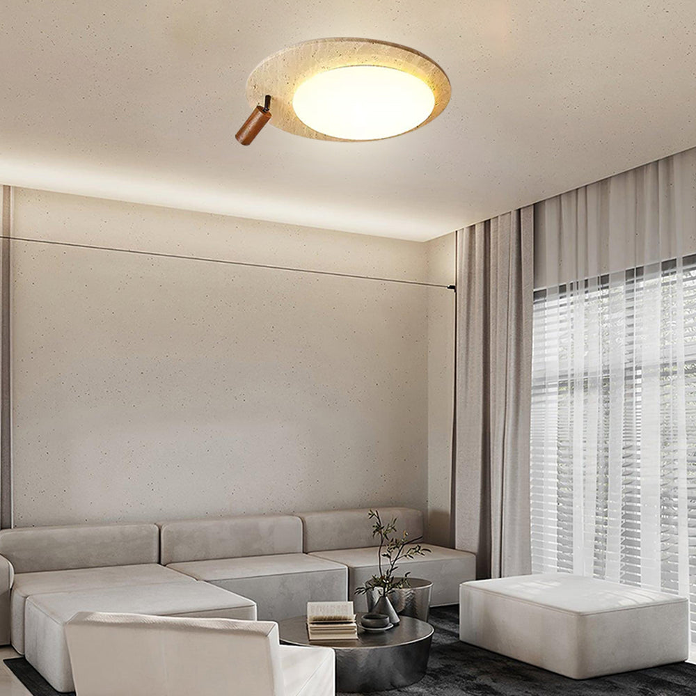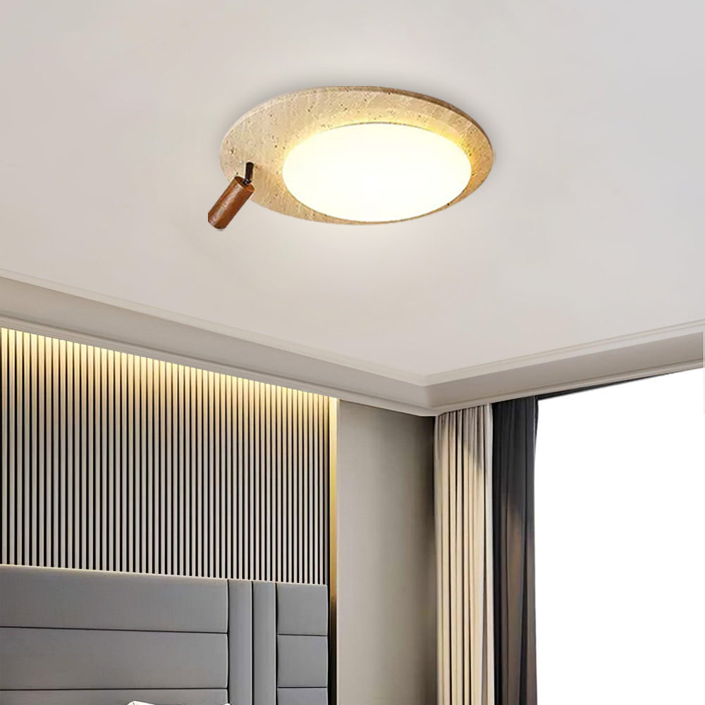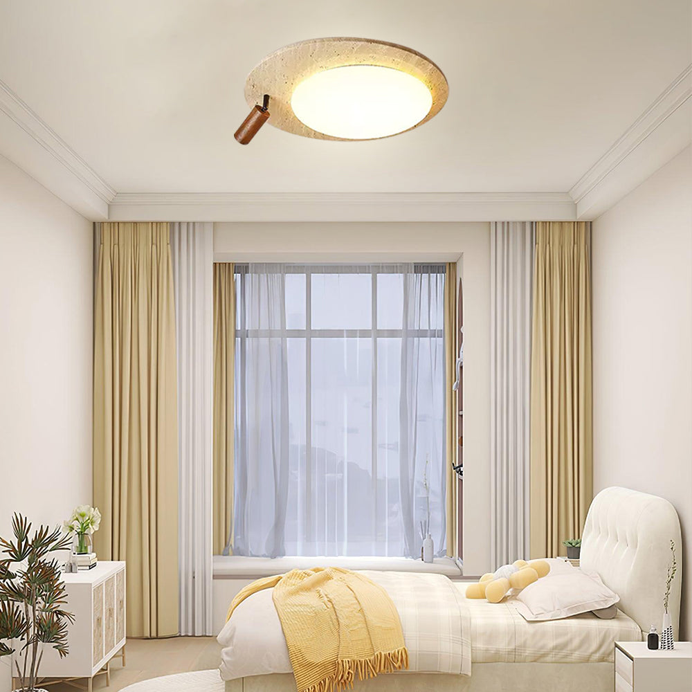 This ceiling lamp blends natural elements and minimalist design for a serene indoor ambiance. Crafted from off-white travertine and solid wood, it offers a warm texture and soft lighting effect. With its modern, simple style, it’s ideal for bedrooms, studies, and similar spaces, delivering a cozy lighting experience.