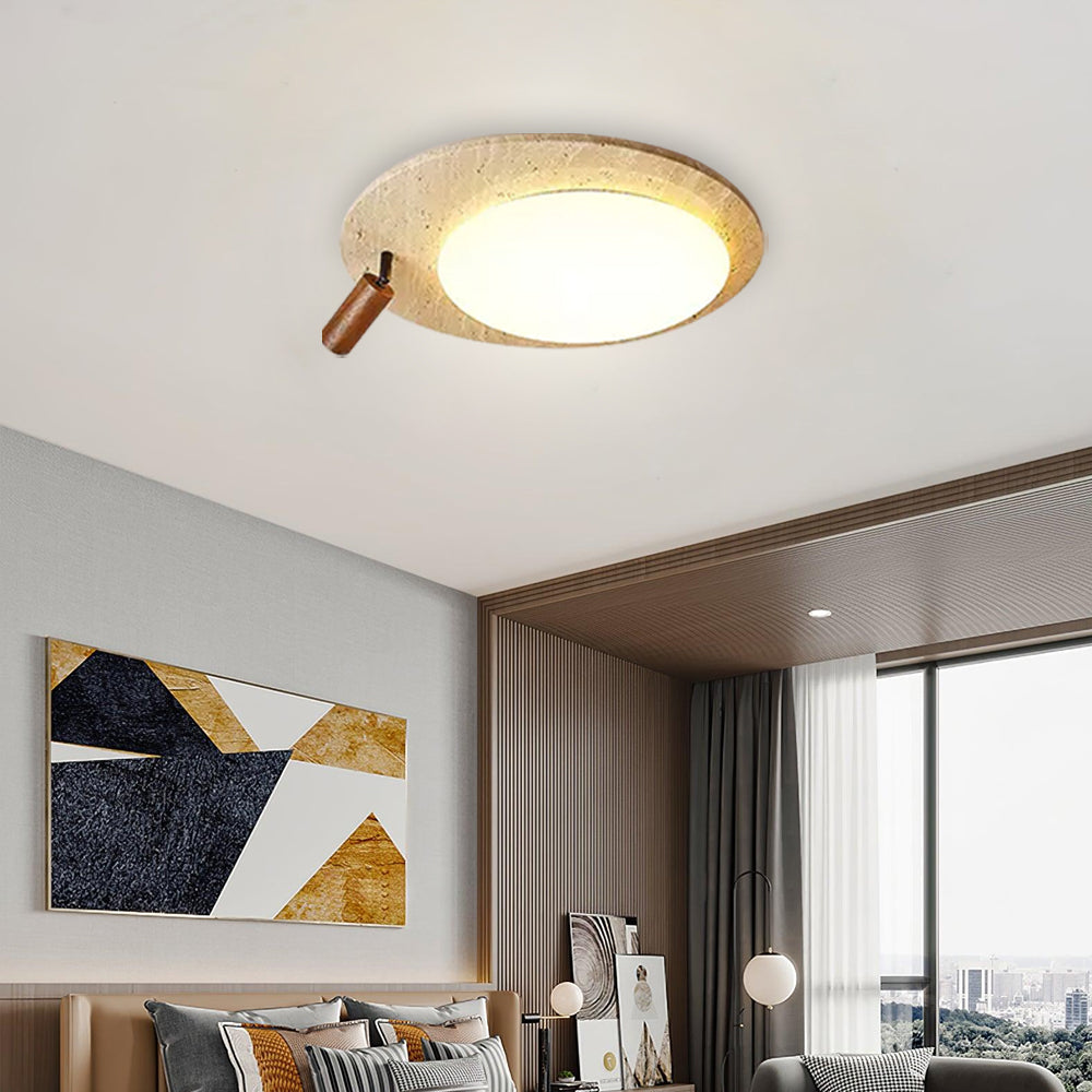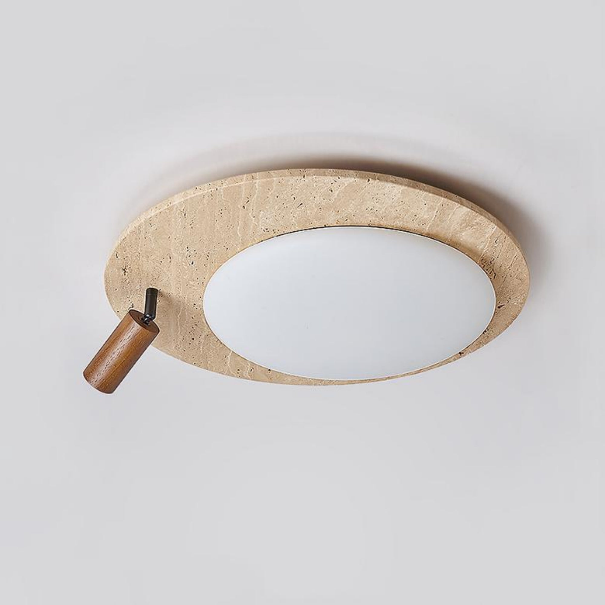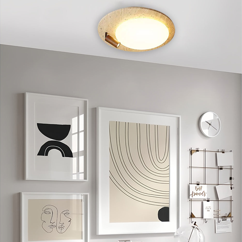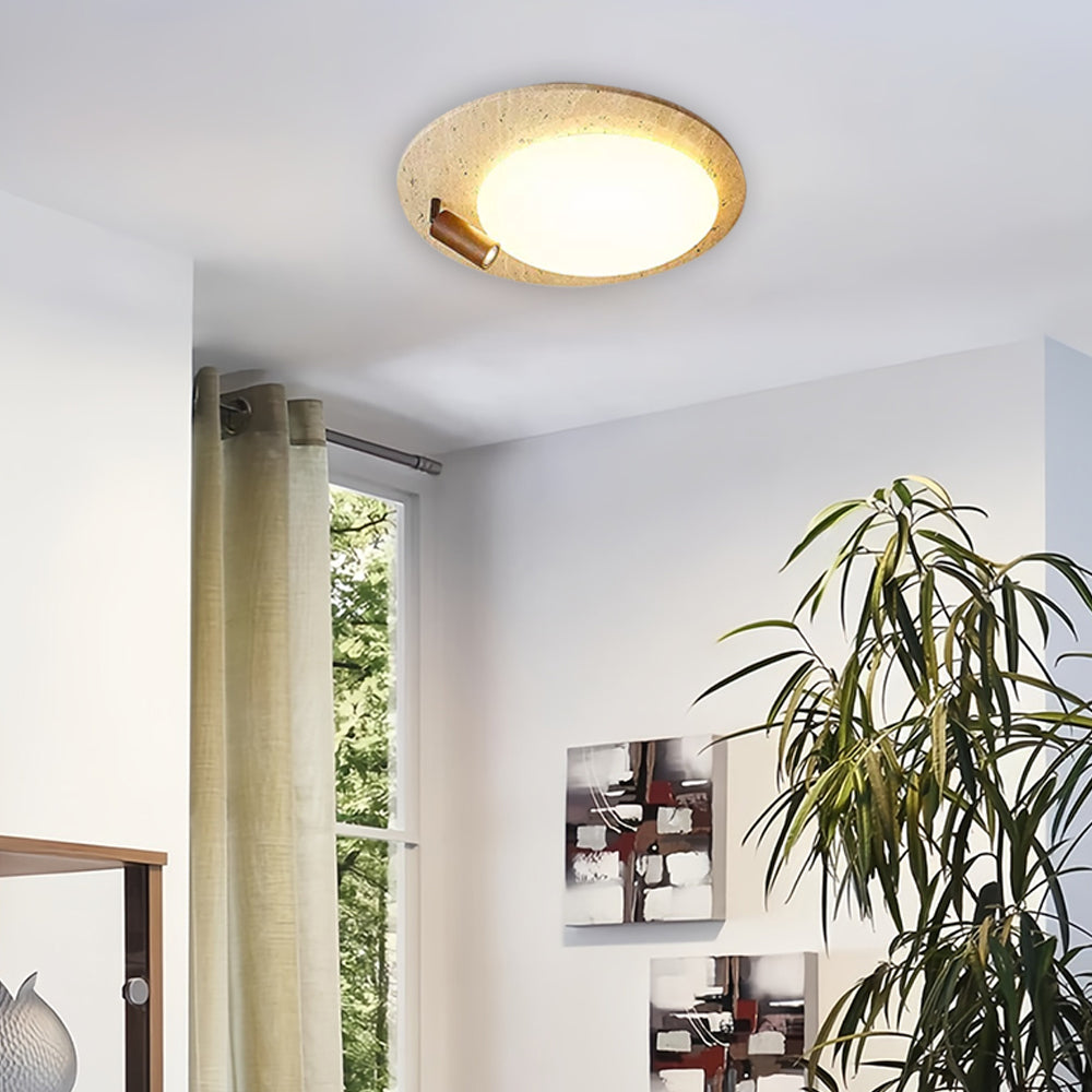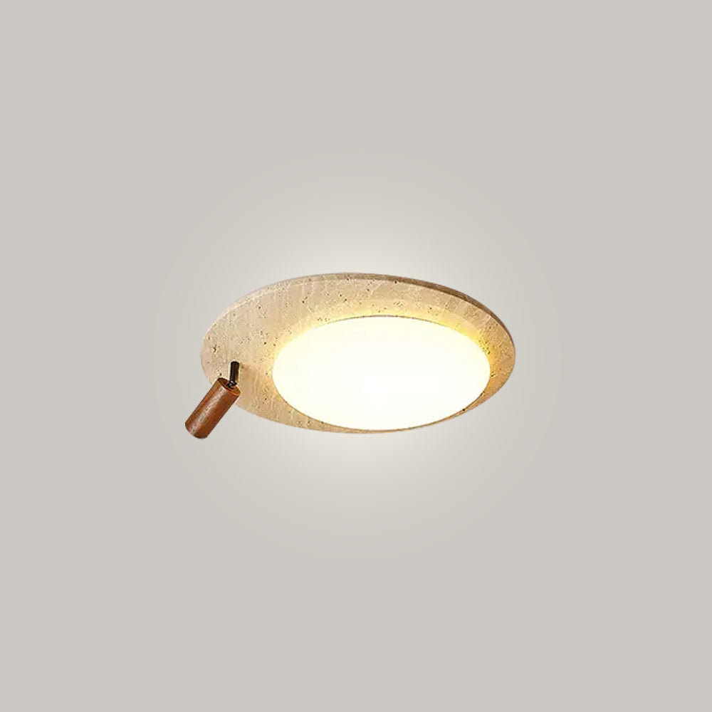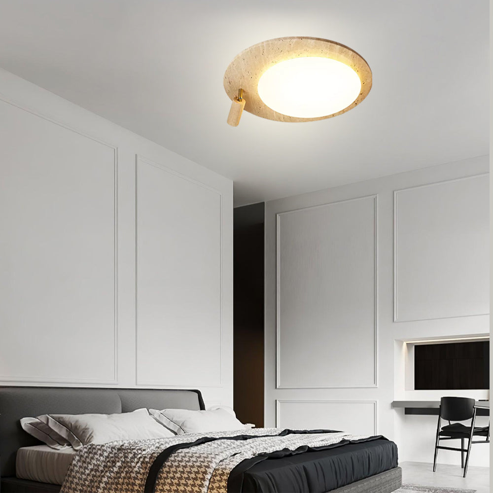 This ceiling lamp blends natural elements and minimalist design for a serene indoor ambiance. Crafted from off-white travertine and solid wood, it offers a warm texture and soft lighting effect. With its modern, simple style, it’s ideal for bedrooms, studies, and similar spaces, delivering a cozy lighting experience.