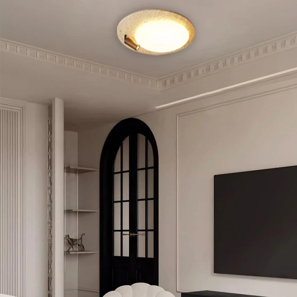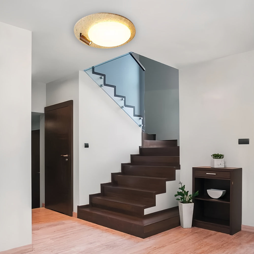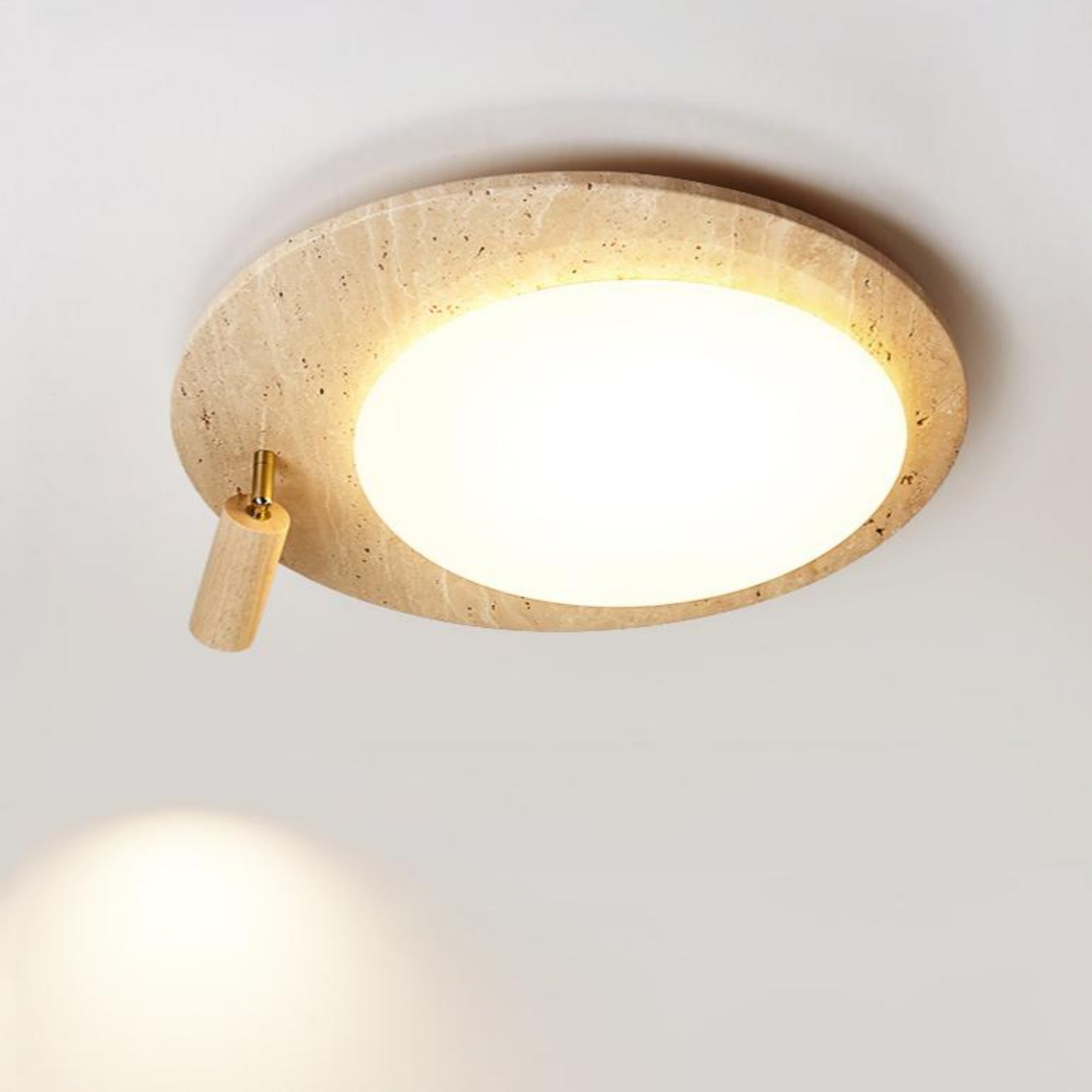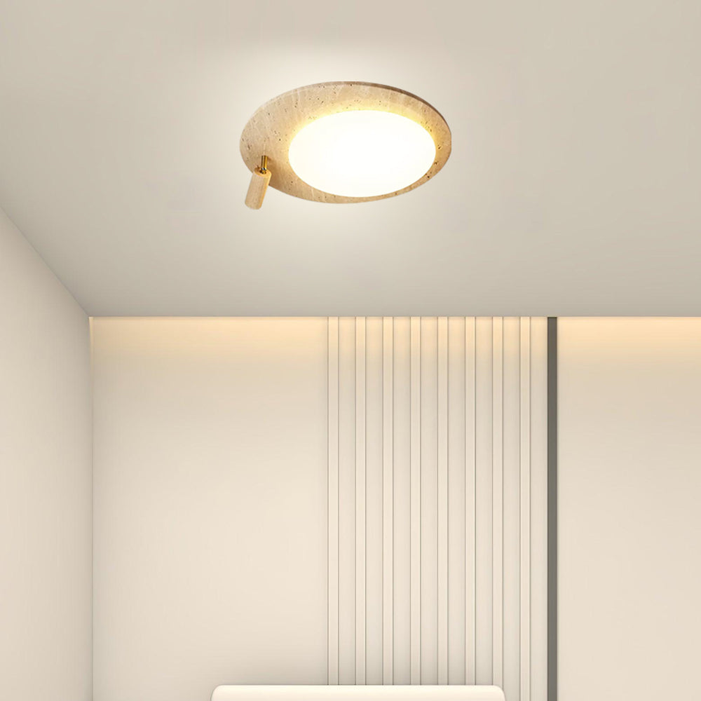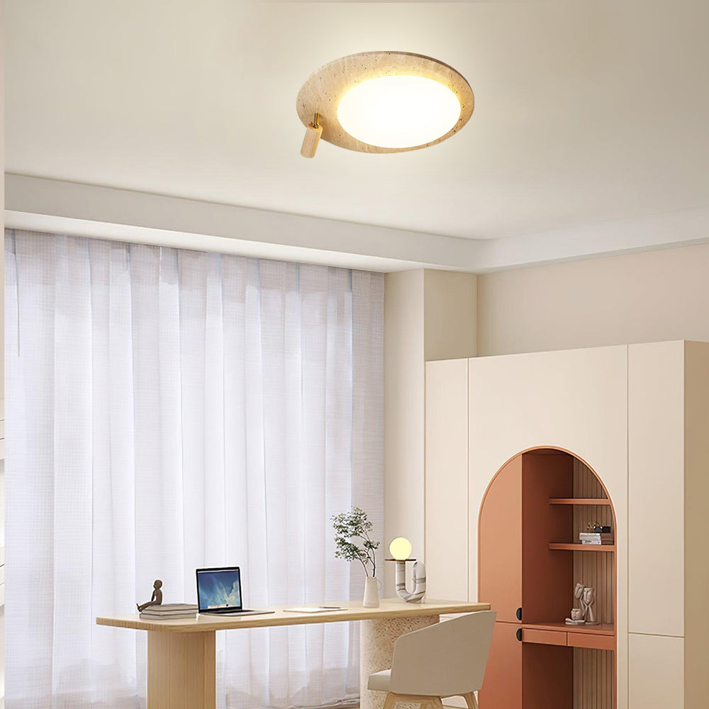 This ceiling lamp blends natural elements and minimalist design for a serene indoor ambiance. Crafted from off-white travertine and solid wood, it offers a warm texture and soft lighting effect. With its modern, simple style, it’s ideal for bedrooms, studies, and similar spaces, delivering a cozy lighting experience.