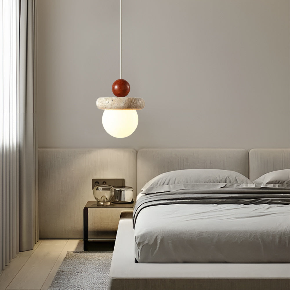 This pendant light, with its lovely cream color theme, brings a warm and cozy atmosphere to the children's bedroom. The lamp is made of high-quality solid wood and matched with off-white travertine, showing natural and environmentally friendly characteristics. The unique design style not only ensures the safety of the children's room, but also has decorative effects. It is a good choice for children's bedrooms.