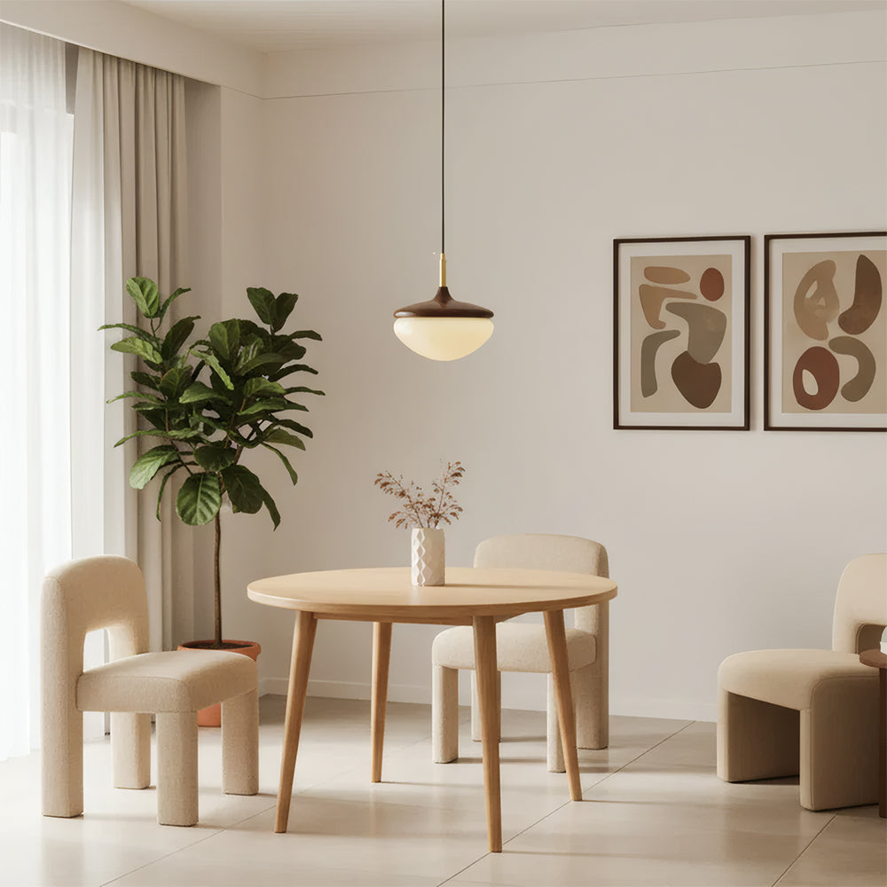 This small pendant light draws design inspiration from the rounded shape of hazelnuts. The light penetrates the glass and emits a soft warm glow, creating a comfortable atmosphere. It is suitable for spaces such as cafe bars, restaurant booths, and study corners.
