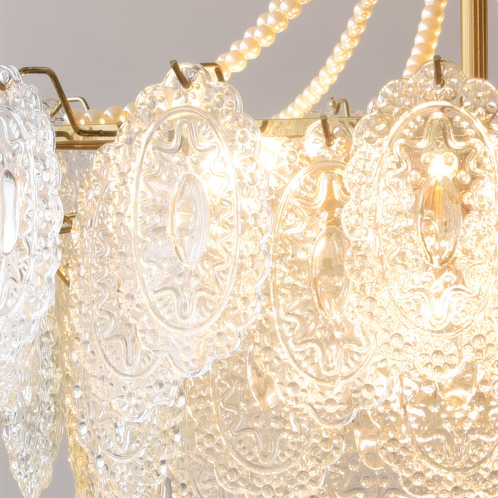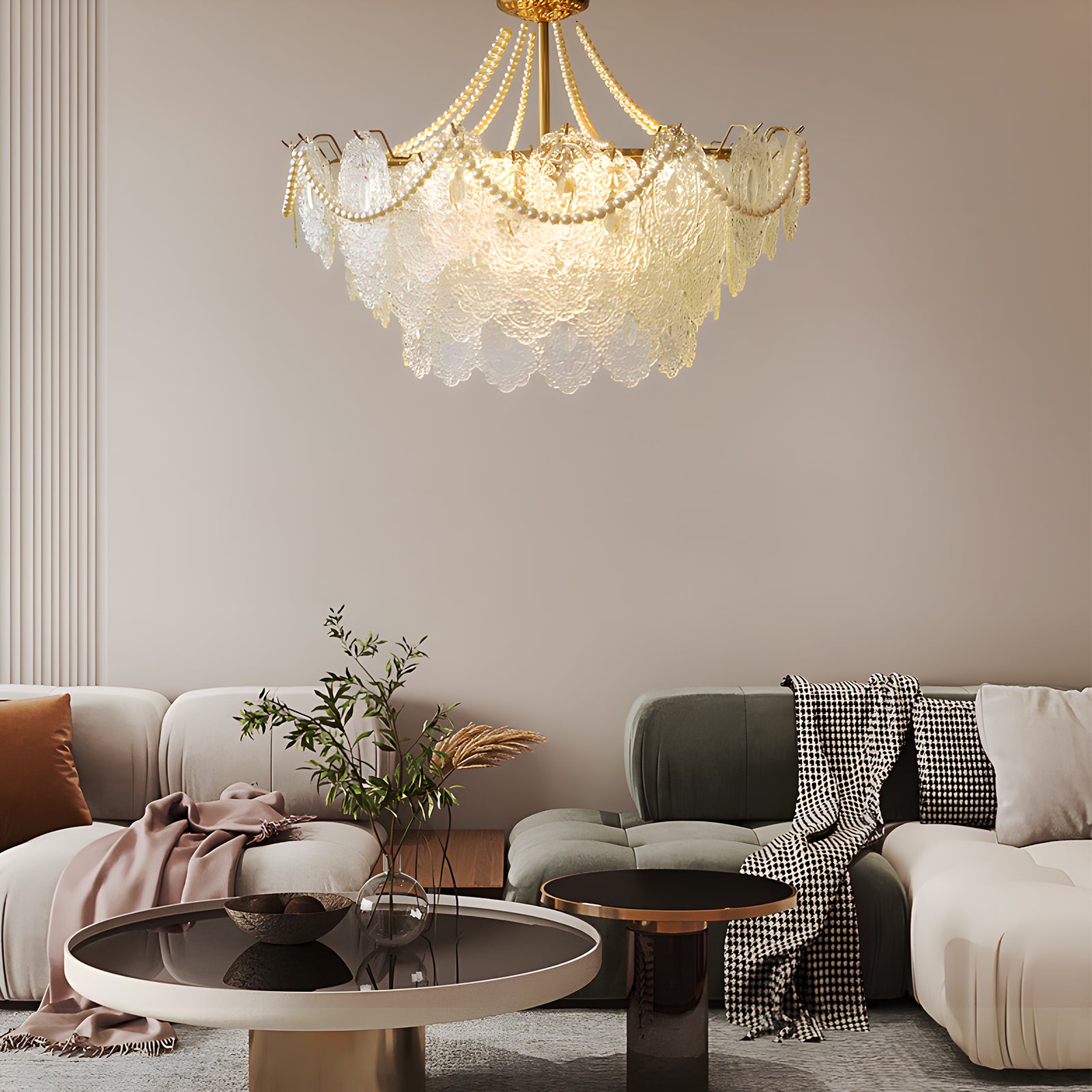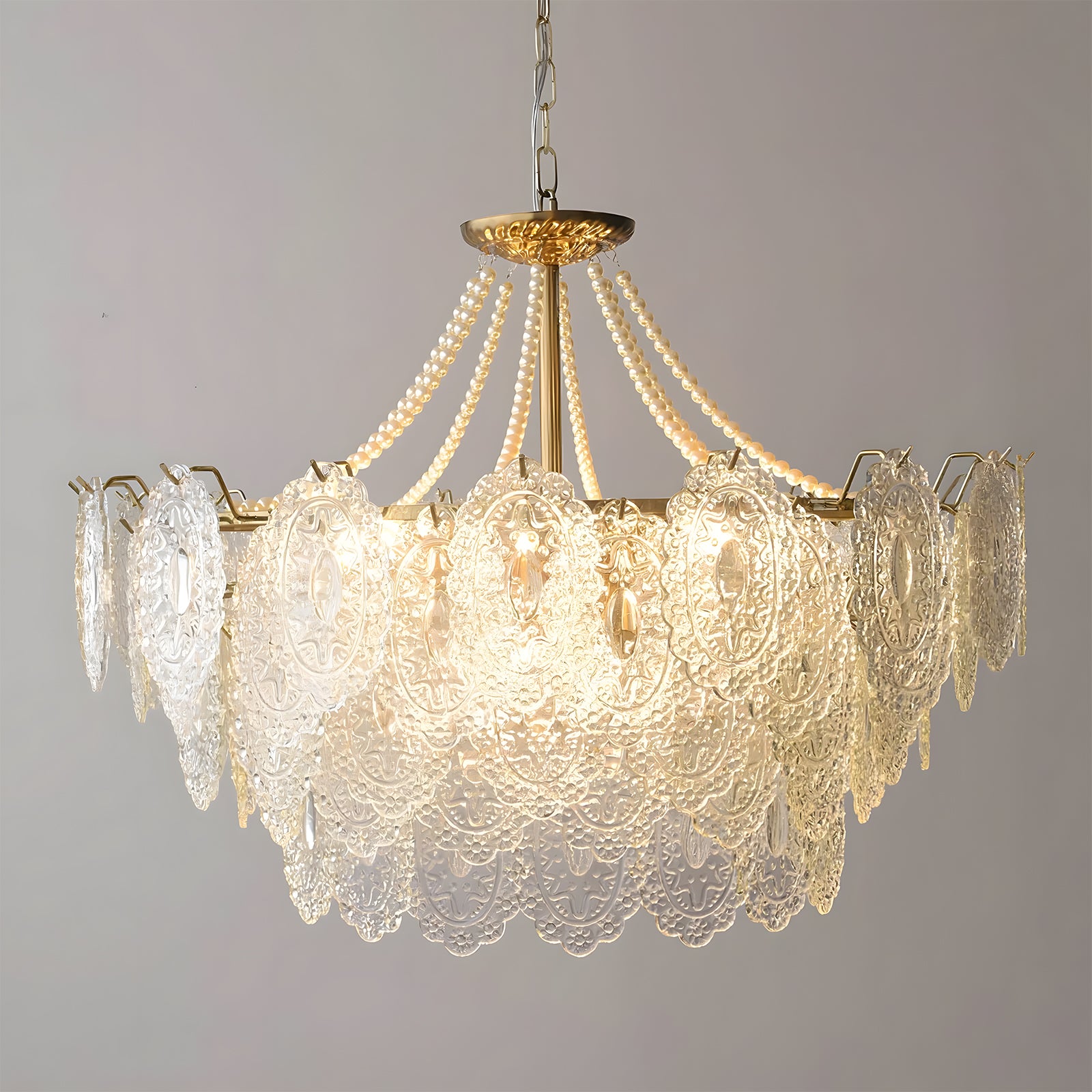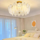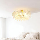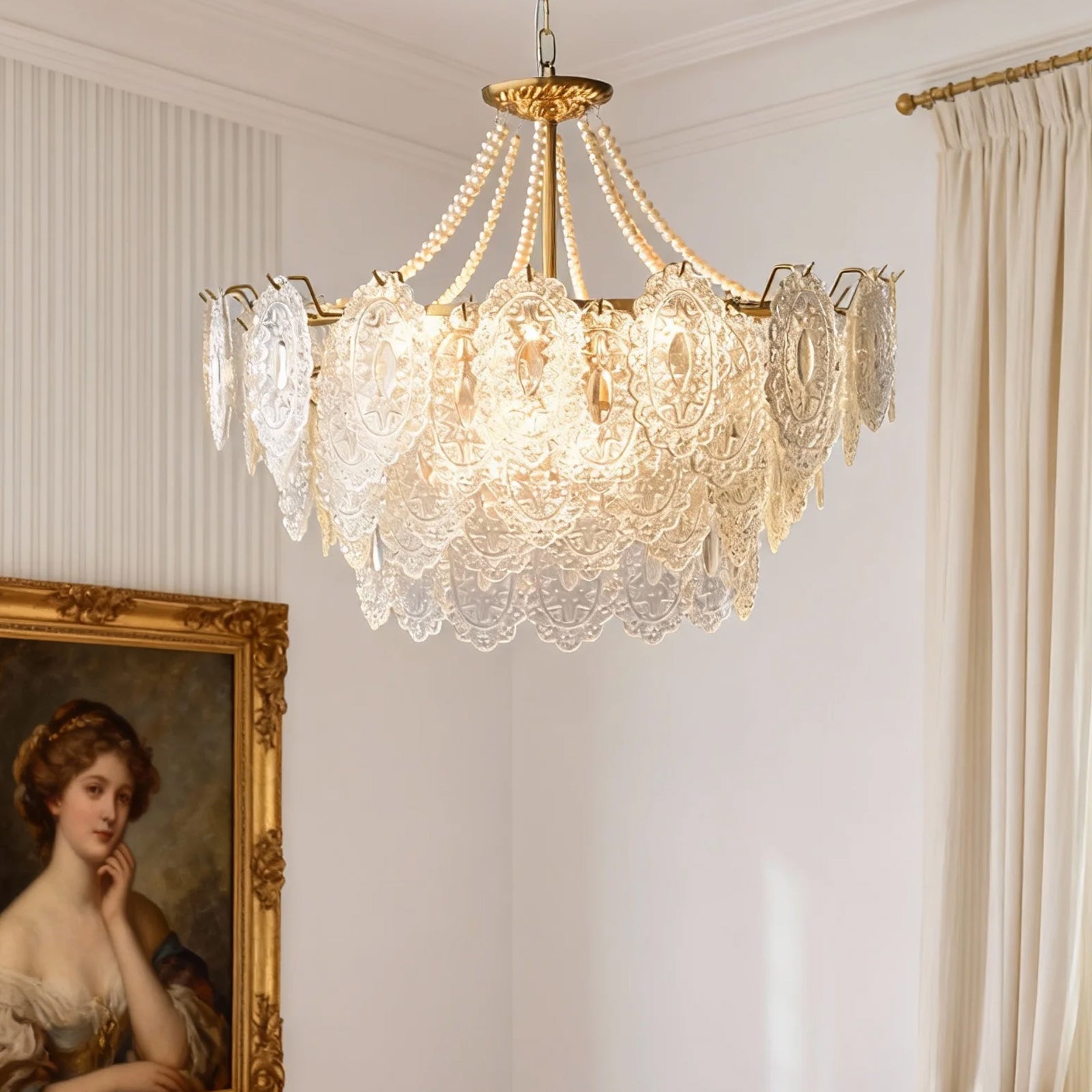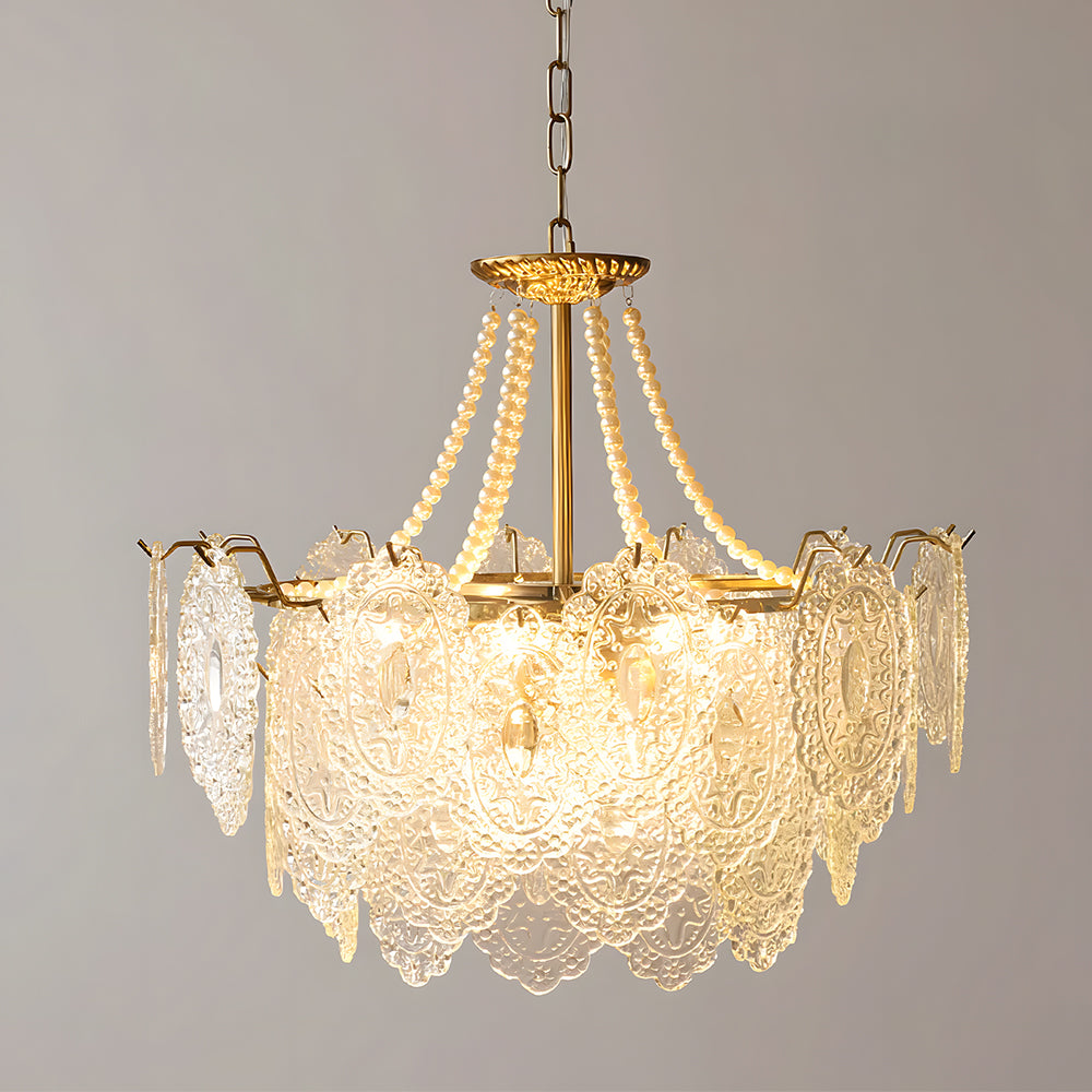 Light refracts through layered feather-textured glass, creating a soft, hazy glow. Suitable for banquet halls, vintage-style rooms, and lofty spaces like retro living rooms, it captures the romance and ethereal elegance of French court aesthetics.