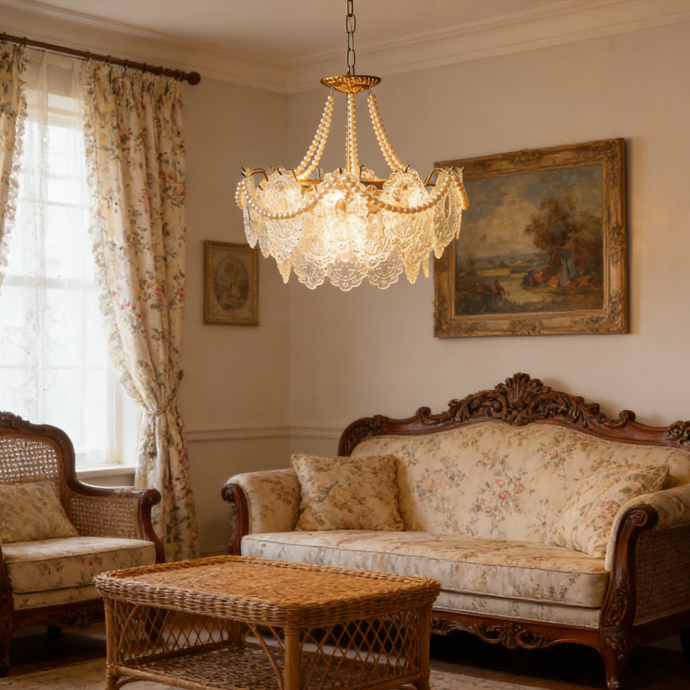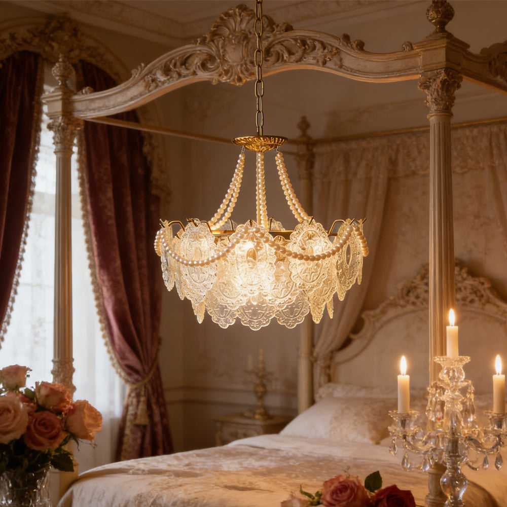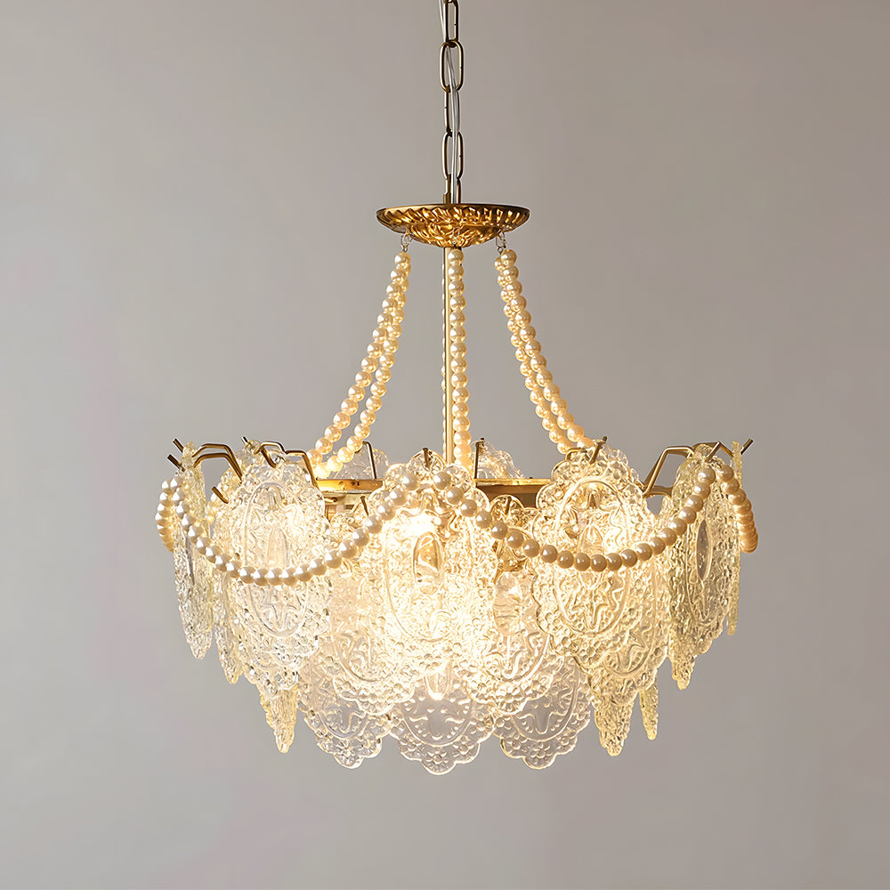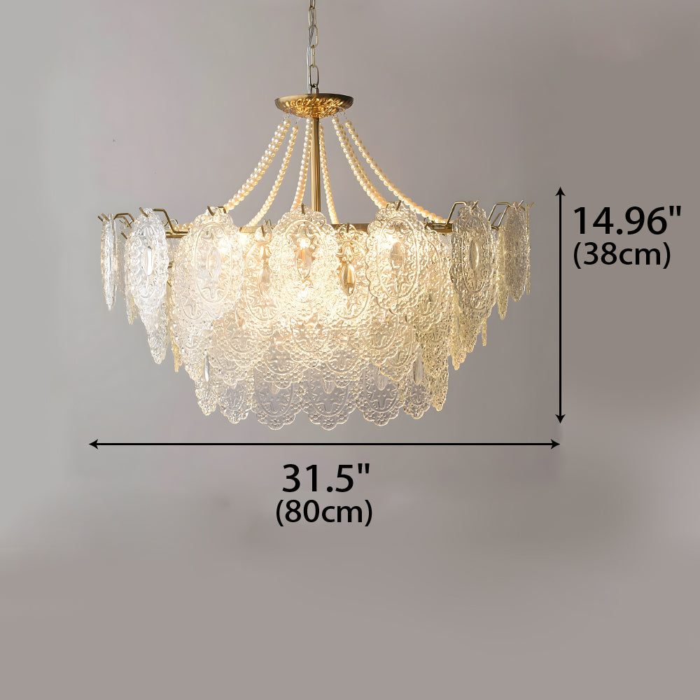 French Retro Cream Feather Glass Chandelier Ceiling Lights