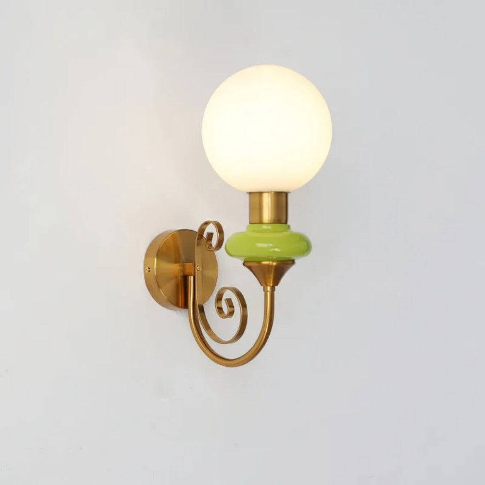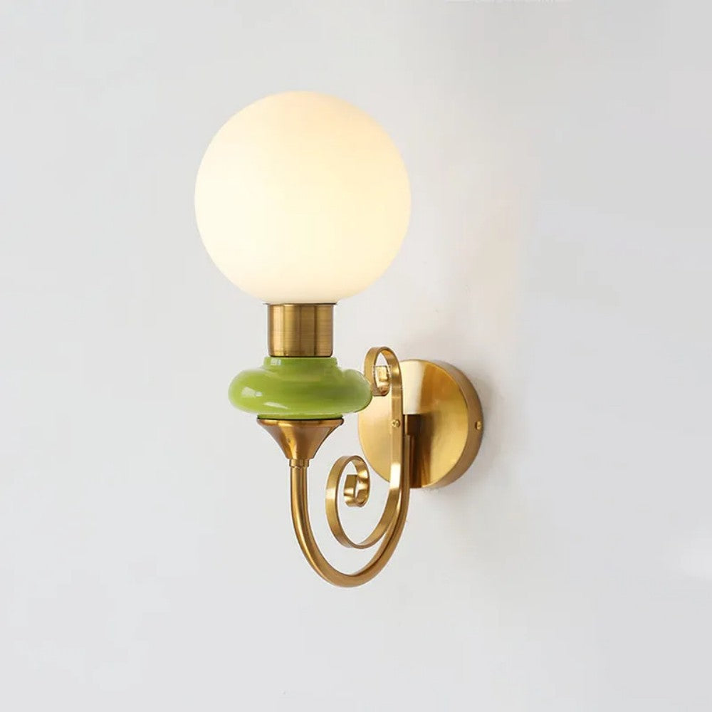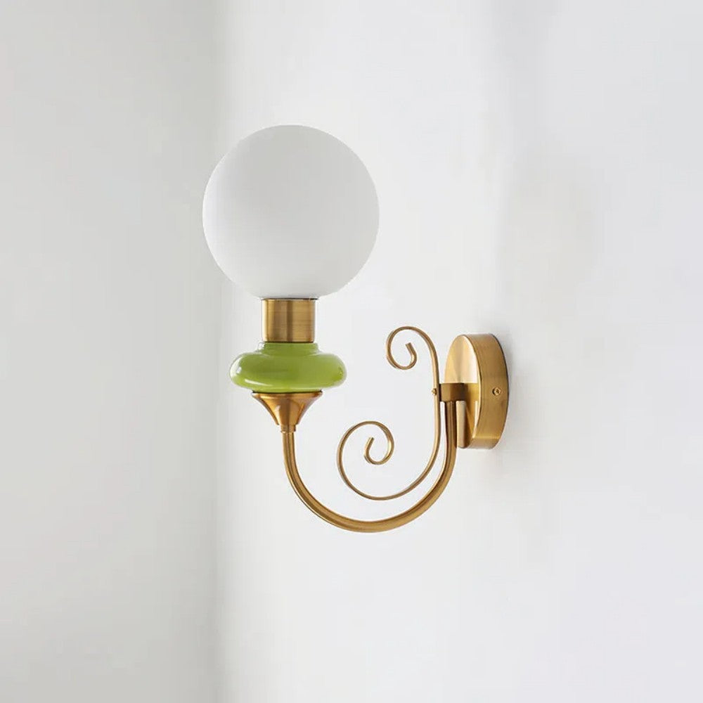 French Vintage Gold Finish Frame Spherical Glass Wall Sconce