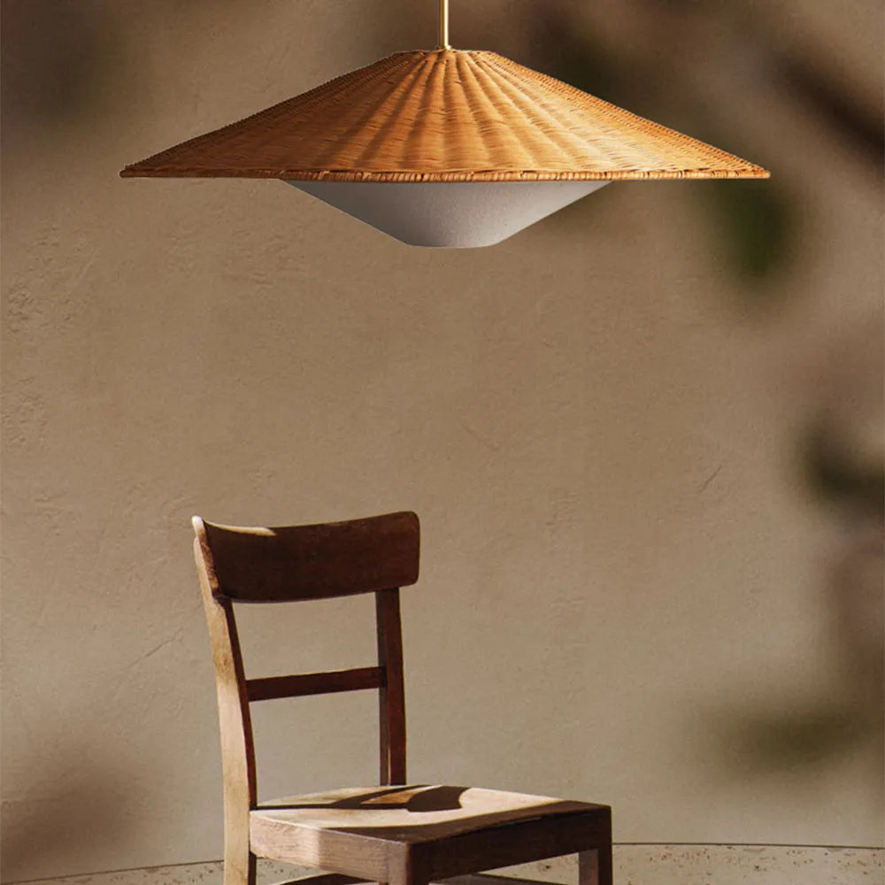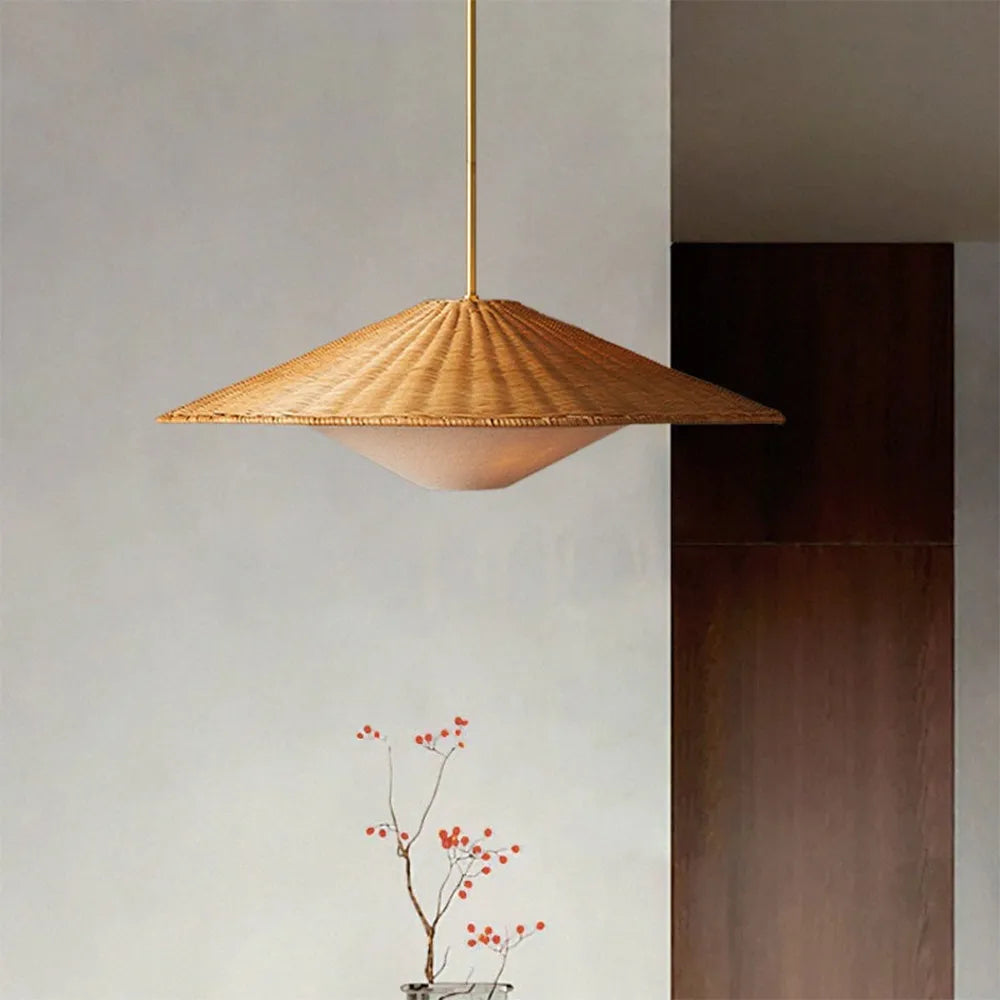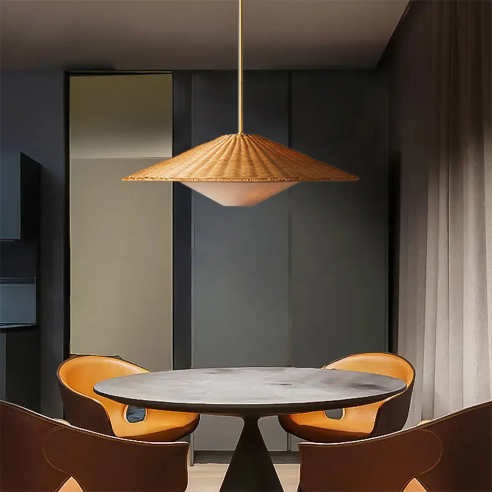 Hand-Woven Retro Cone Rattan Lantern Pendant Light