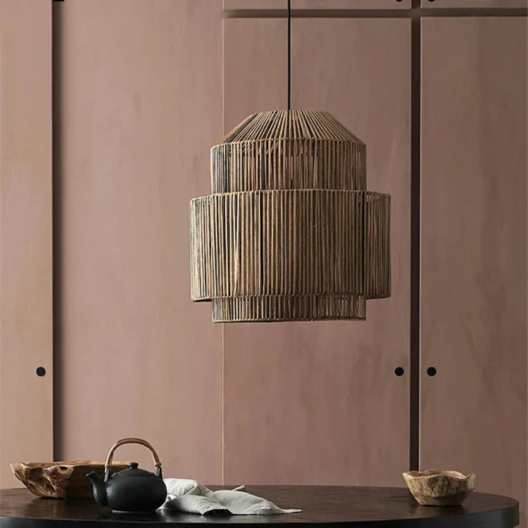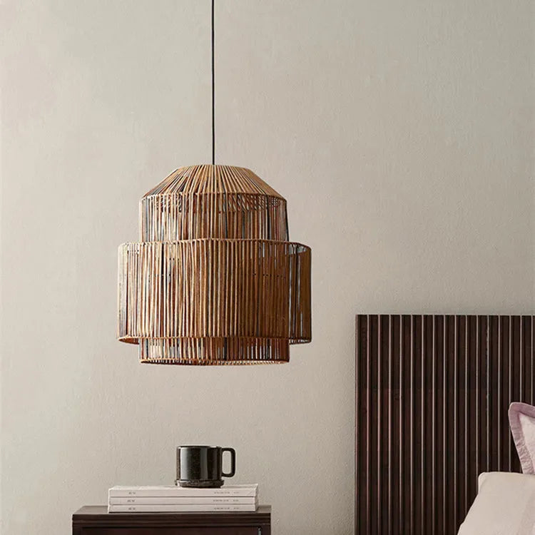 Brown Handmade Romantic Lampshade Rattan Ceiling Hanging Lamp