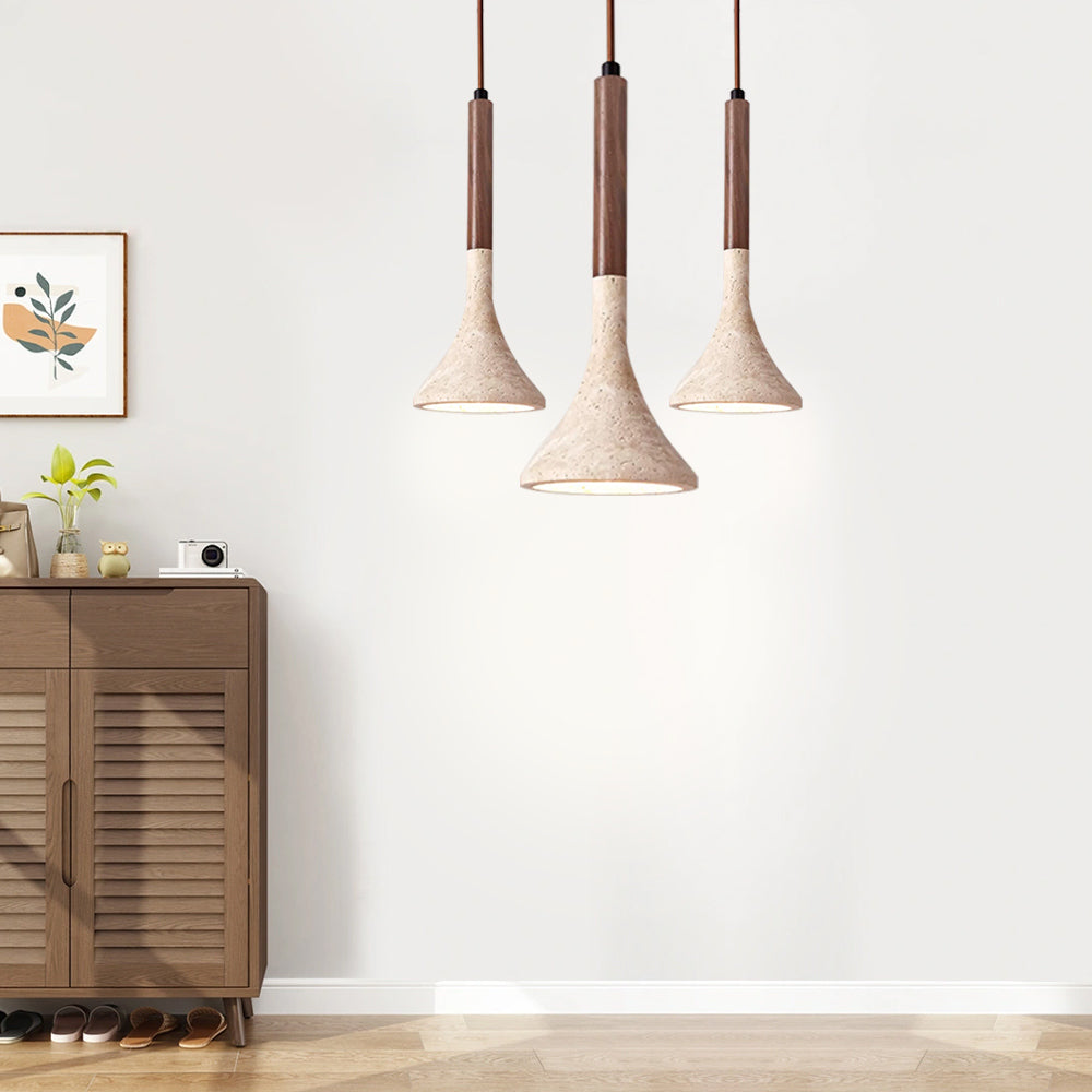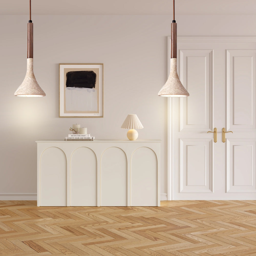 Design Style: The design inspiration of this pendant light comes from the factory lighting equipment during the Industrial Revolution. The designer refined and redesigned the elements of this period to make it a pendant light with a strong industrial style. The combination of yellow travertine and mahogany not only retains the natural texture of the material itself, but also presents a unique artistic charm. The pendant light uses simple lines and geometric shapes to create a stylish space atmosphere.