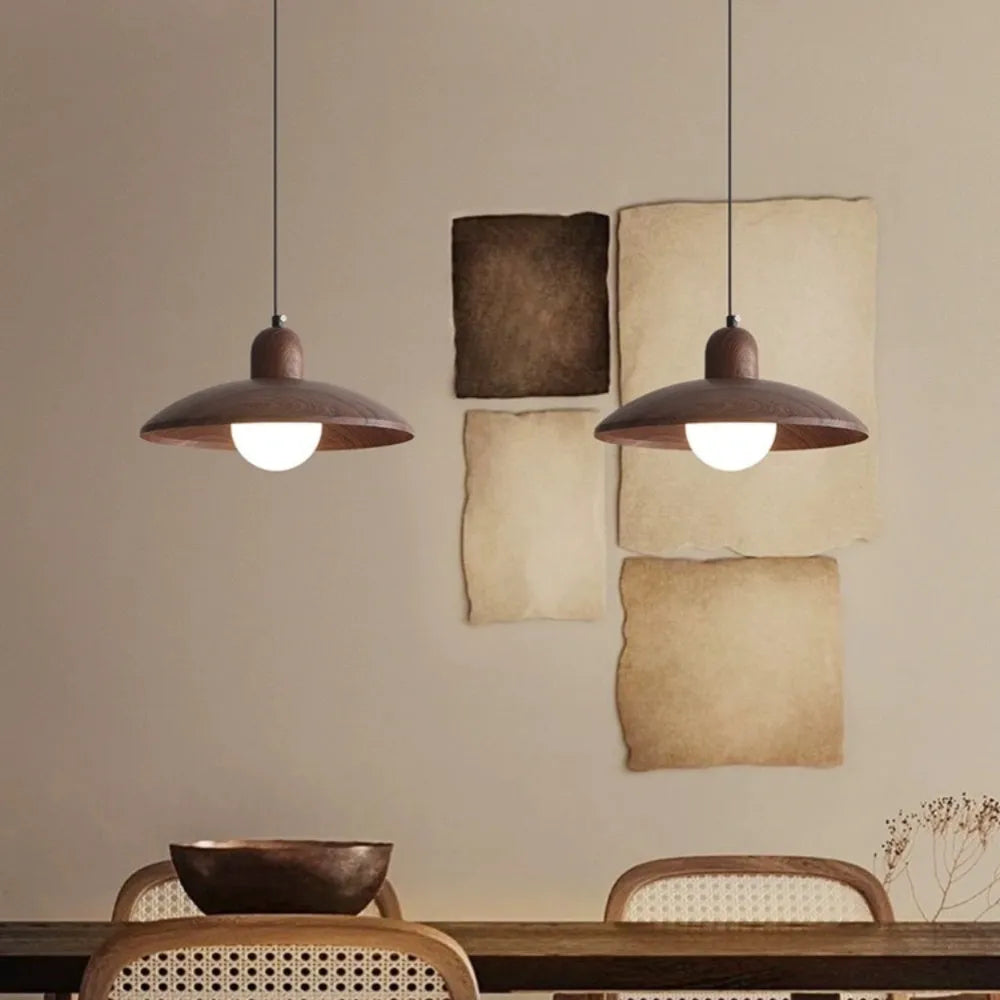 Mid Century Minimalist Brown Iron Wooden Ceiling Light