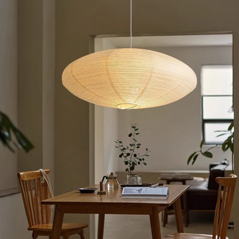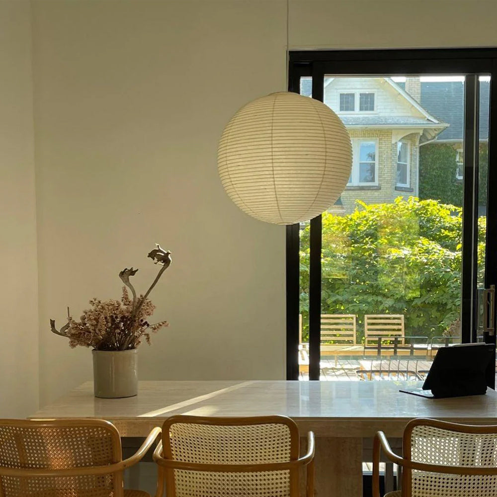 This Series Pendant Lamp merges Japanese craftsmanship with mid-century design. Its iconic paper shade brings elegance and grace to any interior, creating a harmonious statement.