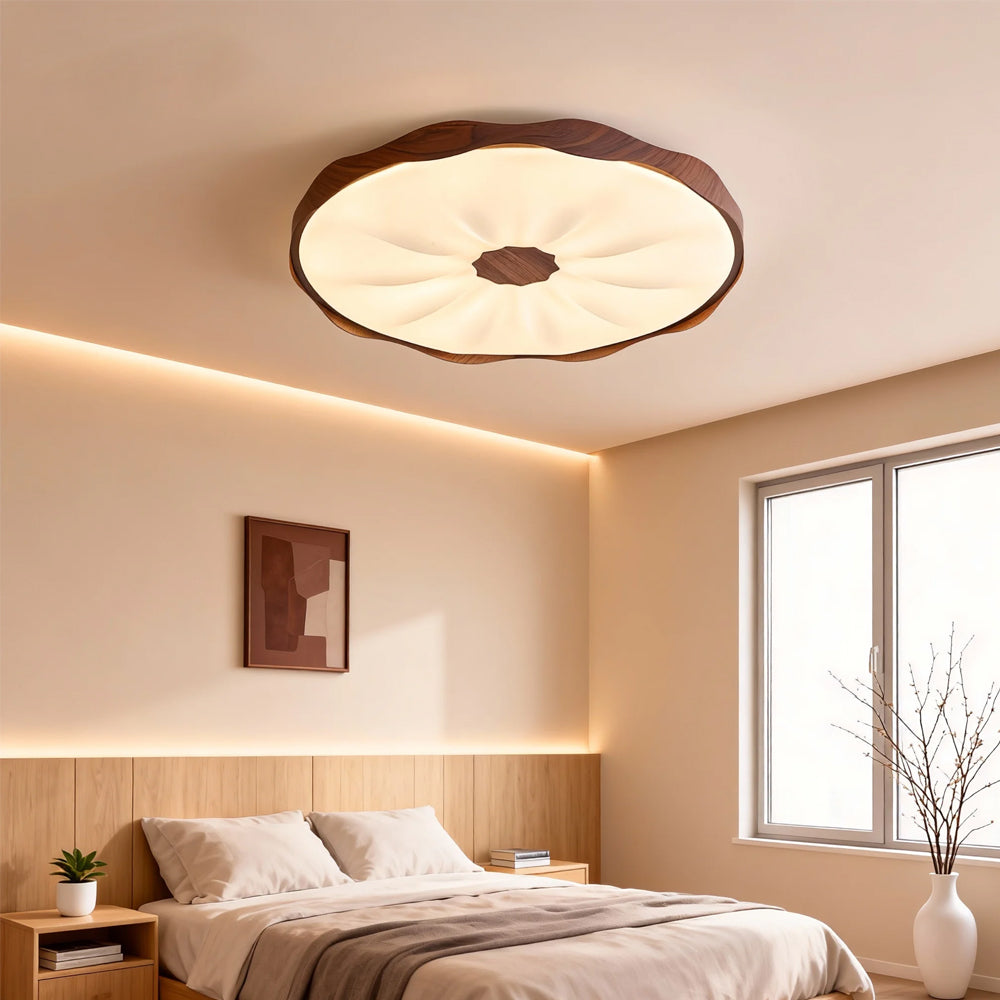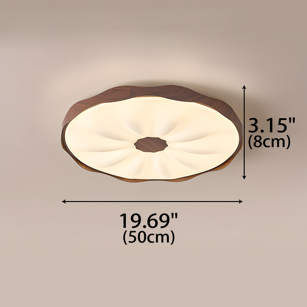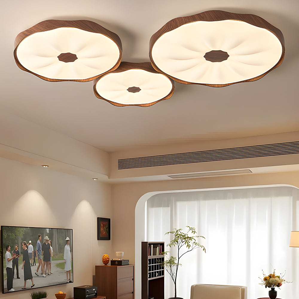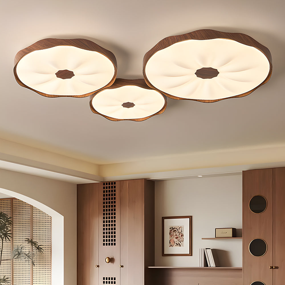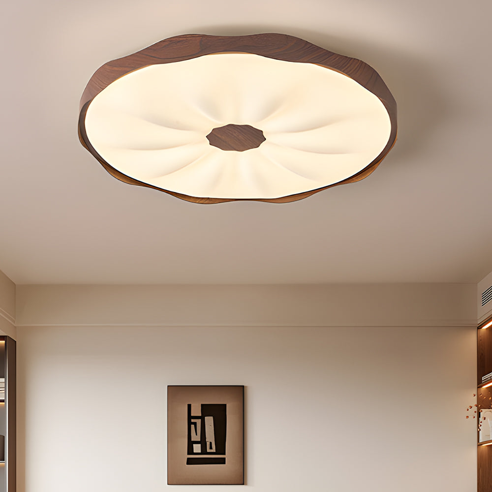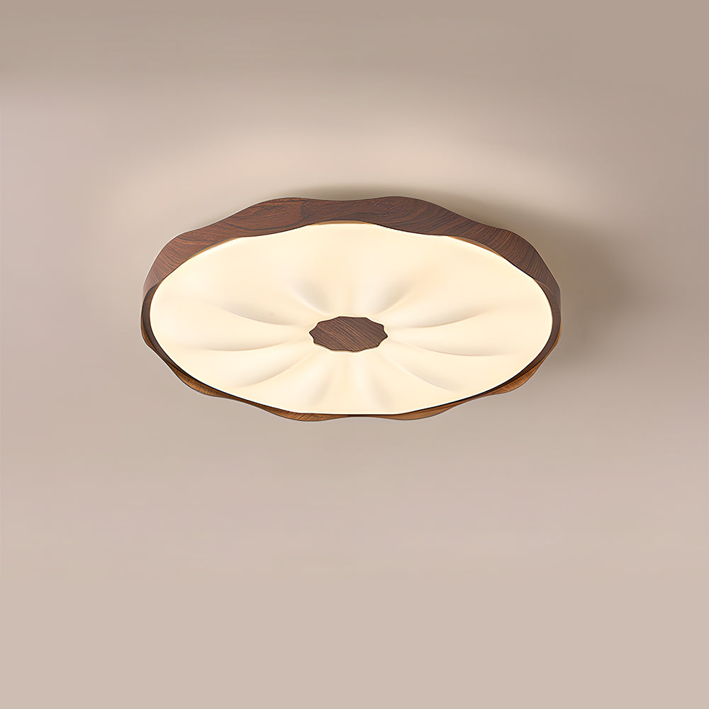 Mid-Century Retro Lotus Leaf Shape Walnut-Tone Metal Ceiling Light