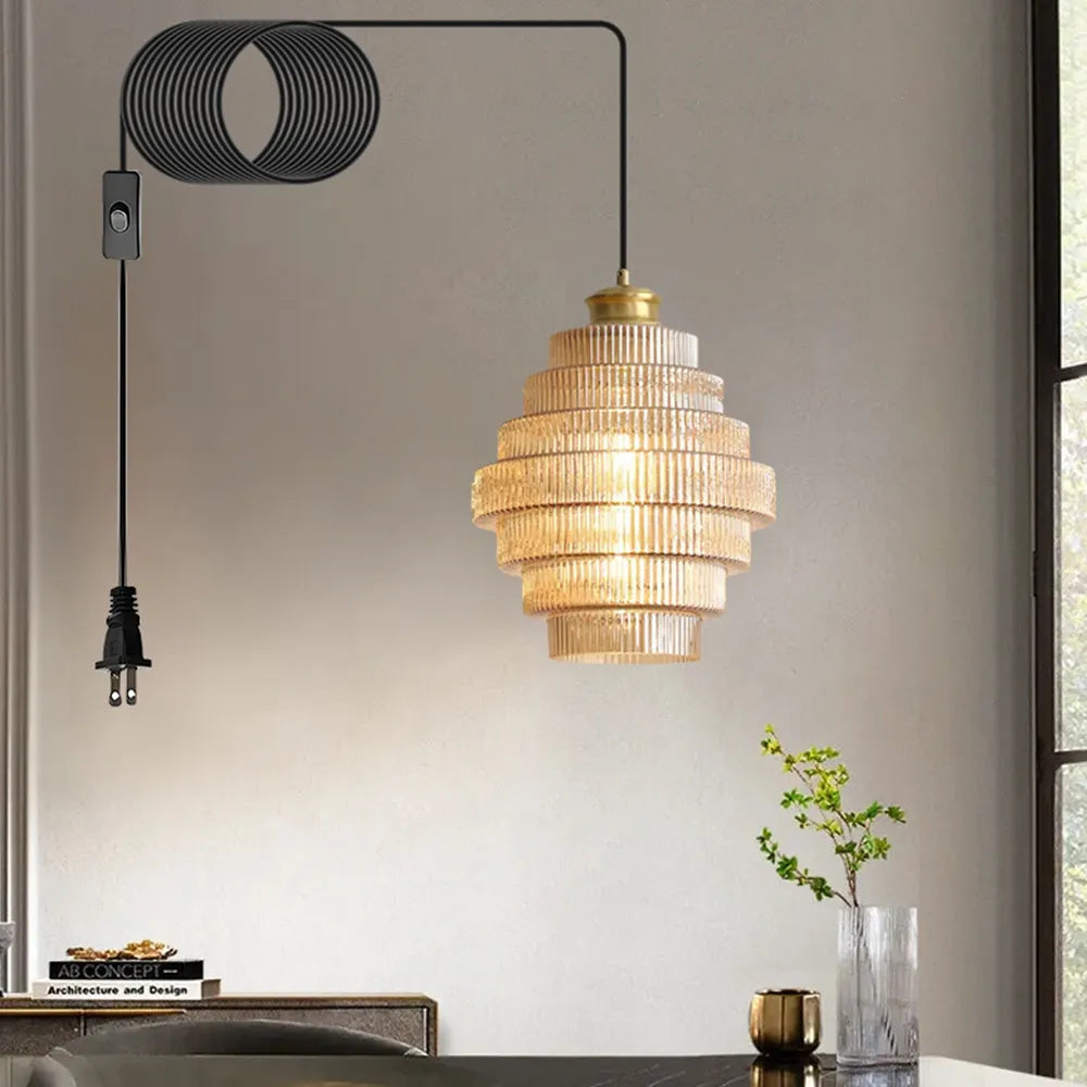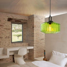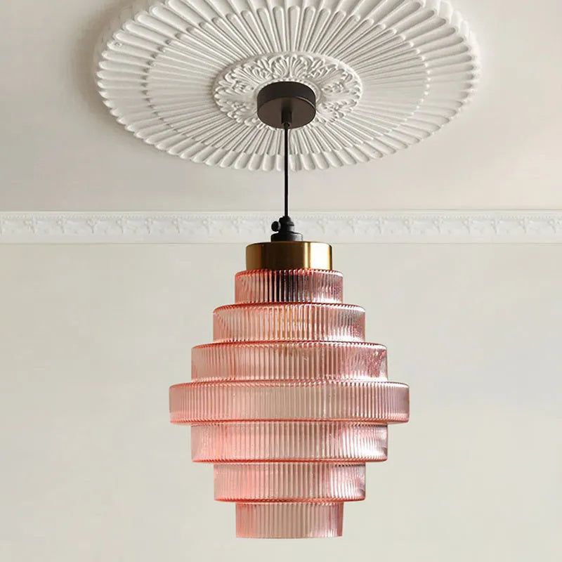 This pendant light artfully merges classic and modern styles. Crafted from quality materials, its handblown striped glass shade emits a warm, soft glow to create a cozy and nostalgic atmosphere in your home.