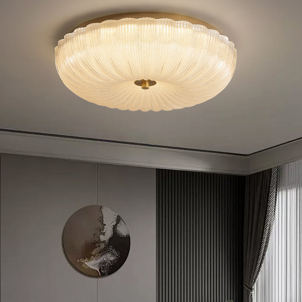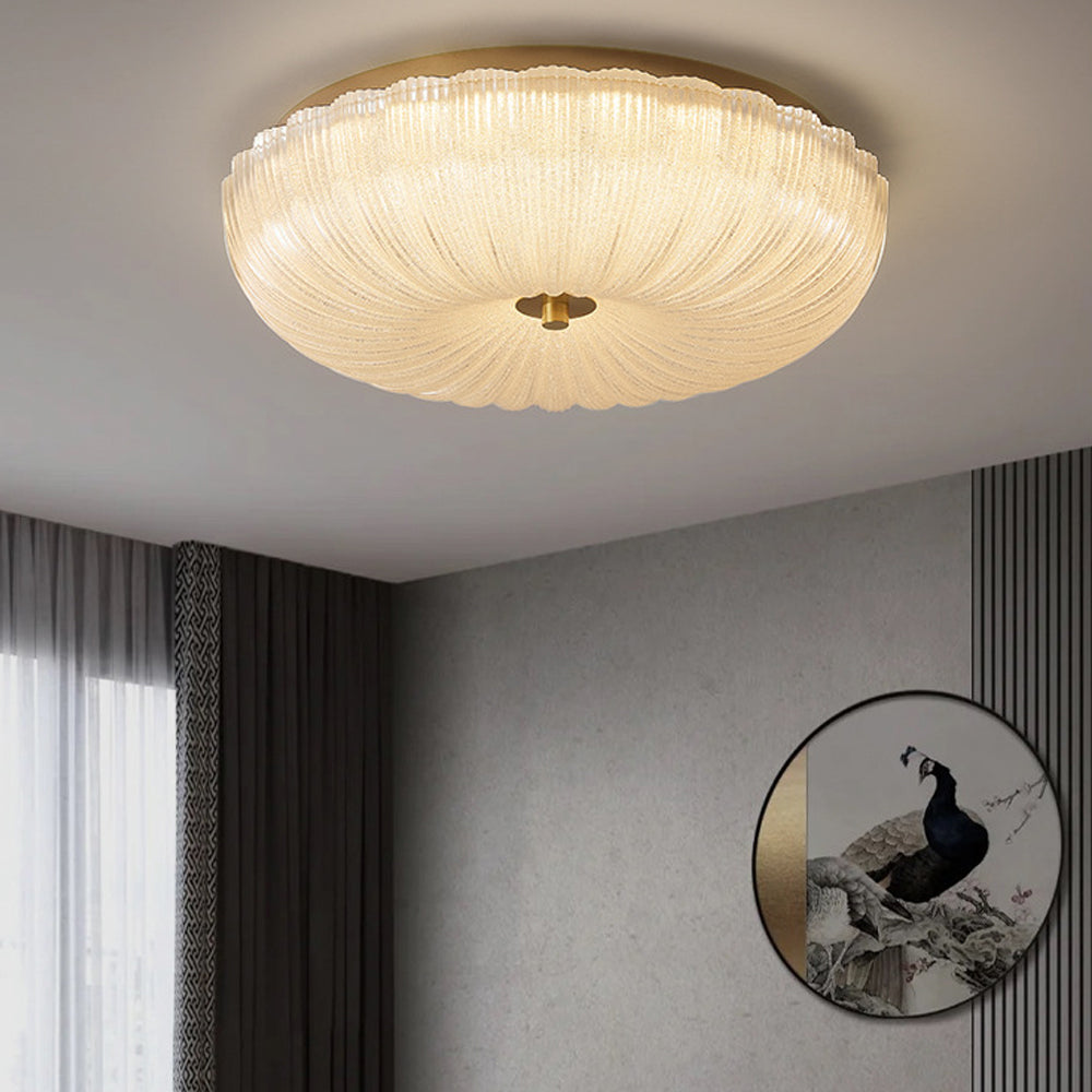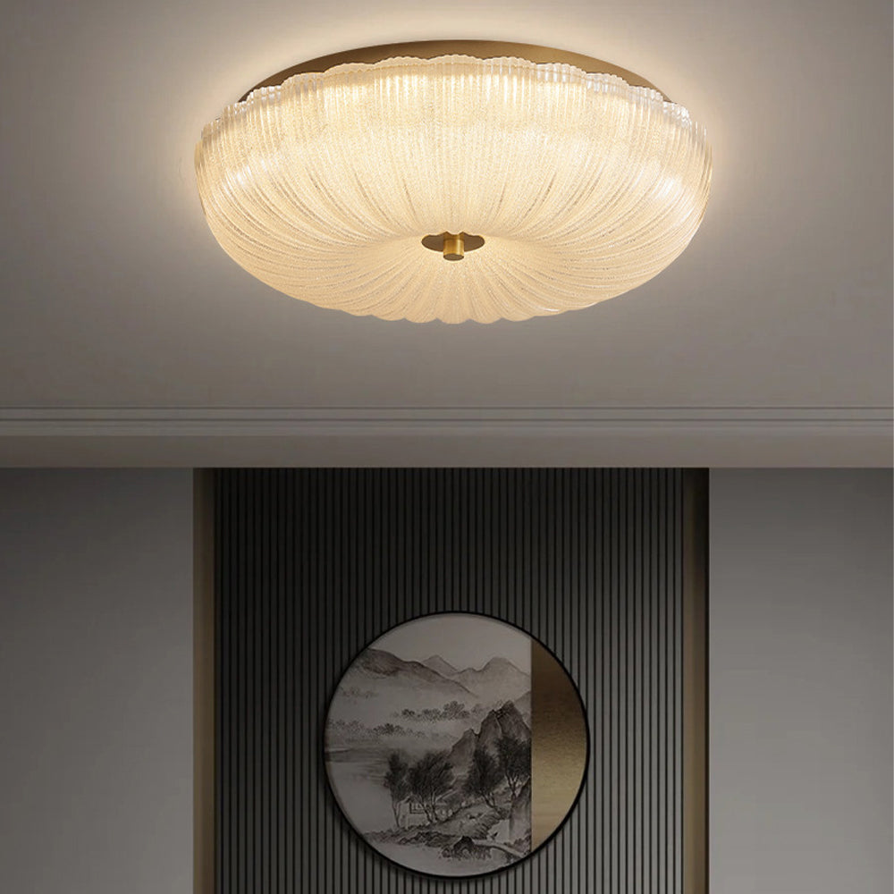 Mid Century Ripple Glass LED Flush Mount Ceiling Light