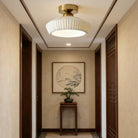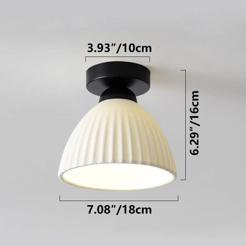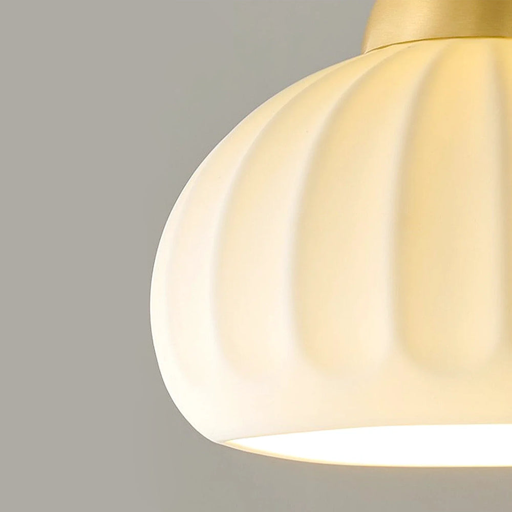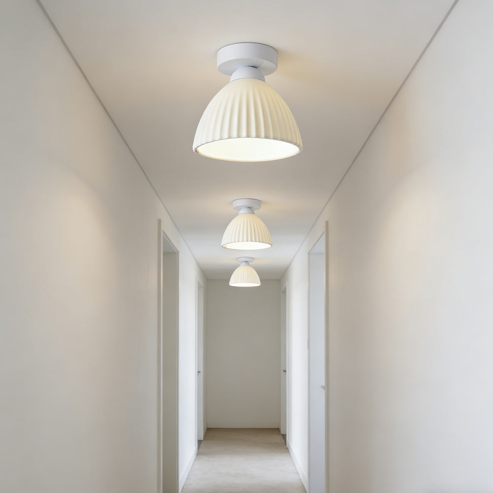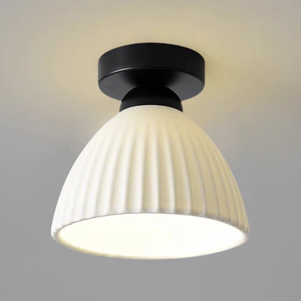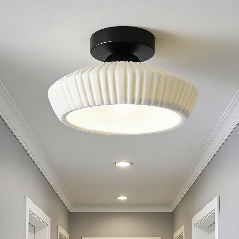 This retro-style ceiling light pairs a brass base with a handcrafted ceramic lampshade, creating a refined vintage look. Its soft ambient glow adds warmth and character to hallways, bedrooms, and living spaces, making it an elegant accent for any interior.