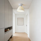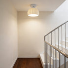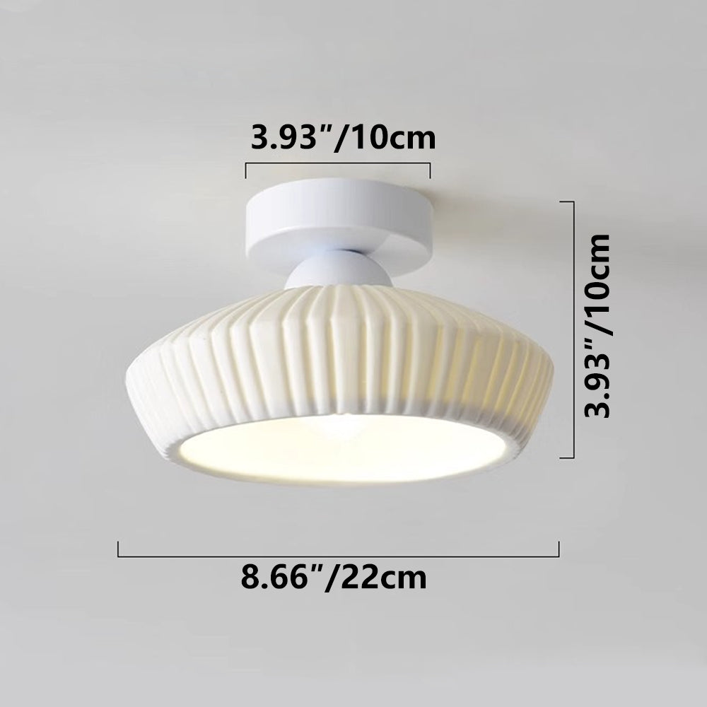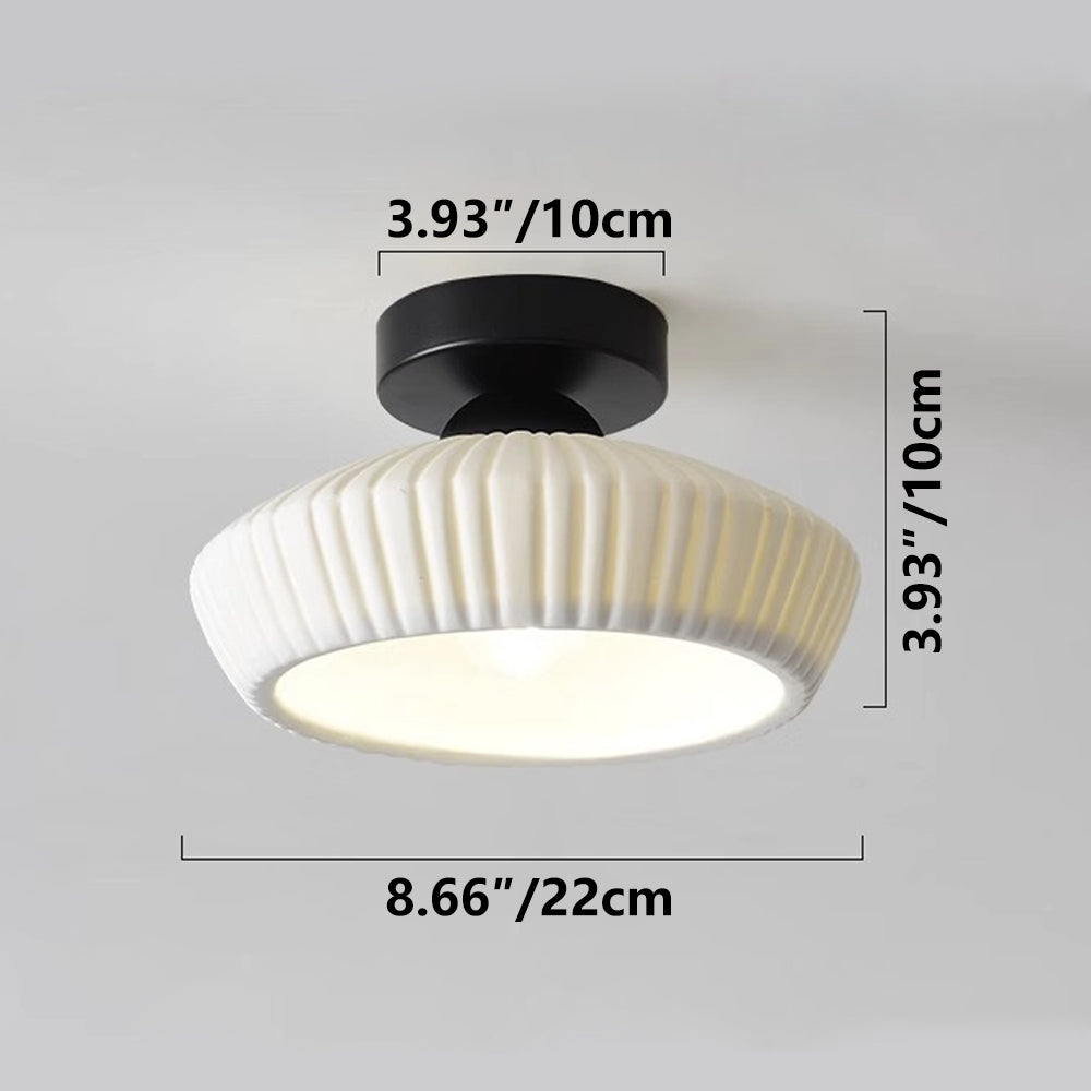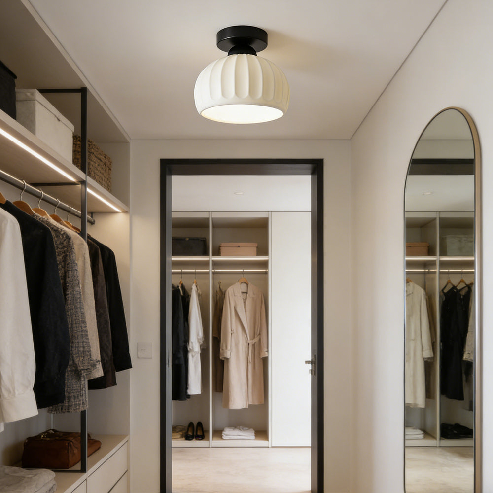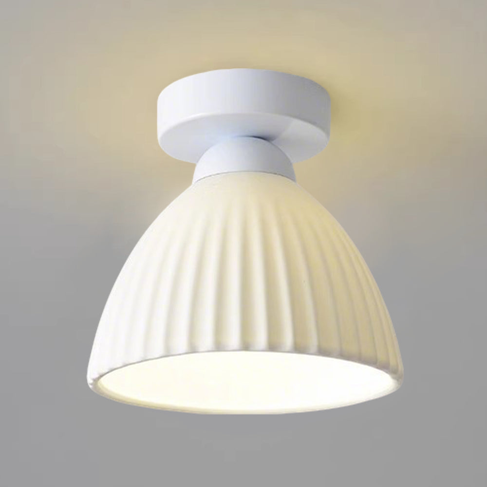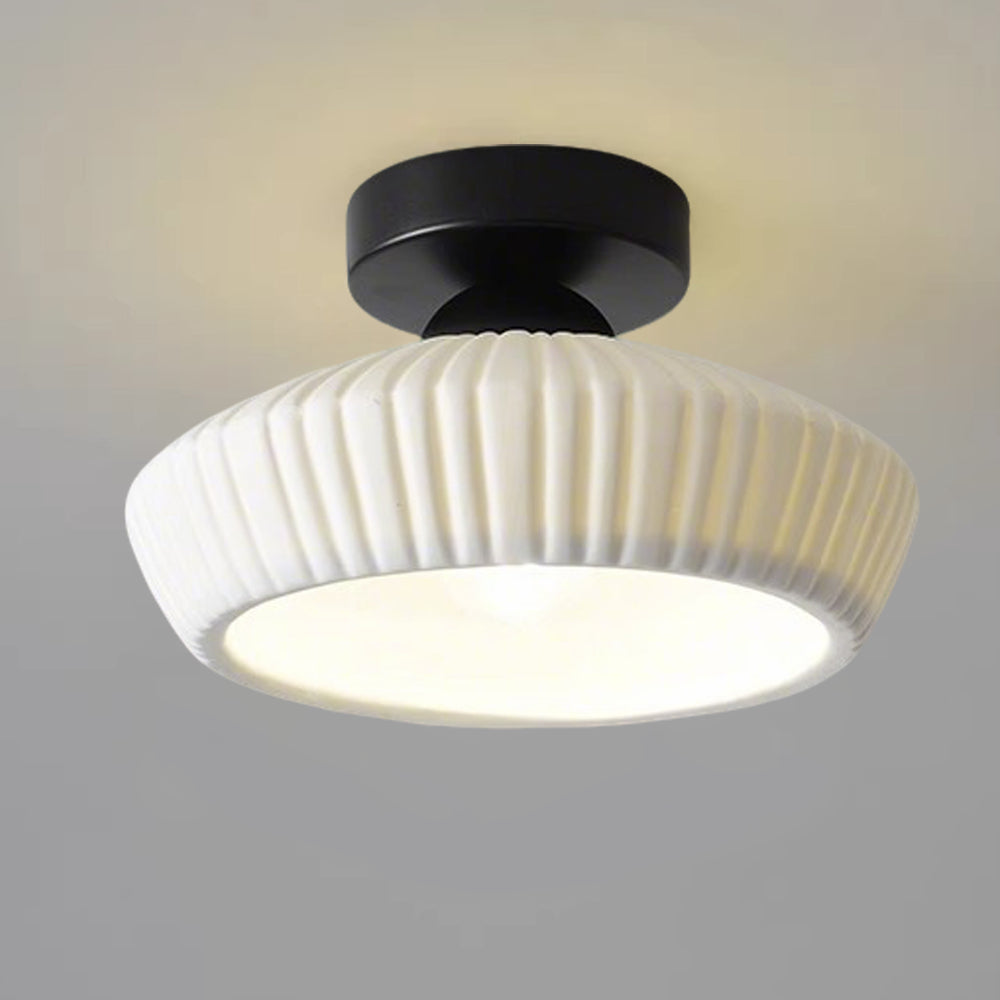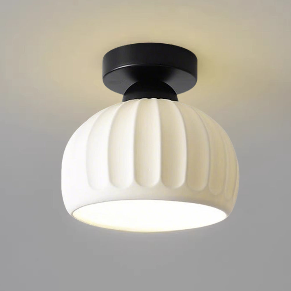 This retro-style ceiling light pairs a brass base with a handcrafted ceramic lampshade, creating a refined vintage look. Its soft ambient glow adds warmth and character to hallways, bedrooms, and living spaces, making it an elegant accent for any interior.
