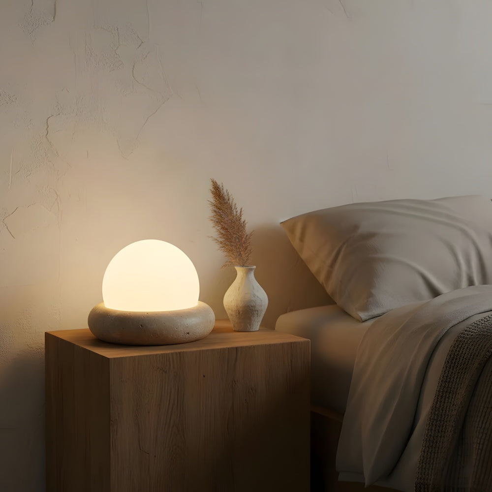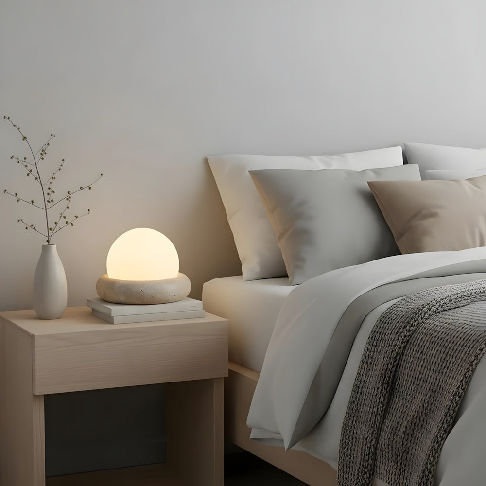 This minimalist - shaped creamy white stone table lamp perfectly interprets Nordic natural aesthetics. The natural stone base has a delicate texture, which easily matches light - colored home decor. Warm light passes through the lamp body to cast a soft glow, suitable for bedrooms and living rooms, adding a quiet atmosphere to the space.