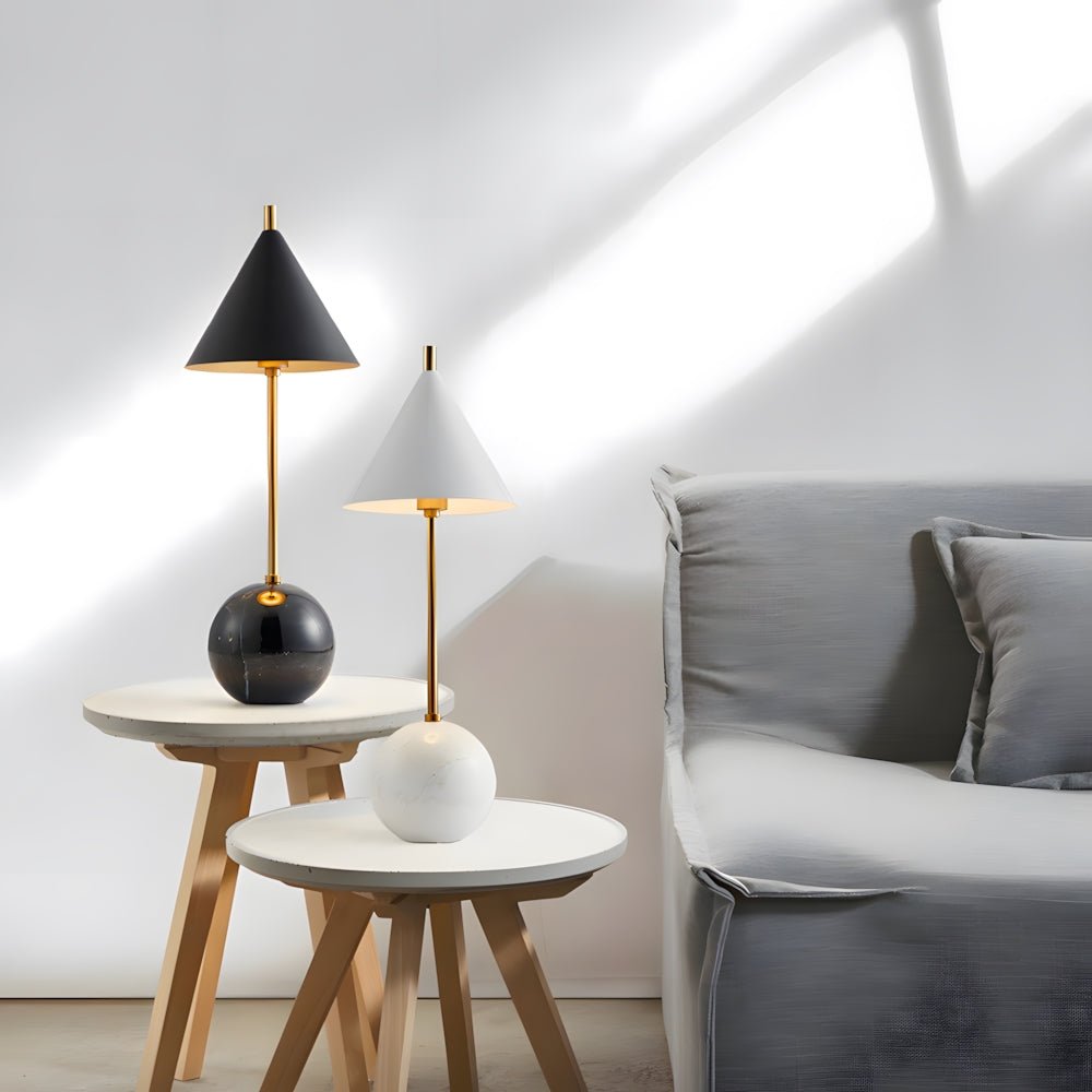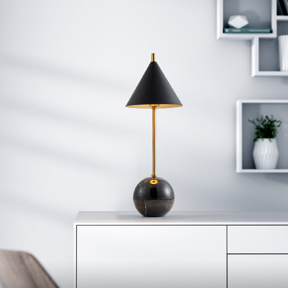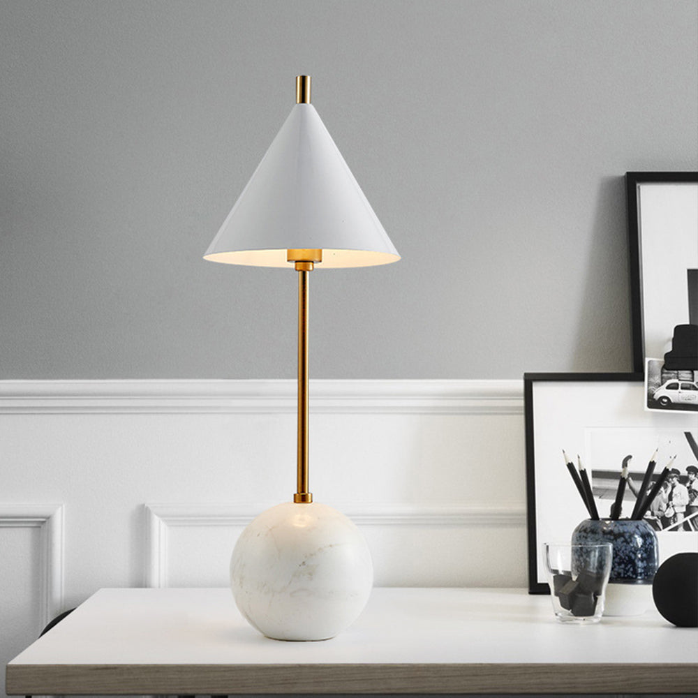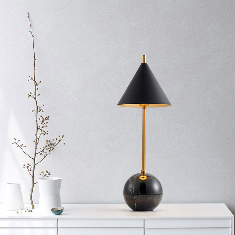 Elevate your space with the Modern Ball Marble Base LED Table Lamp. Its geometric design, mixed-material palette (metal, white, black) and sleek conical shade bring contemporary sophistication.