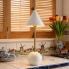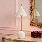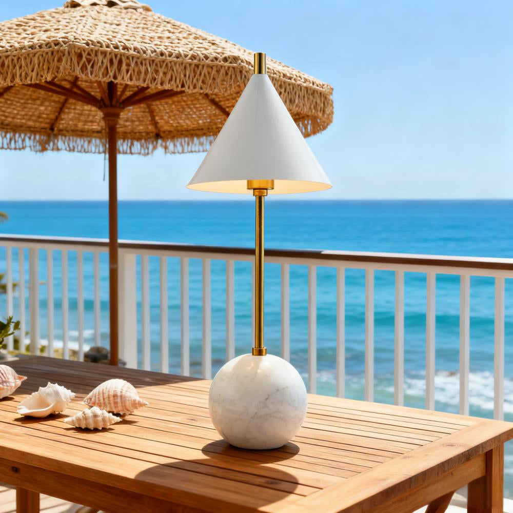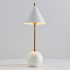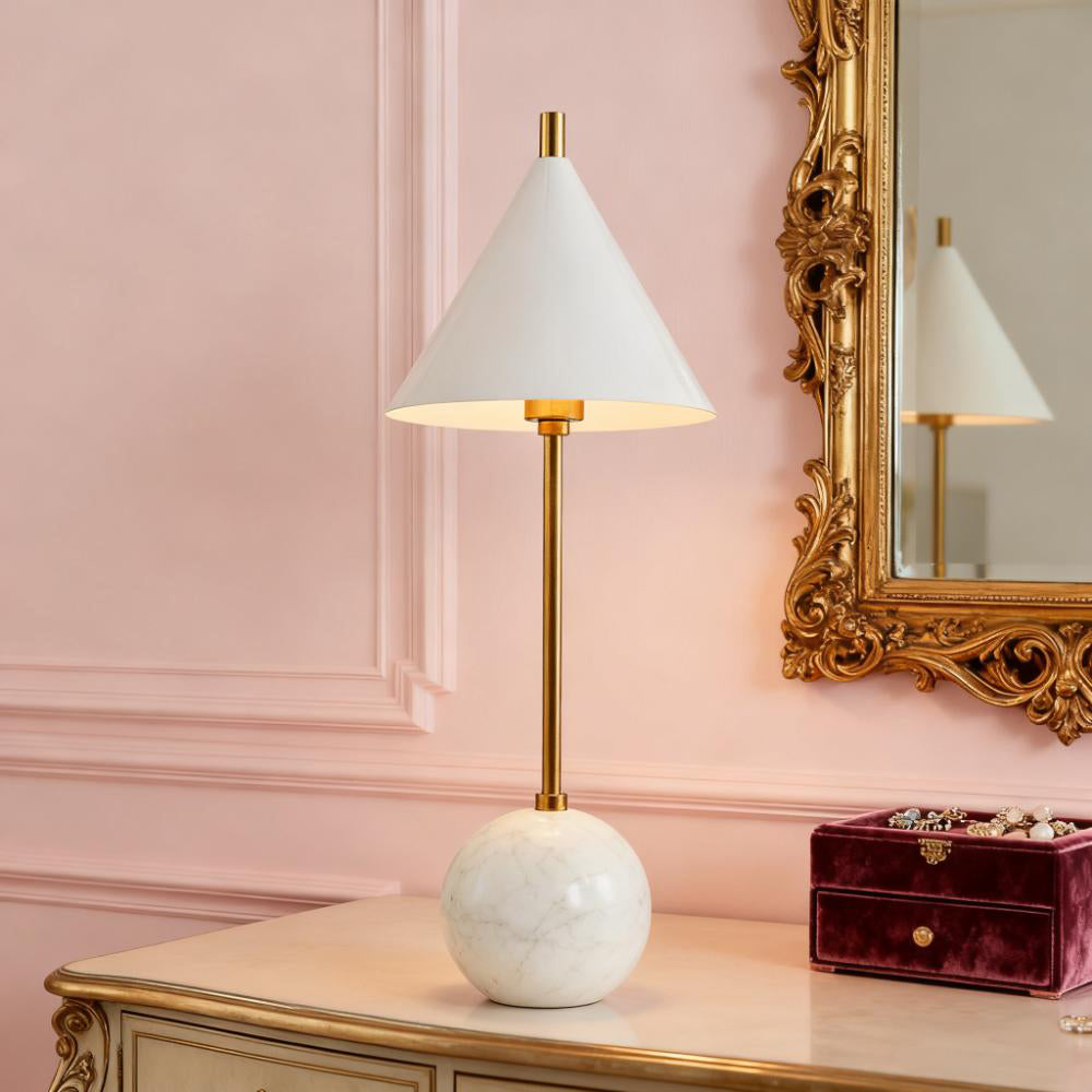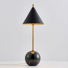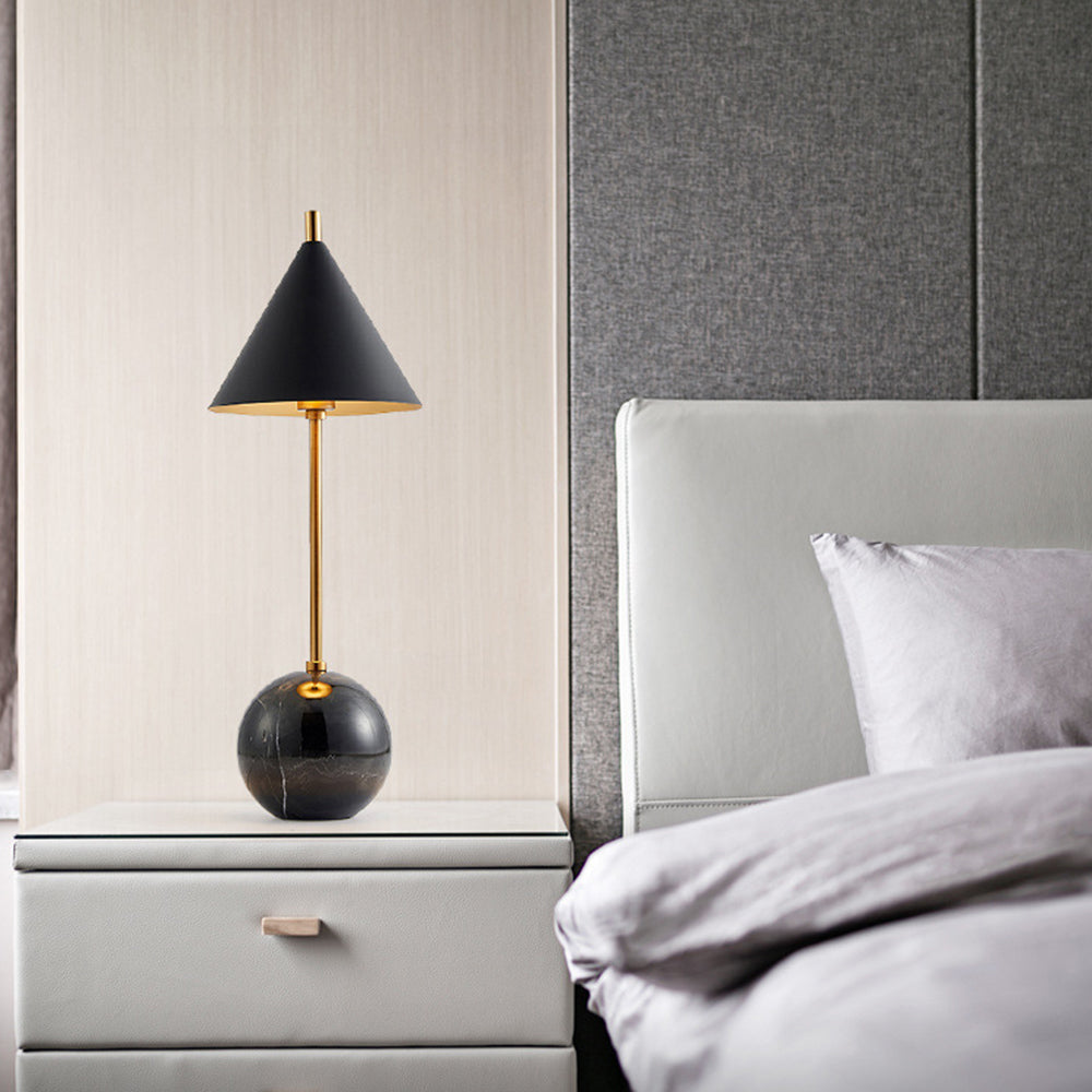 Elevate your space with the Modern Ball Marble Base LED Table Lamp. Its geometric design, mixed-material palette (metal, white, black) and sleek conical shade bring contemporary sophistication.