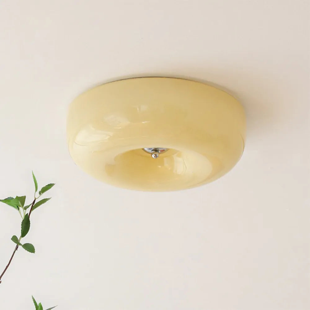 Modern Cream Round Ceiling Lamp Bauhaus Milky Glass Lighting