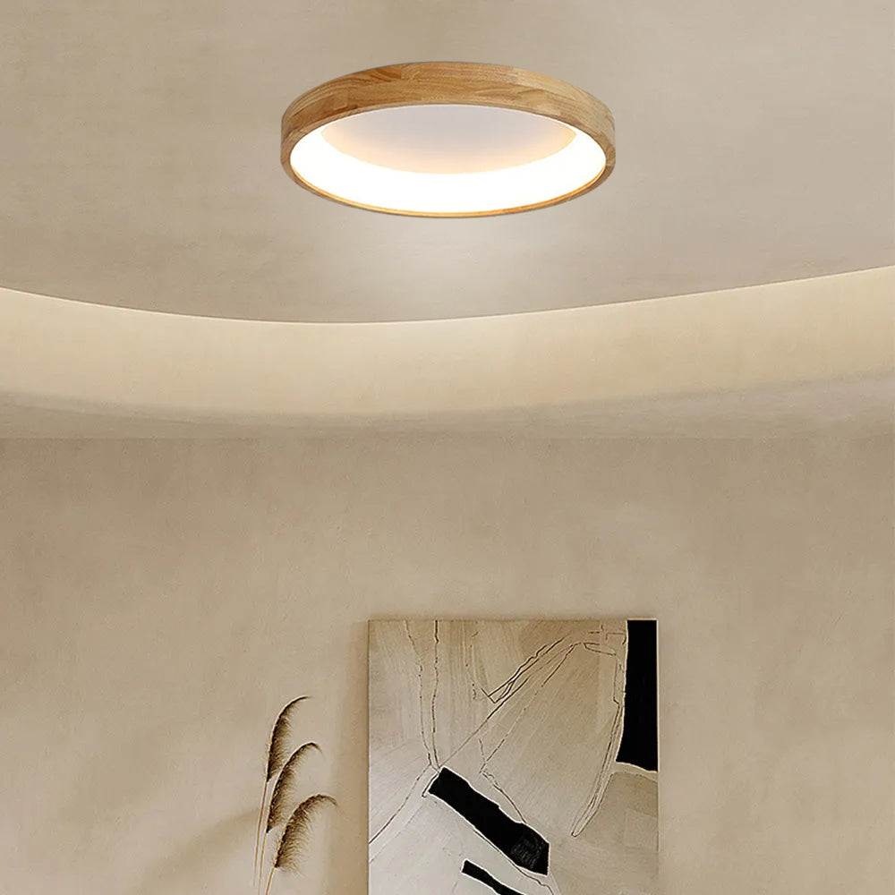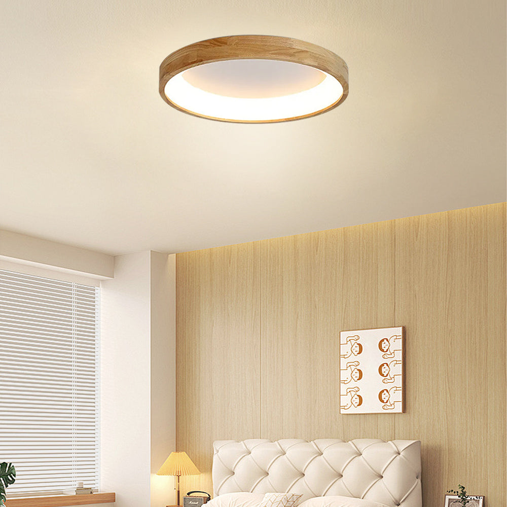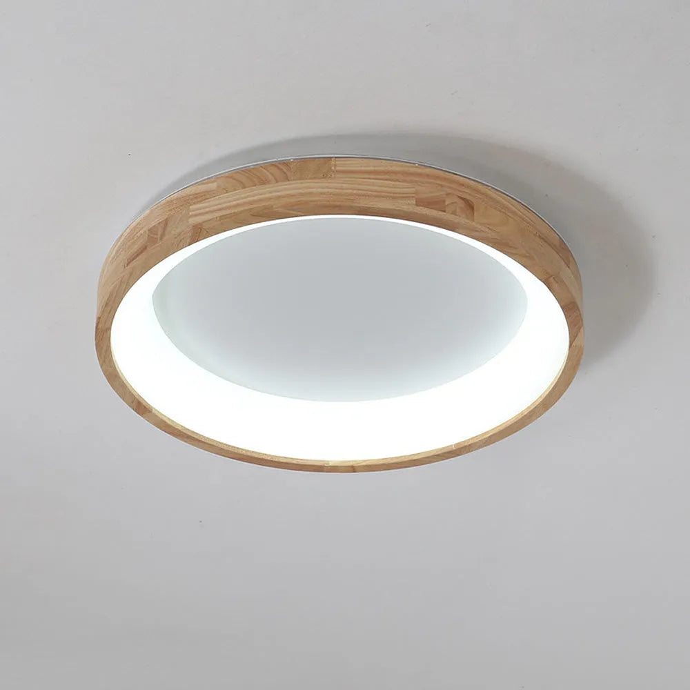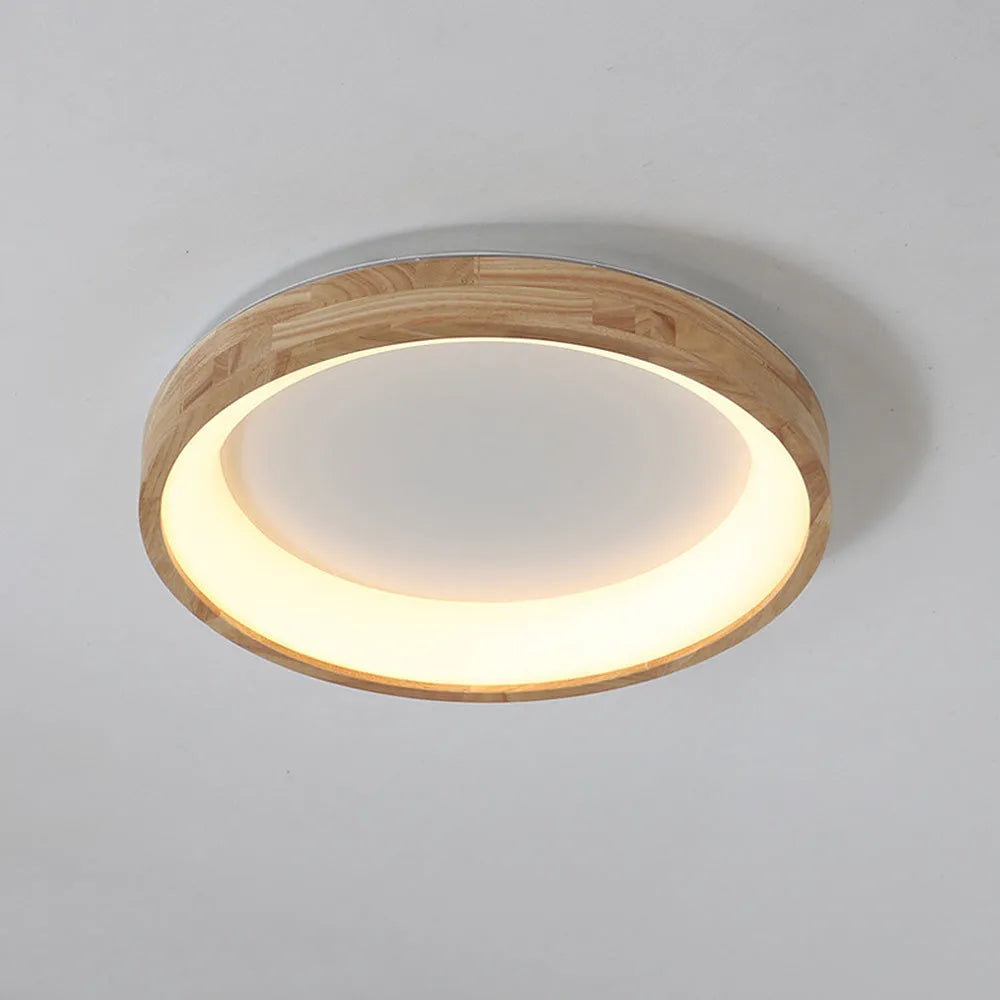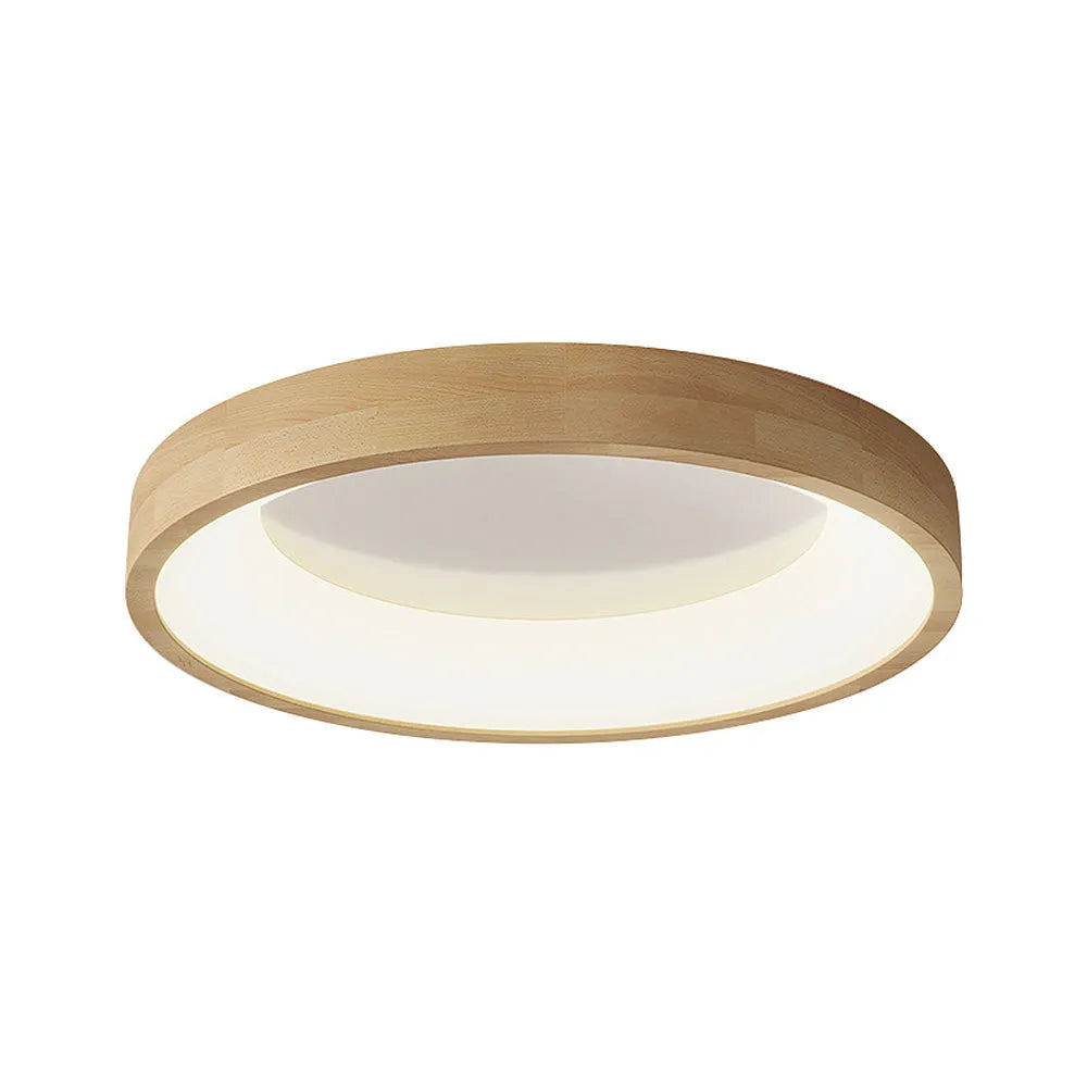 Modern European Style Round Rubber Wood Flush Mounted Ceiling Light