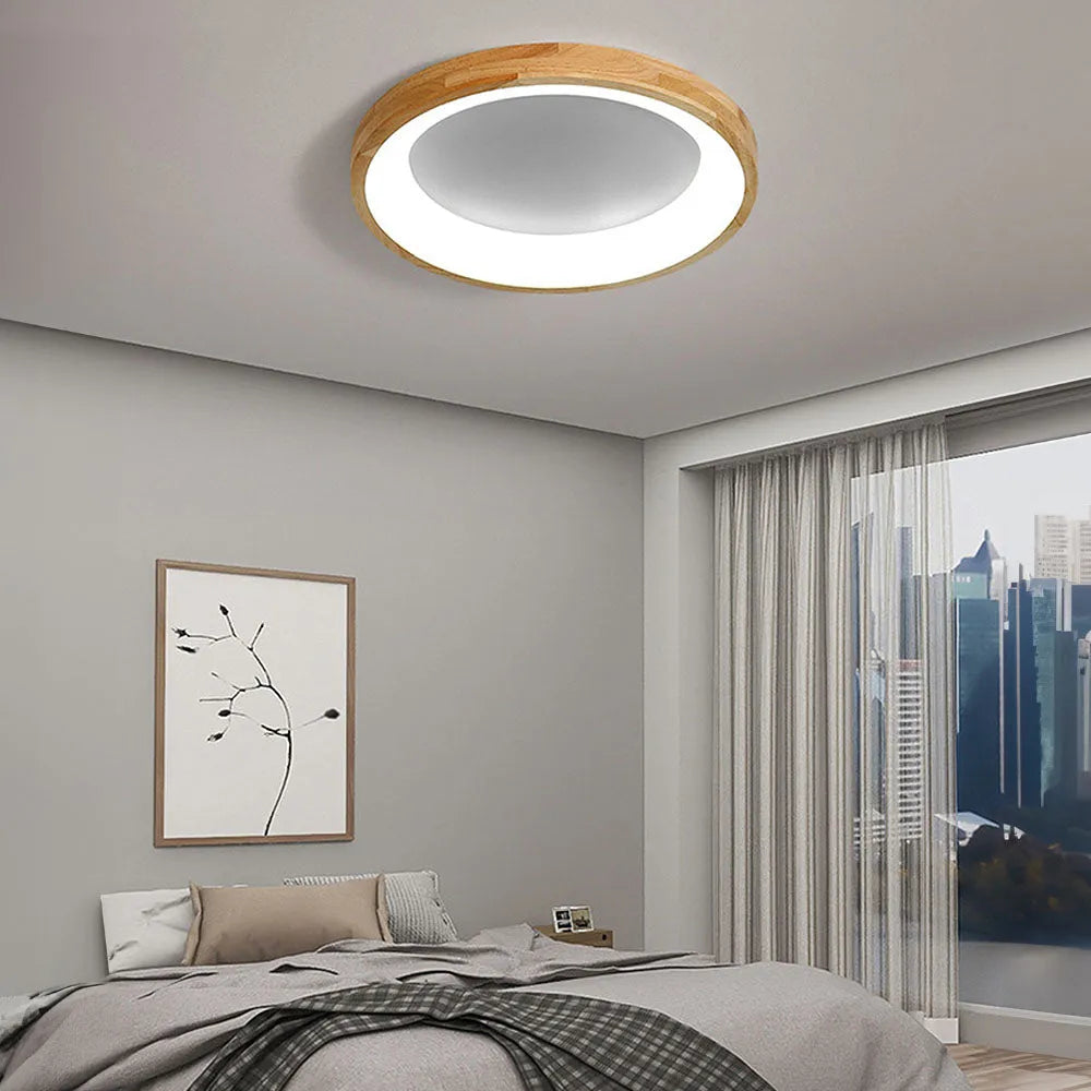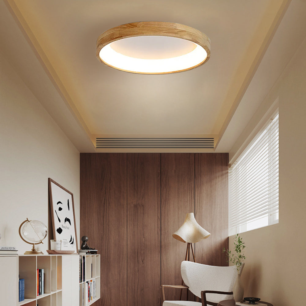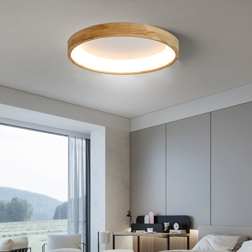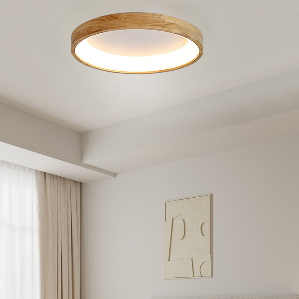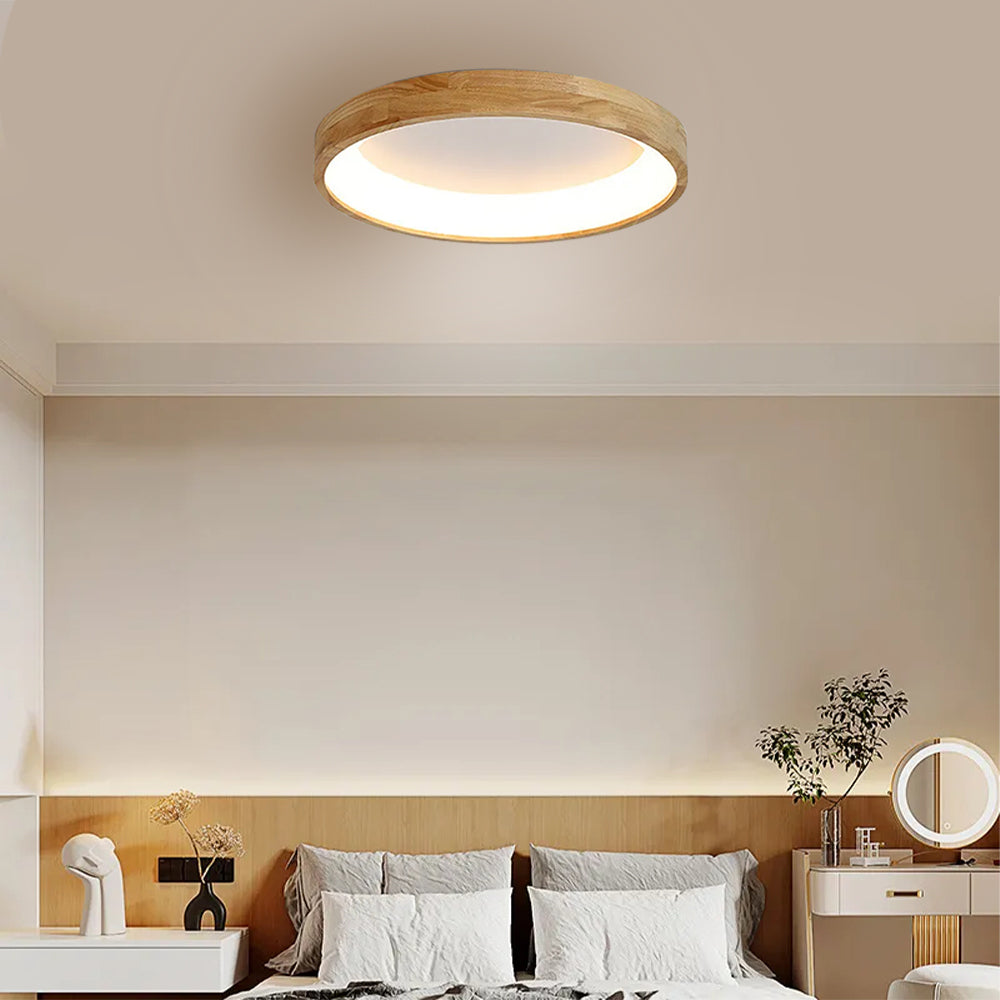 Modern European Style Round Rubber Wood Flush Mounted Ceiling Light