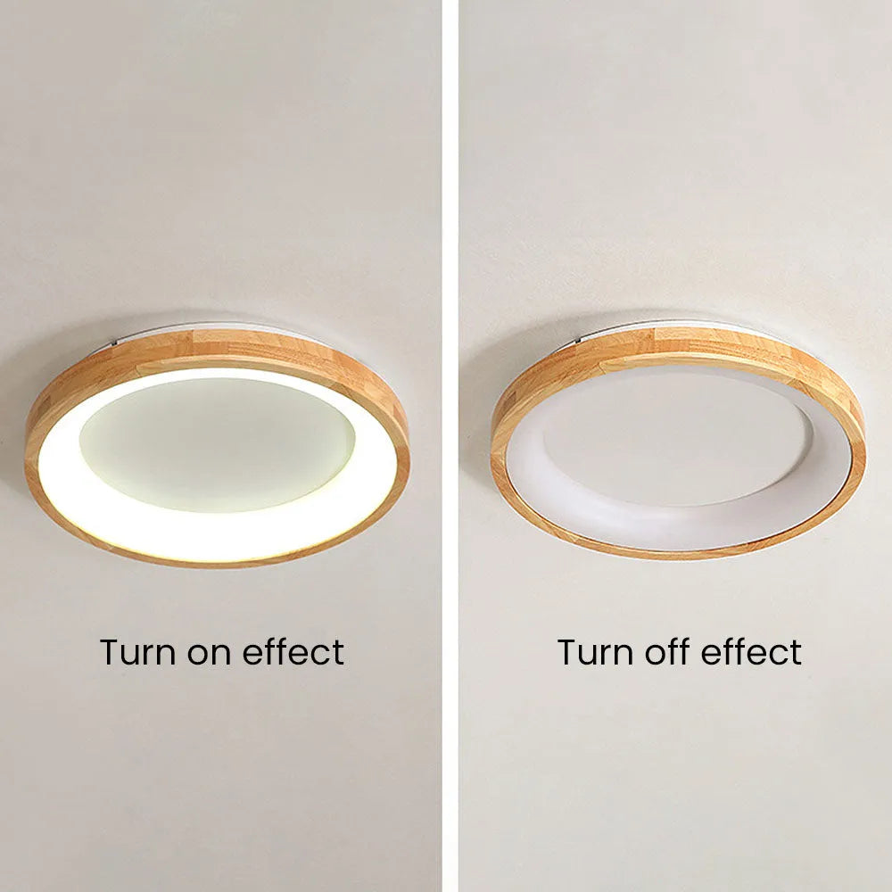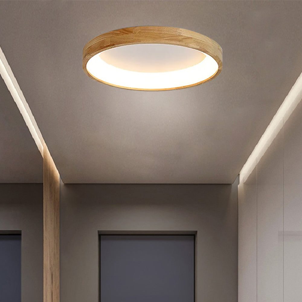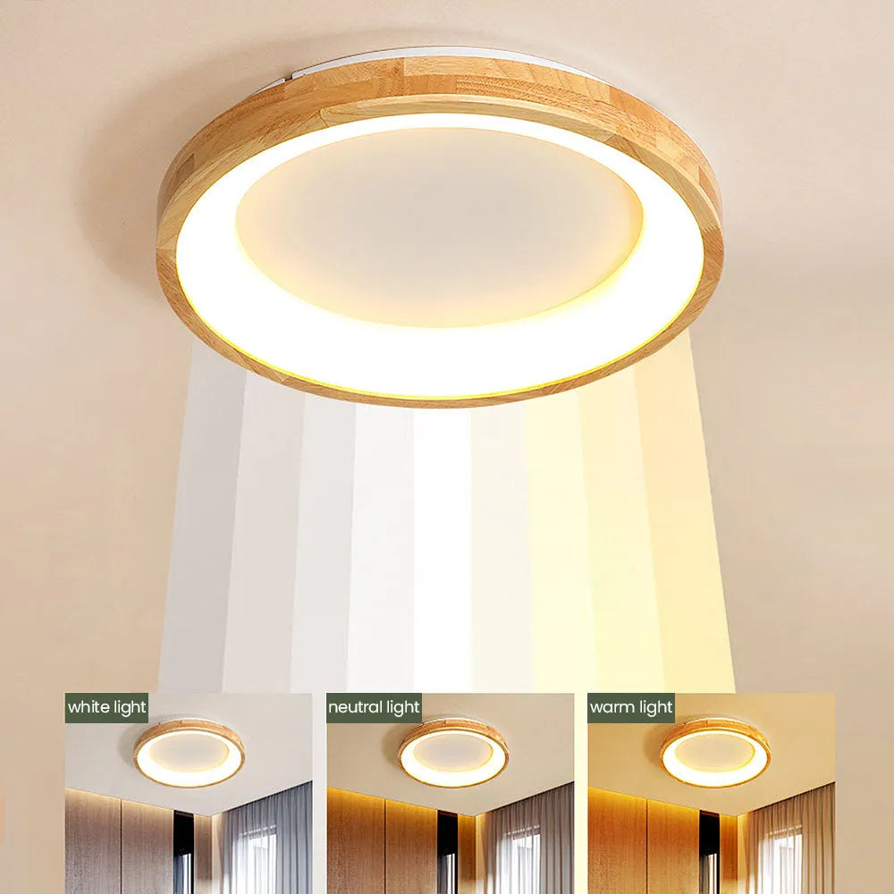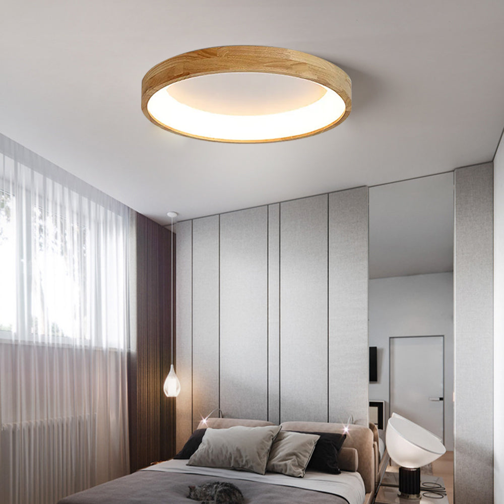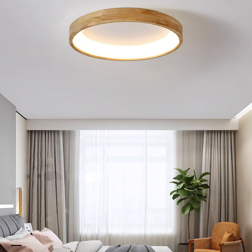 Modern European Style Round Rubber Wood Flush Mounted Ceiling Light