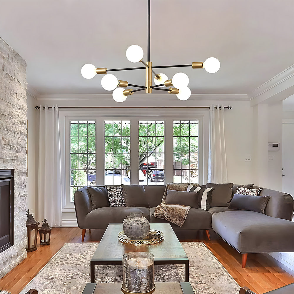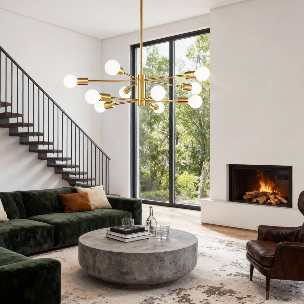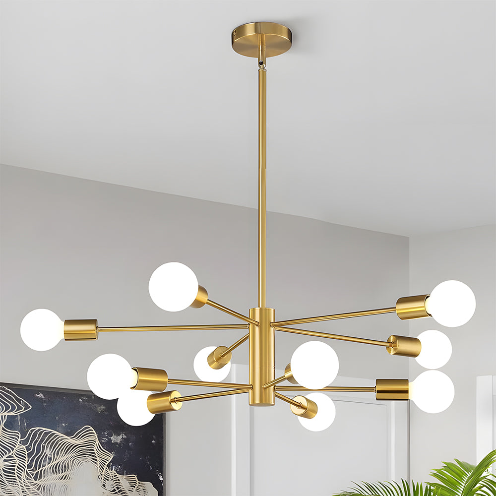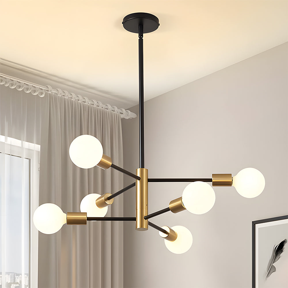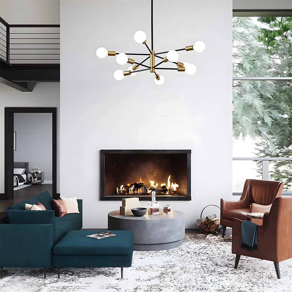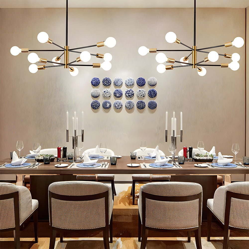 An abstract metal branch structure interprets natural forms through geometric lines. Light scatters unevenly among the branches, suitable for high-ceiling living rooms, dining areas, and similar spaces—presenting a lightweight yet dynamic modern natural aesthetic.