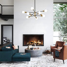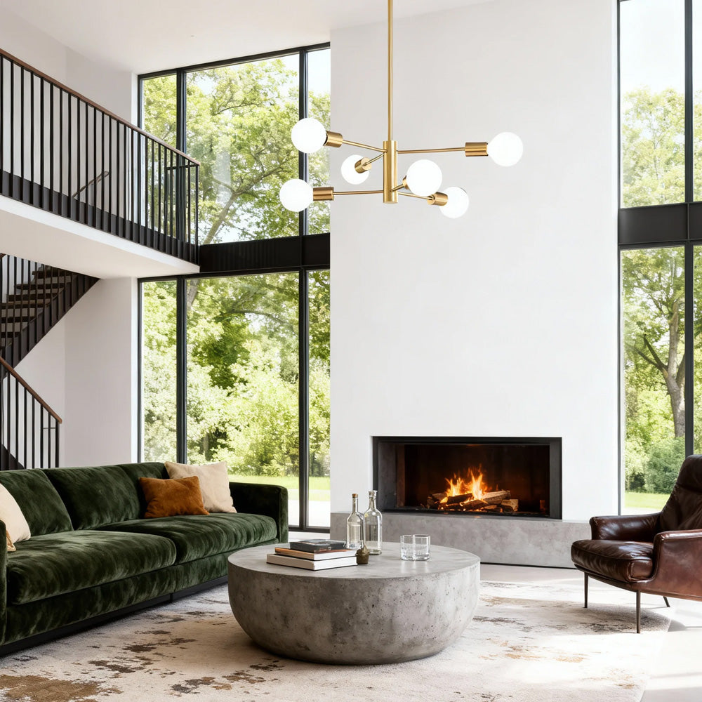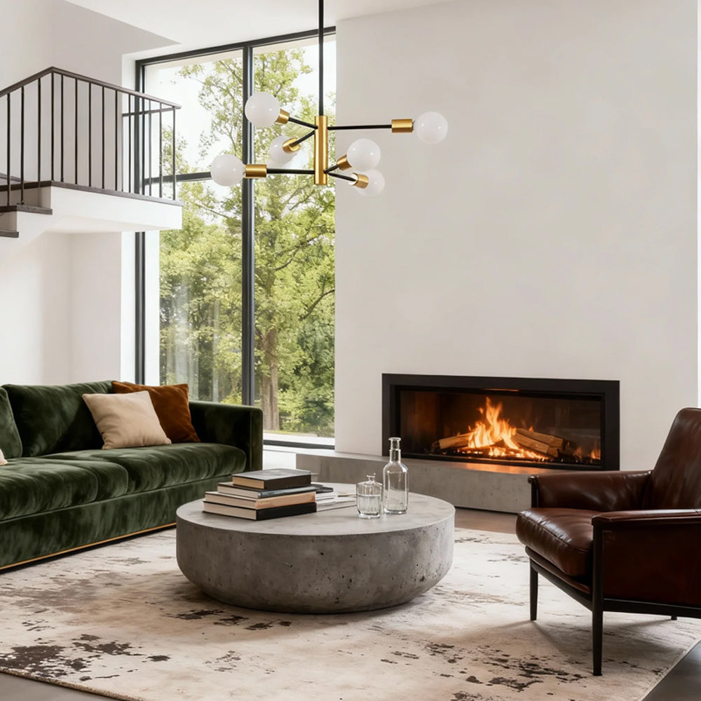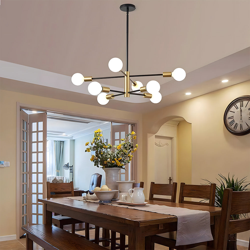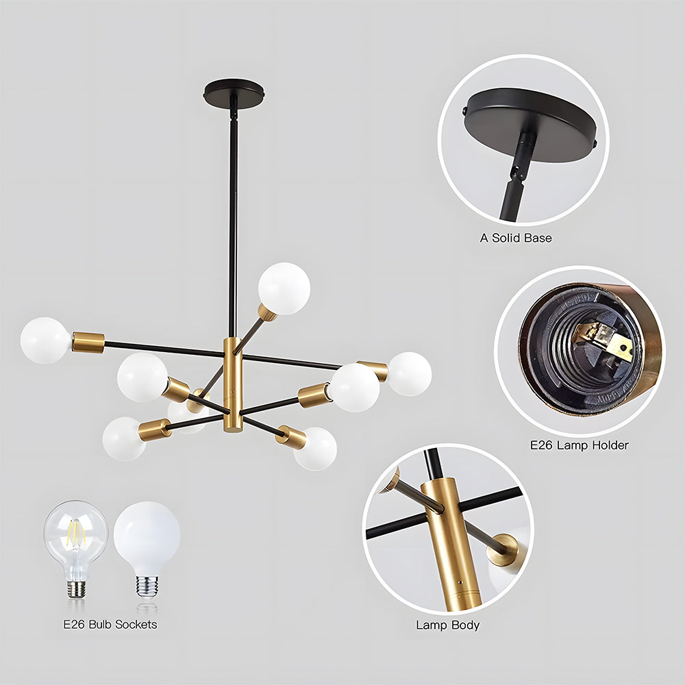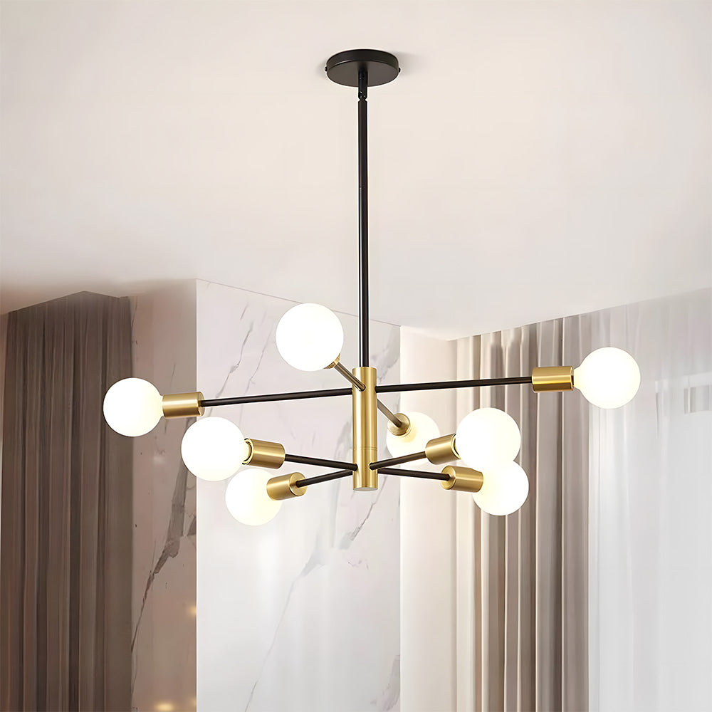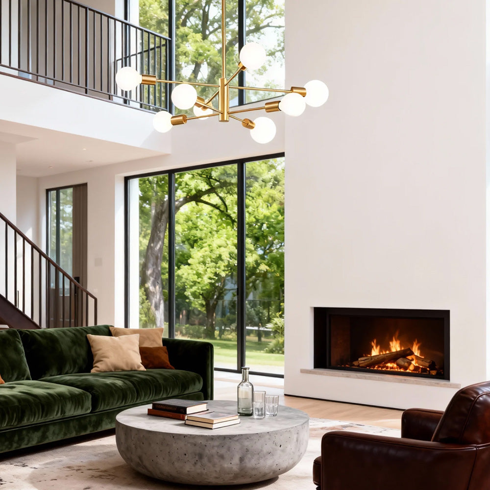 An abstract metal branch structure interprets natural forms through geometric lines. Light scatters unevenly among the branches, suitable for high-ceiling living rooms, dining areas, and similar spaces—presenting a lightweight yet dynamic modern natural aesthetic.