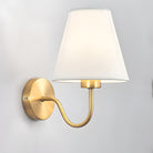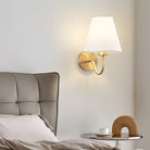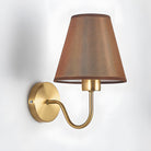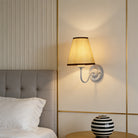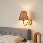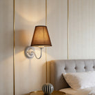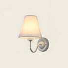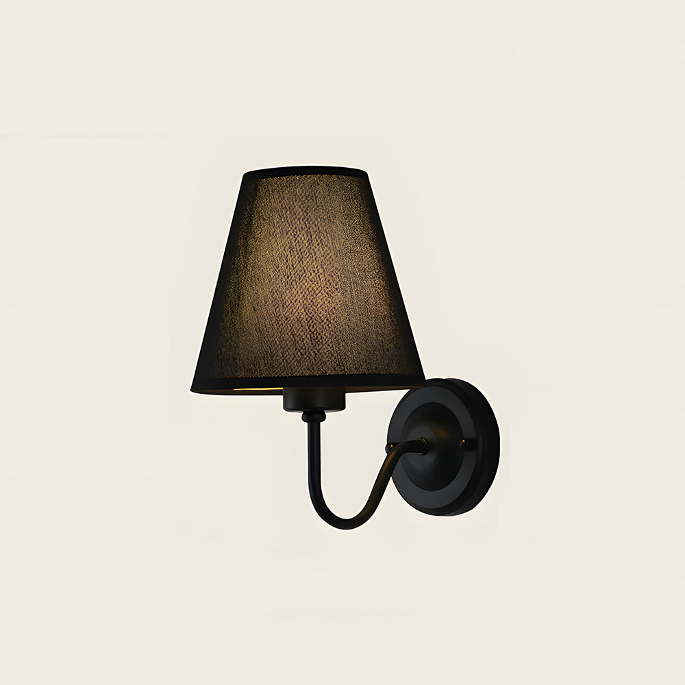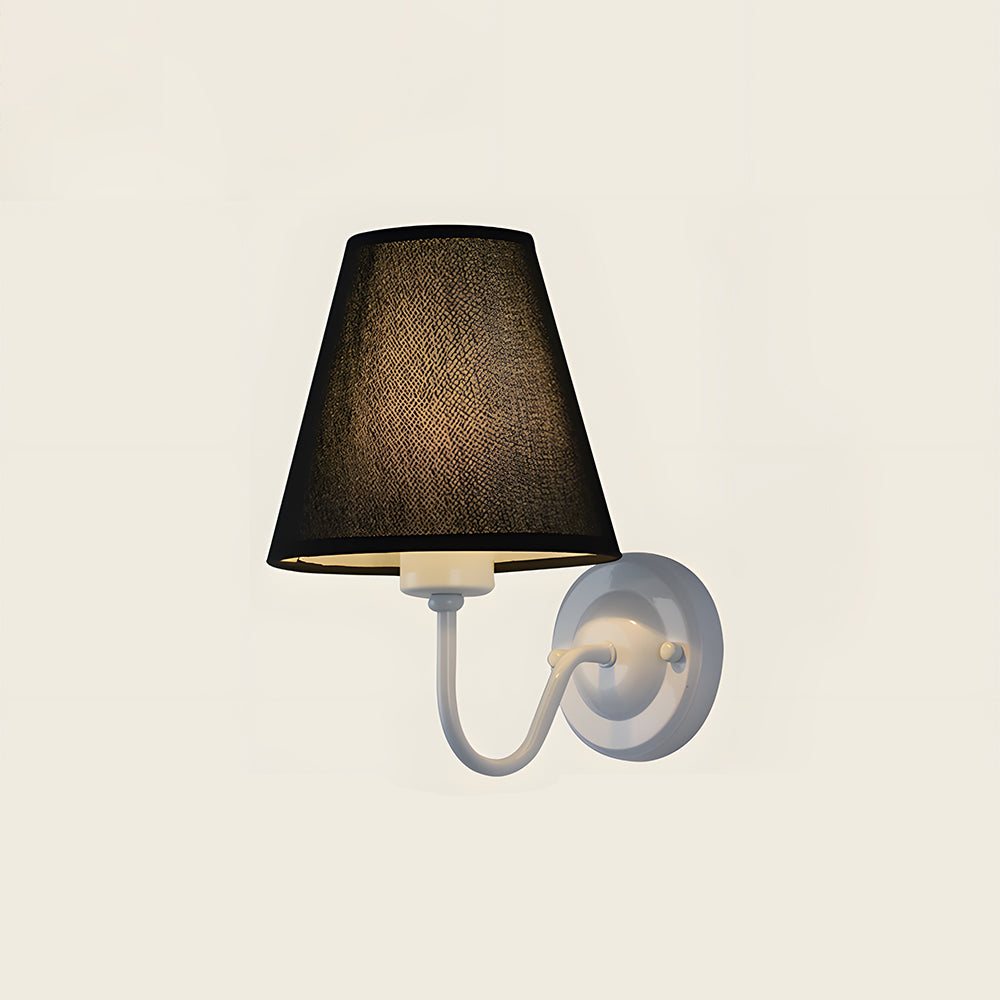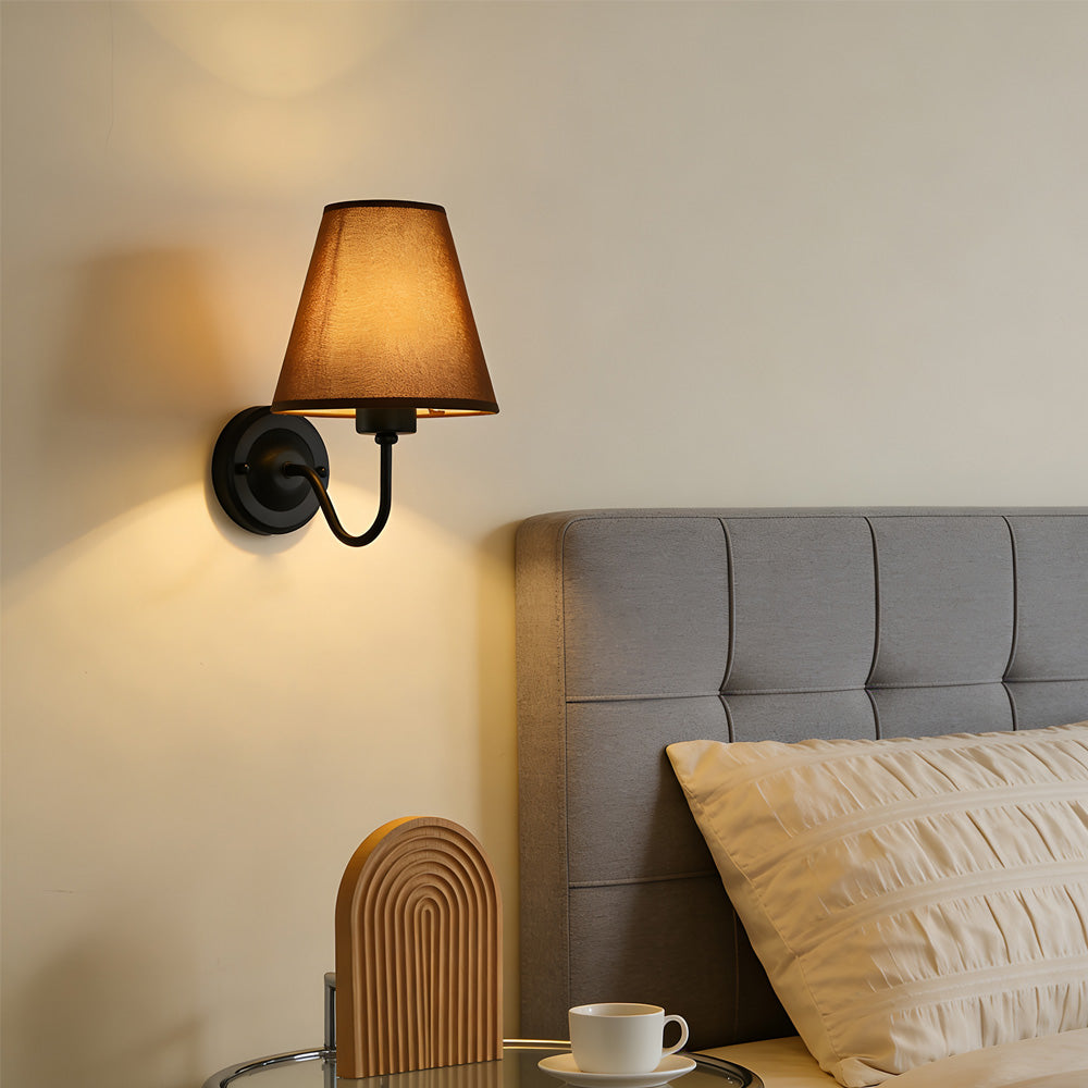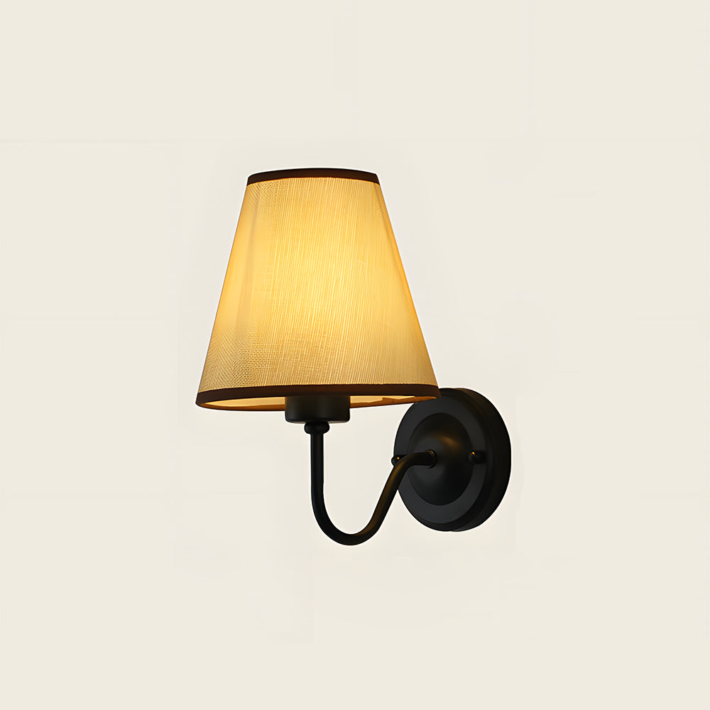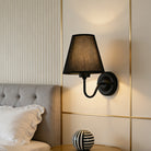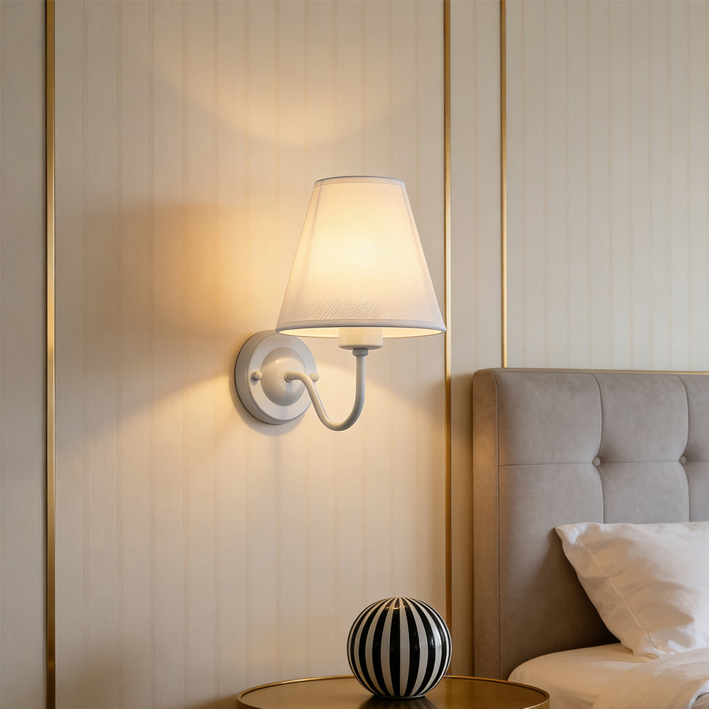 A fabric shade paired with a metal body complements living room, bedroom, and corridor walls, interpreting the tactile warmth within minimalist aesthetics through the texture of cozy woven materials.
