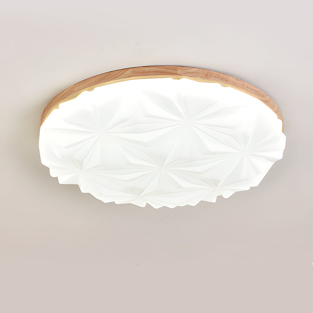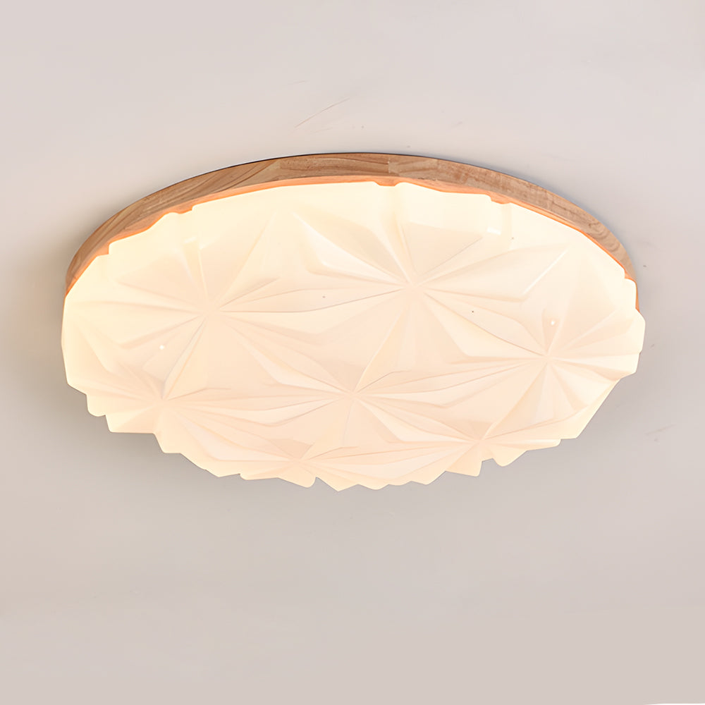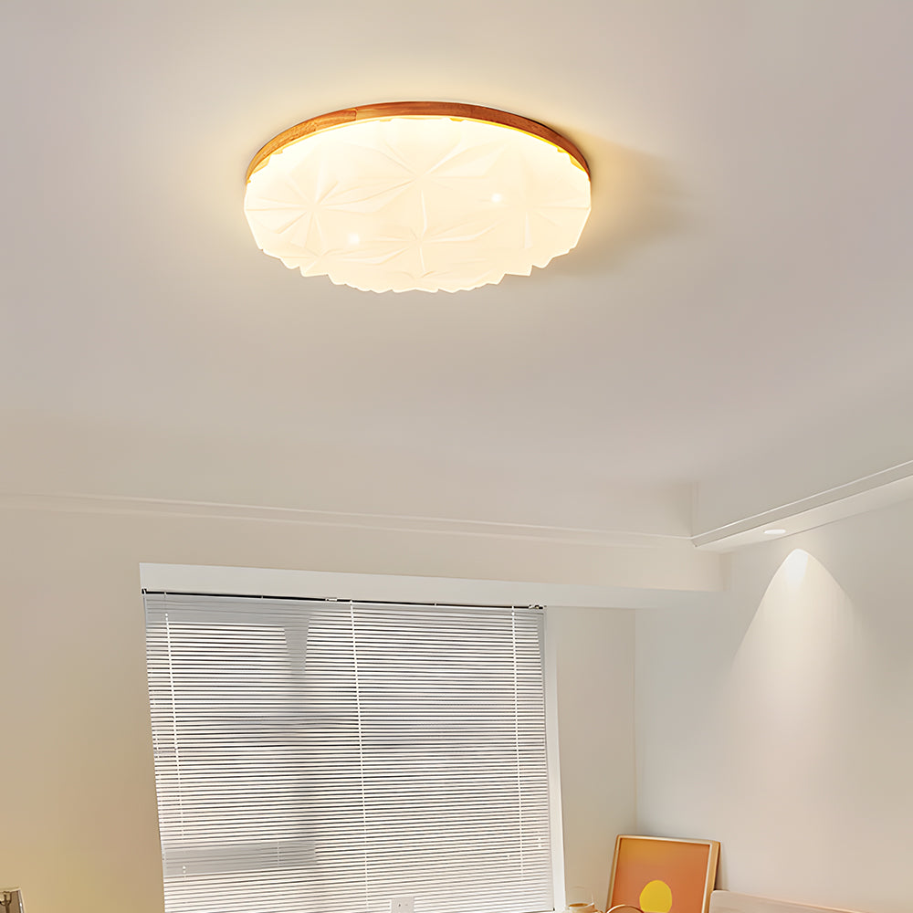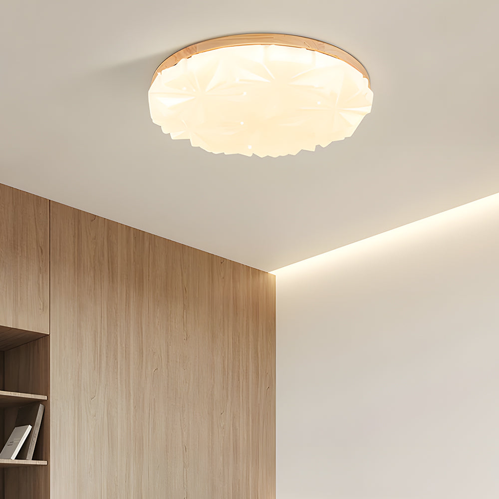 This ceiling light combines modern geometric aesthetics with natural wood craftsmanship. Light passes through the acrylic diffusion layer, creating a soft and richly layered lighting effect. It is suitable for spaces such as living rooms, dining areas, studies, and studios.