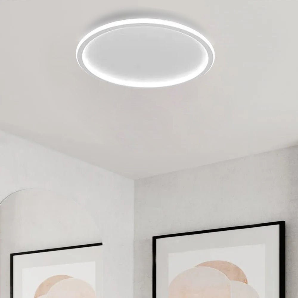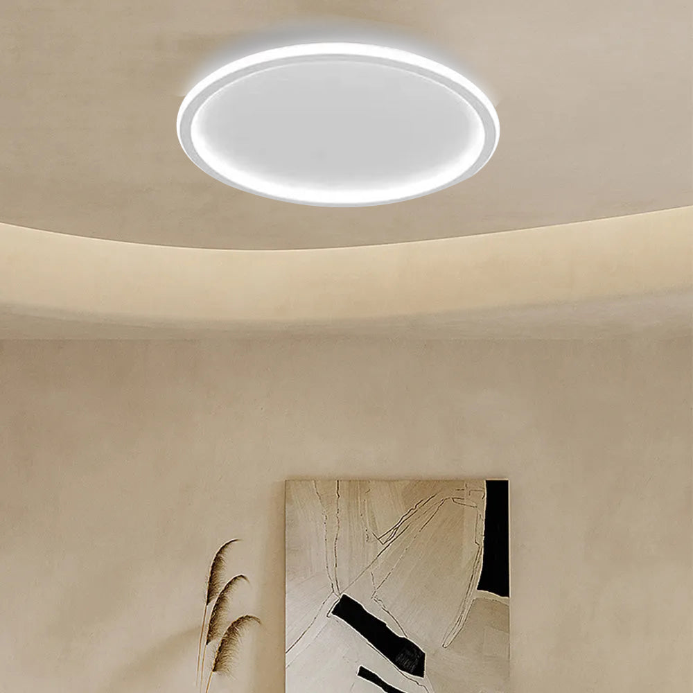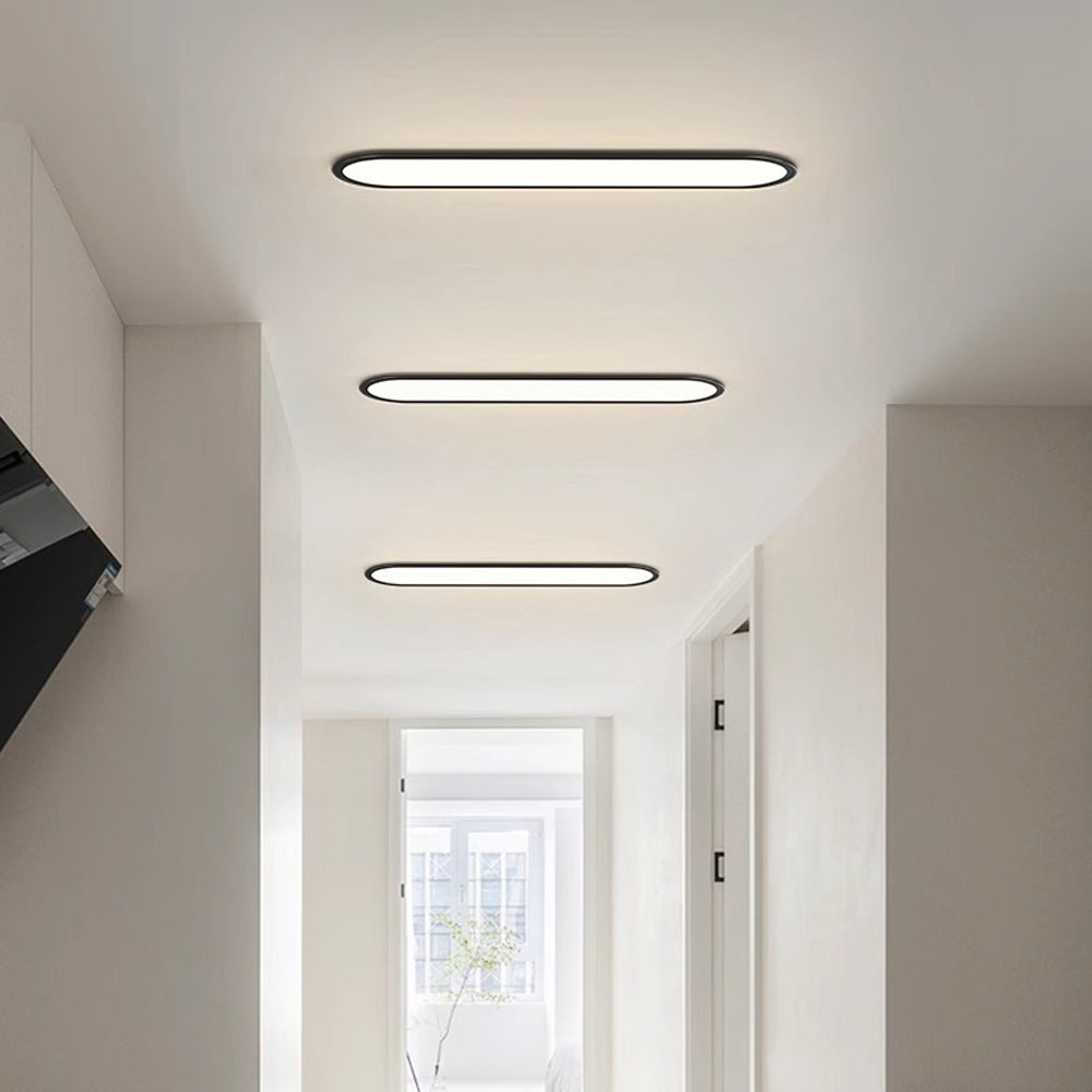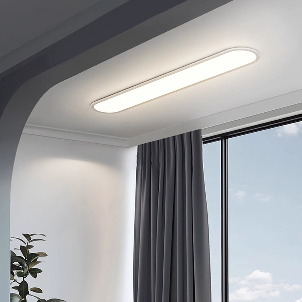 Modernize your space with this slim oval flush mount light. Crafted from iron and acrylic, it offers both durability and soft, even illumination. Its seamless white finish provides an understated yet elegant accent. The warm, dimmable LED glow creates a welcoming atmosphere, ideal for hallways, corridors, or above office desks.