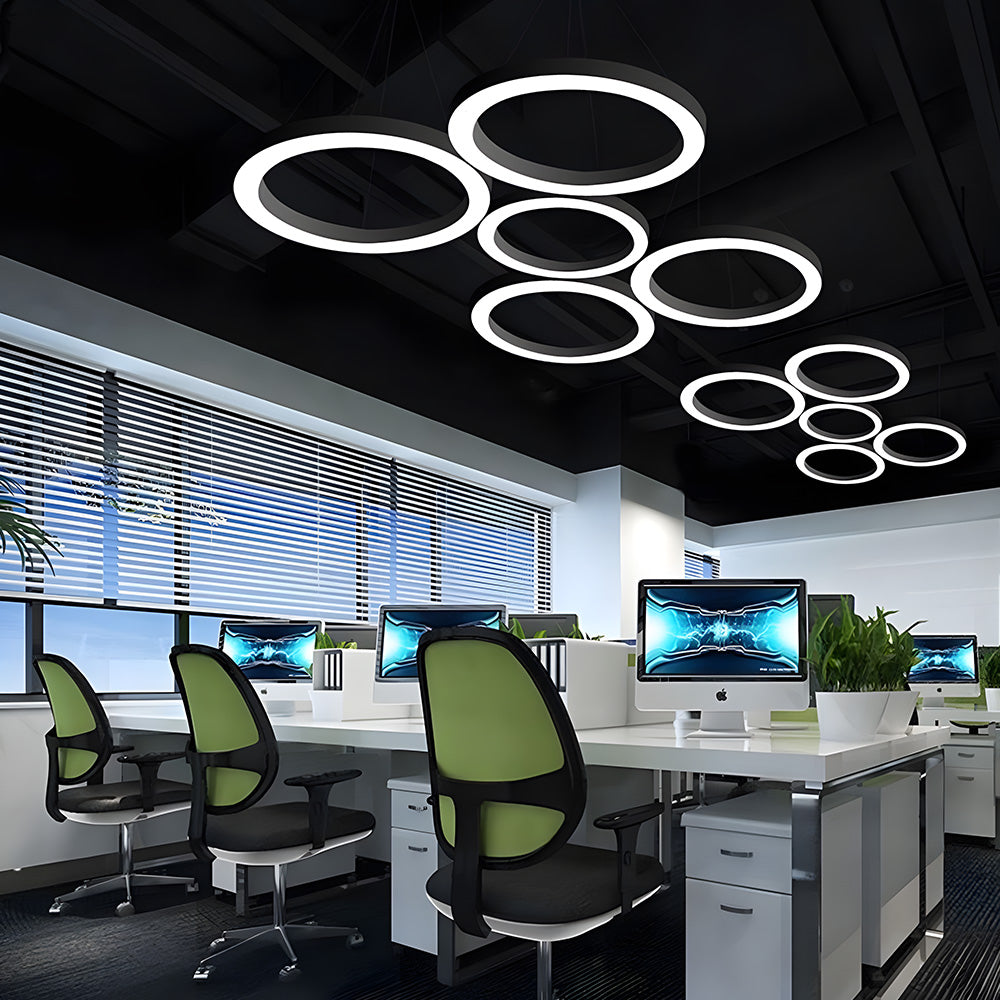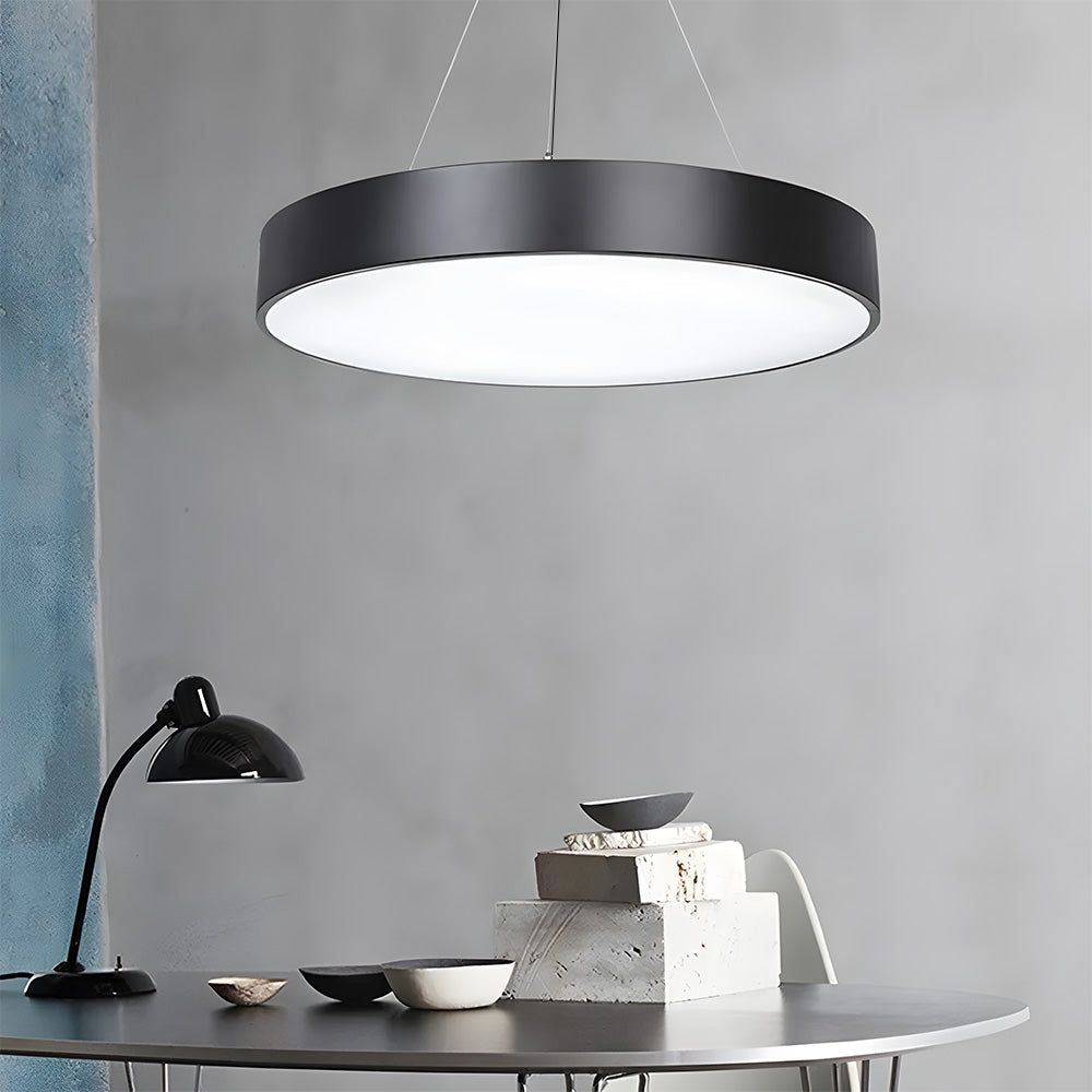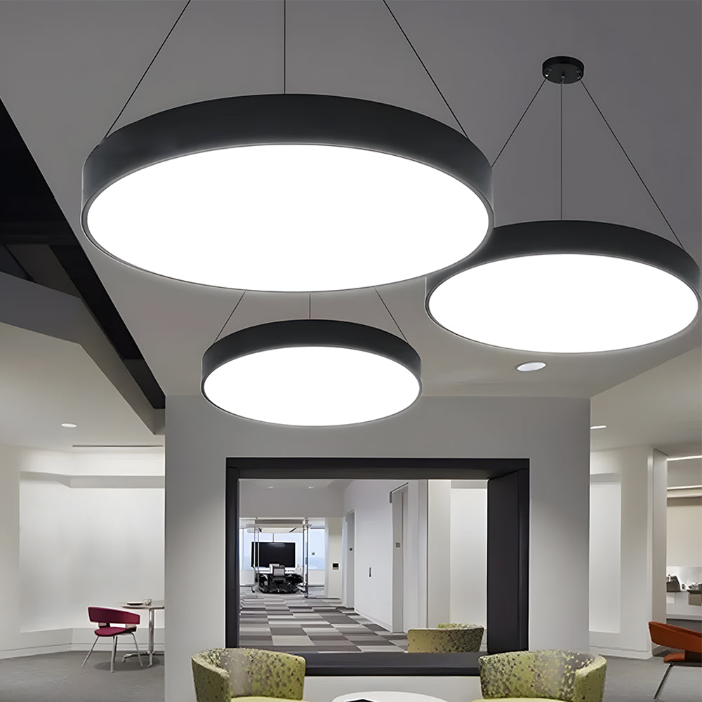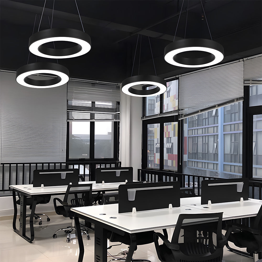 Command attention with this sleek, round LED pendant light. Its minimalist design, suspended from adjustable cables, delivers powerful, focused illumination (6000K) ideal for modern offices. Adjustable for any ceiling to create an ideal work environment.