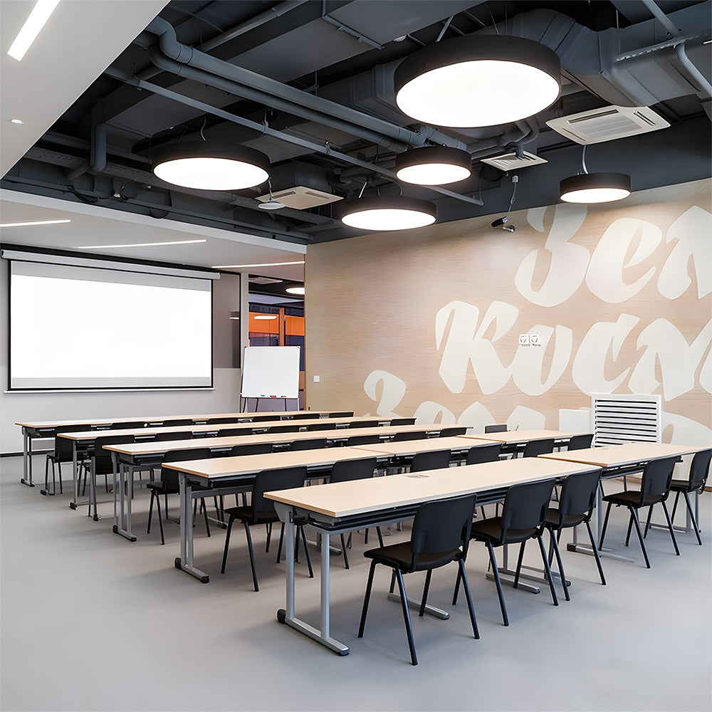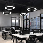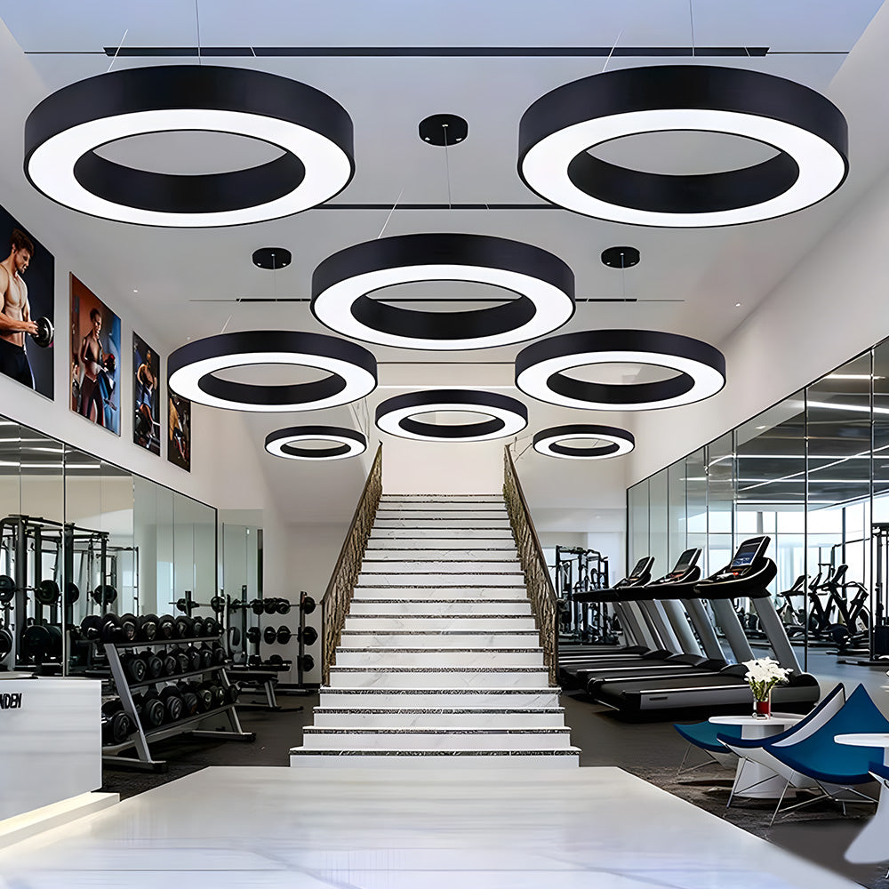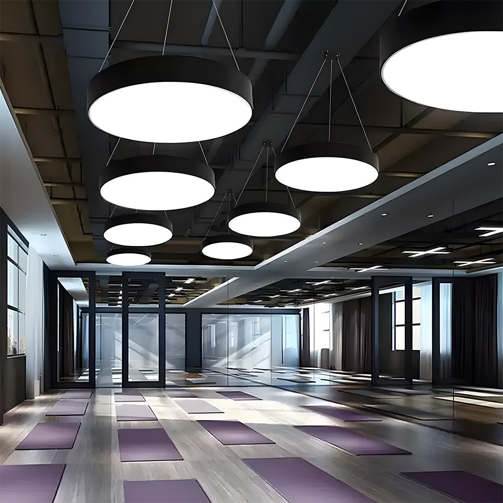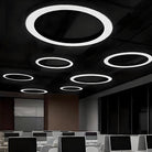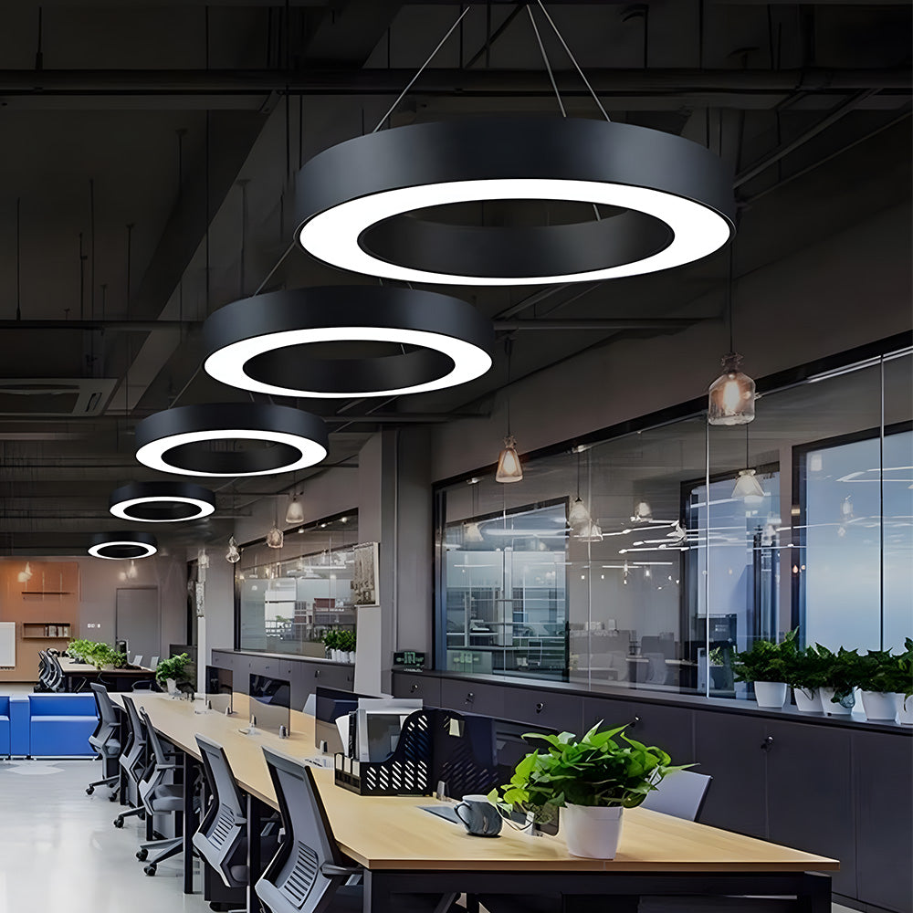 Command attention with this sleek, round LED pendant light. Its minimalist design, suspended from adjustable cables, delivers powerful, focused illumination (6000K) ideal for modern offices. Adjustable for any ceiling to create an ideal work environment.
