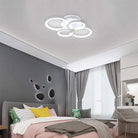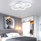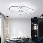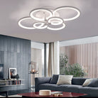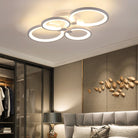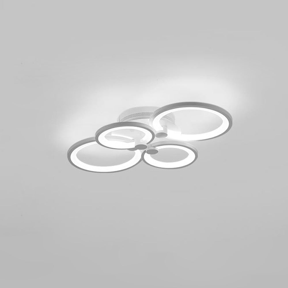 This modern semi-flush mount light features overlapping circular rings for a sculptural silhouette. Crafted from premium metal and acrylic, it offers a perfect blend of durability and contemporary style, ideal for living rooms, bedrooms, and hallways.