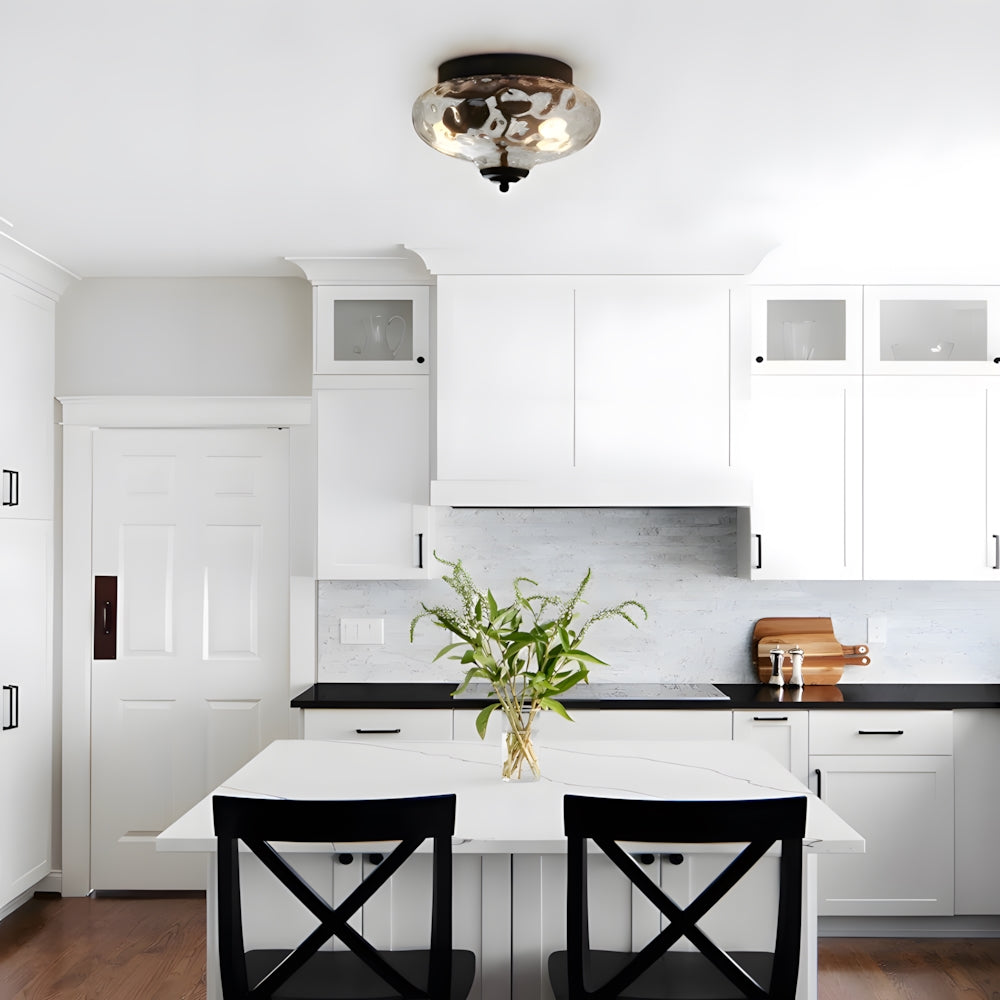 Add low-key charm to daily spaces! Its hammered glass shade (vintage sugar pot lid design) brings soft romance, while 2 E26/E27 bulbs (not included) emit warm, stunning light—this distinctive fixture elevates staircases, entryways, and kitchens effortlessly.