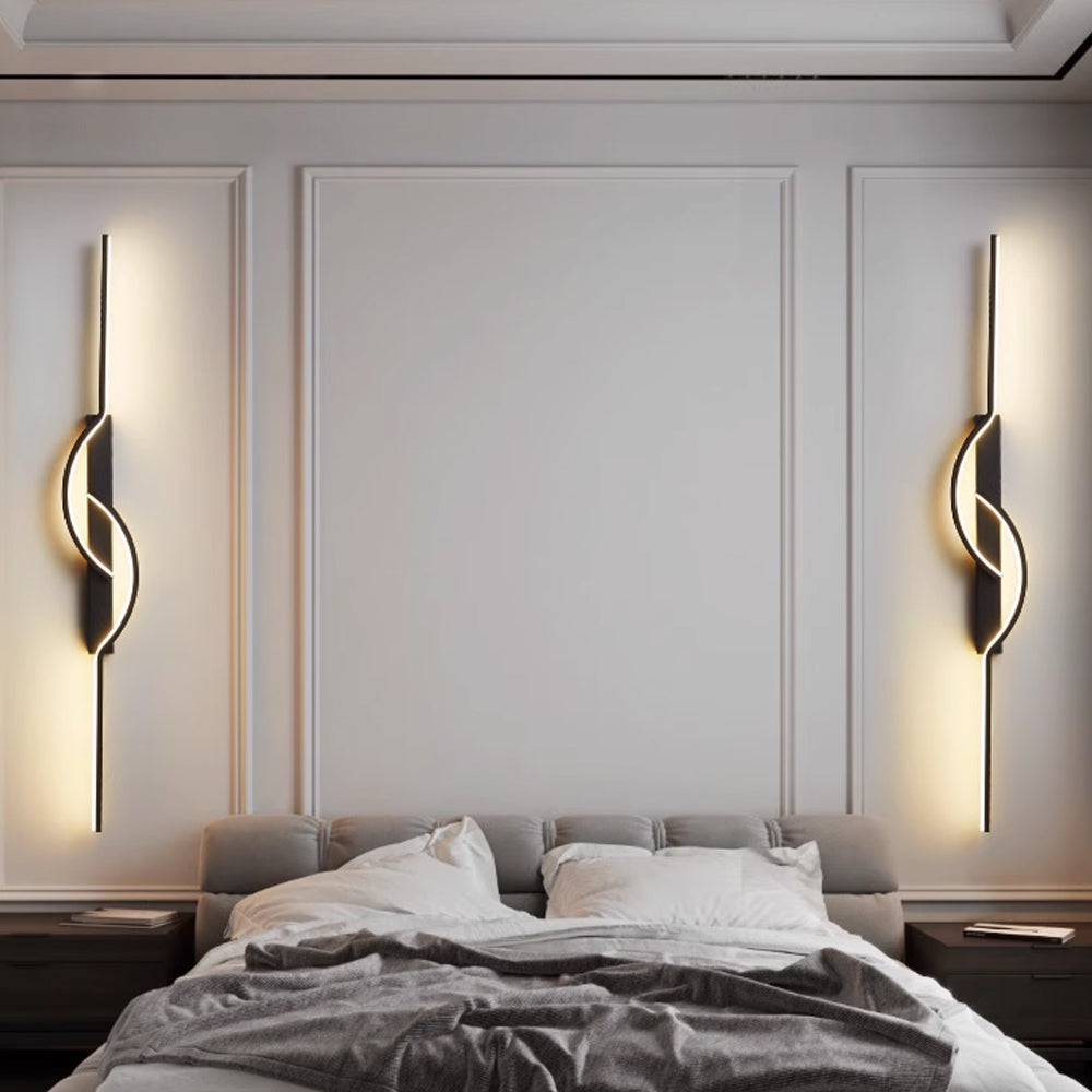 Modern Simple Linear LED Black Bedside Wall Lamp