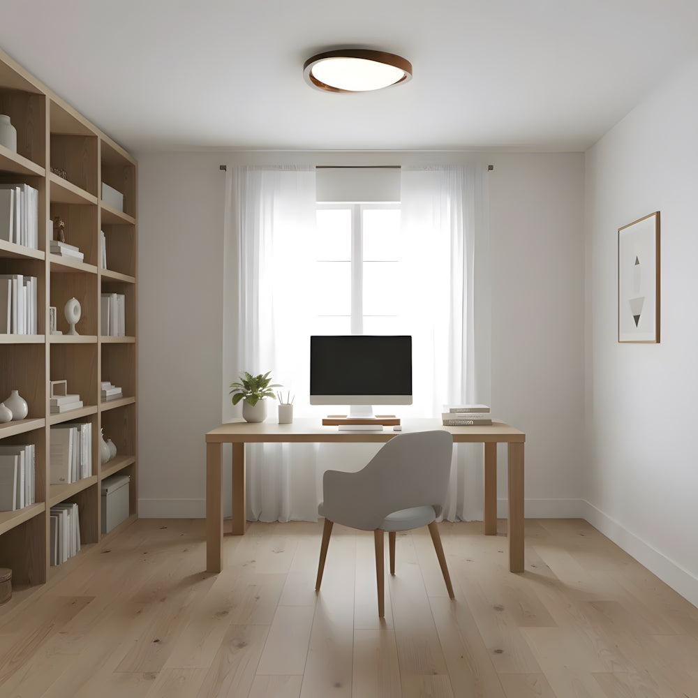 Blends sleek minimalism with natural elegance! A slim metal frame finished in water-transfer wood grain casts warm, inviting glow—ideal for upgrading contemporary home interiors effortlessly.