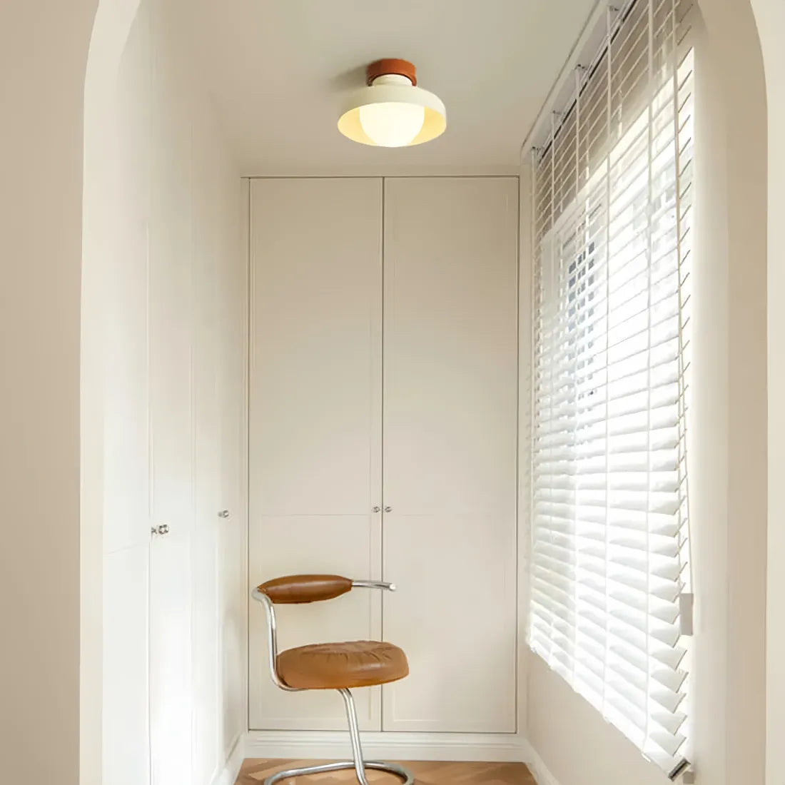 The Semi Flush Mount Cream Glass Hallway Ceiling Light offers a sophisticated touch to any hallway with its sleek cream glass shade. Its semi-flush mount design ensures a contemporary look. Perfect for creating a welcoming atmosphere, this ceiling light seamlessly blends with various decor styles, making it a versatile choice for your home.