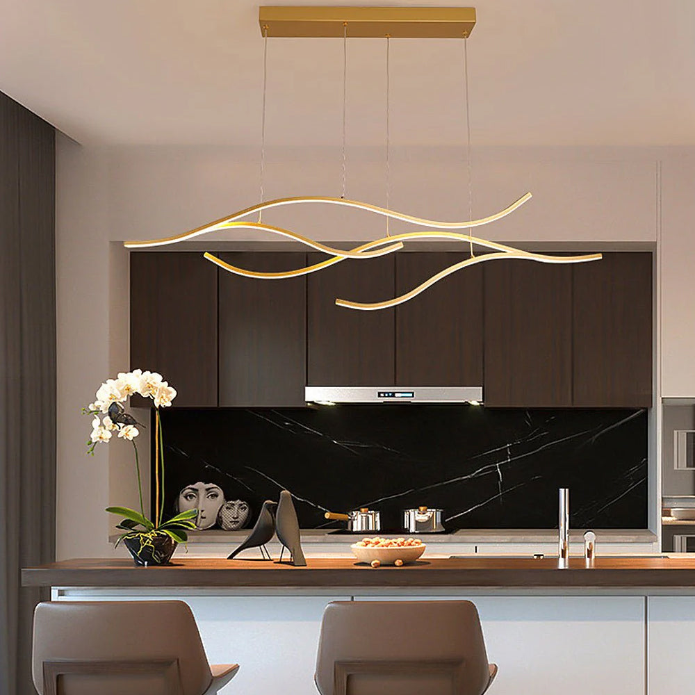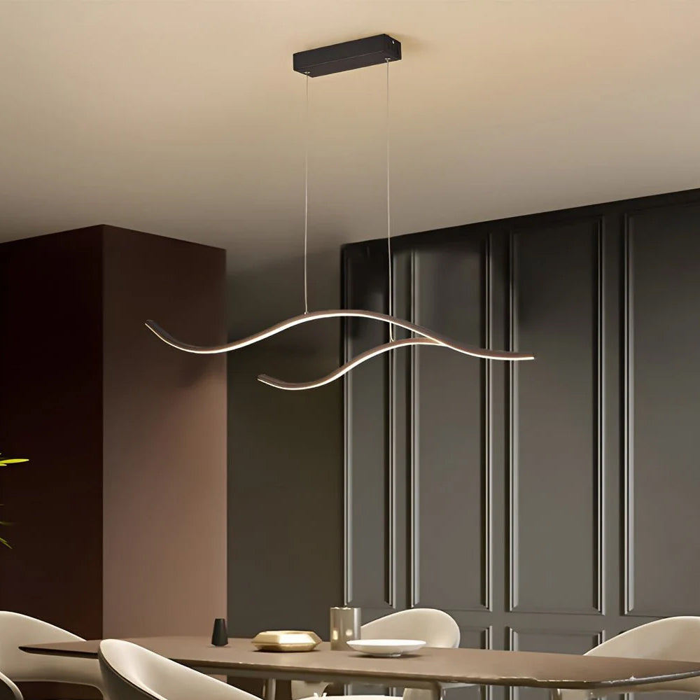 This wave pendant light blends modern comfort with elegant design, featuring flowing lines that create a sense of movement. Integrated LED lights offer soft, warm brightness ideal for dining tables.