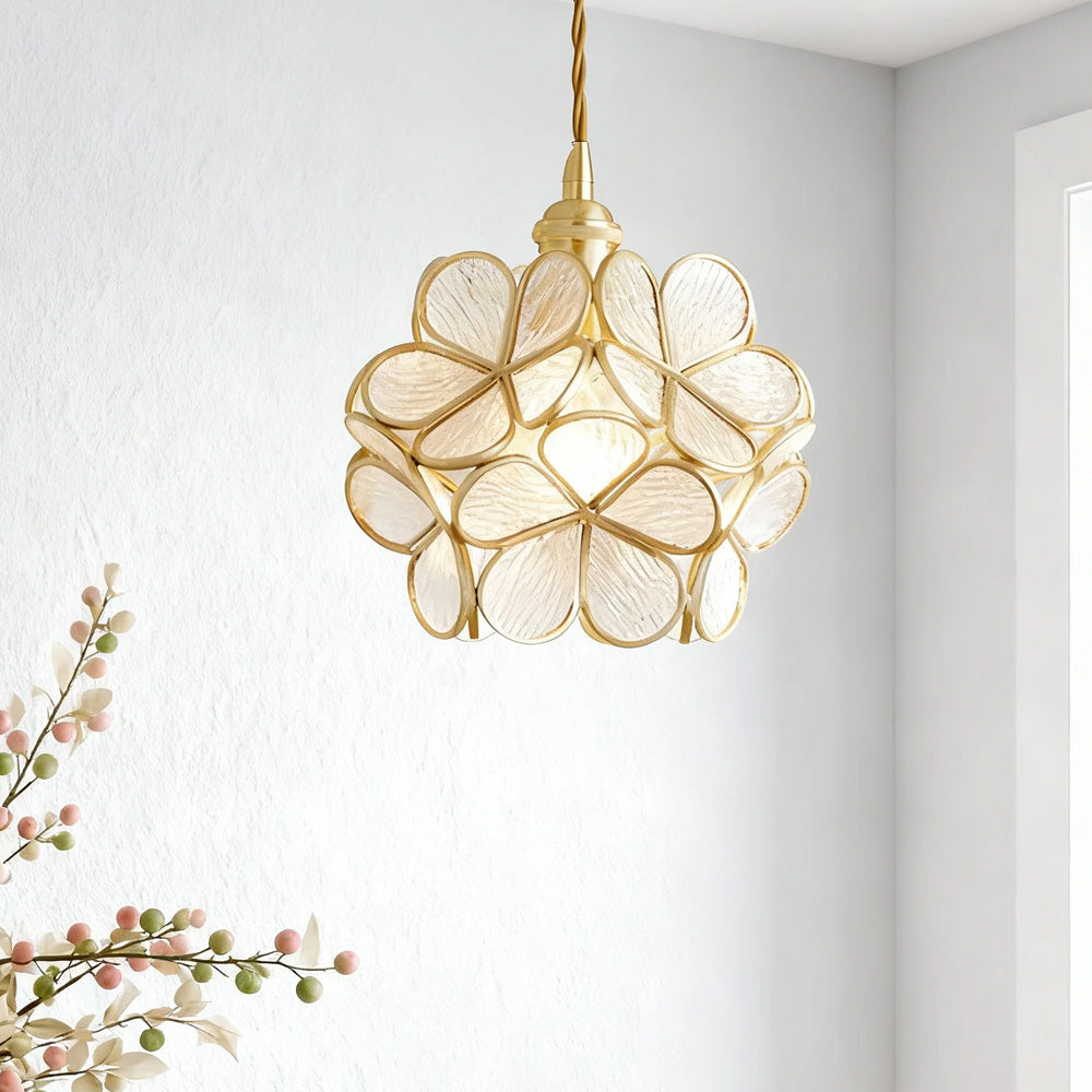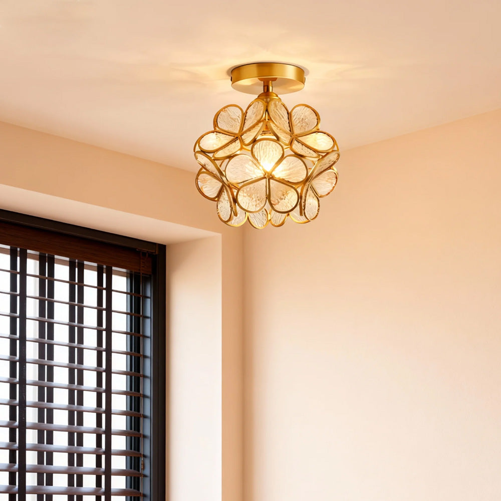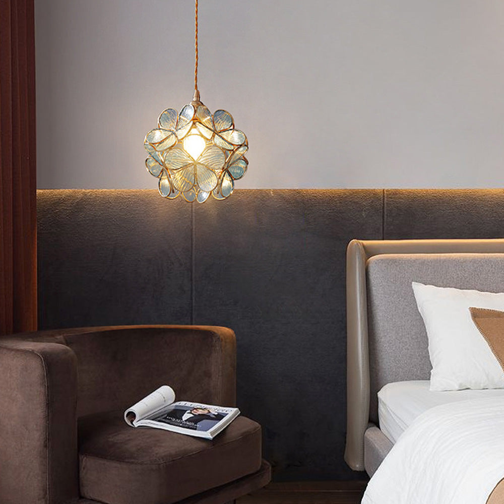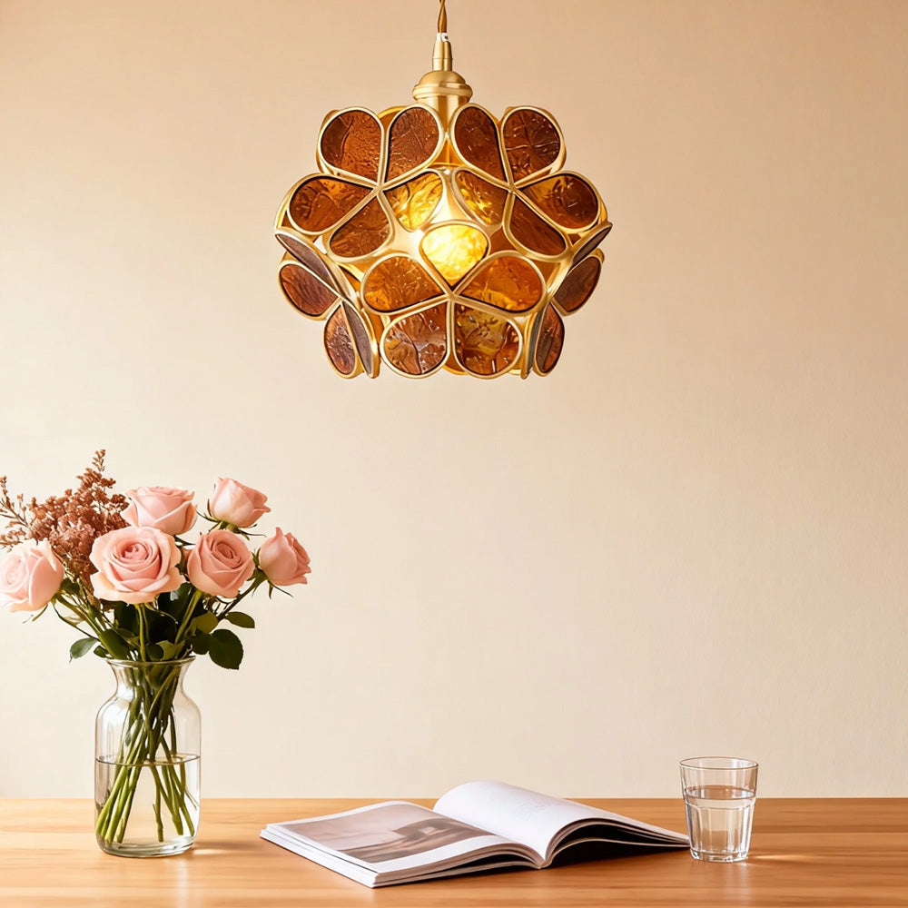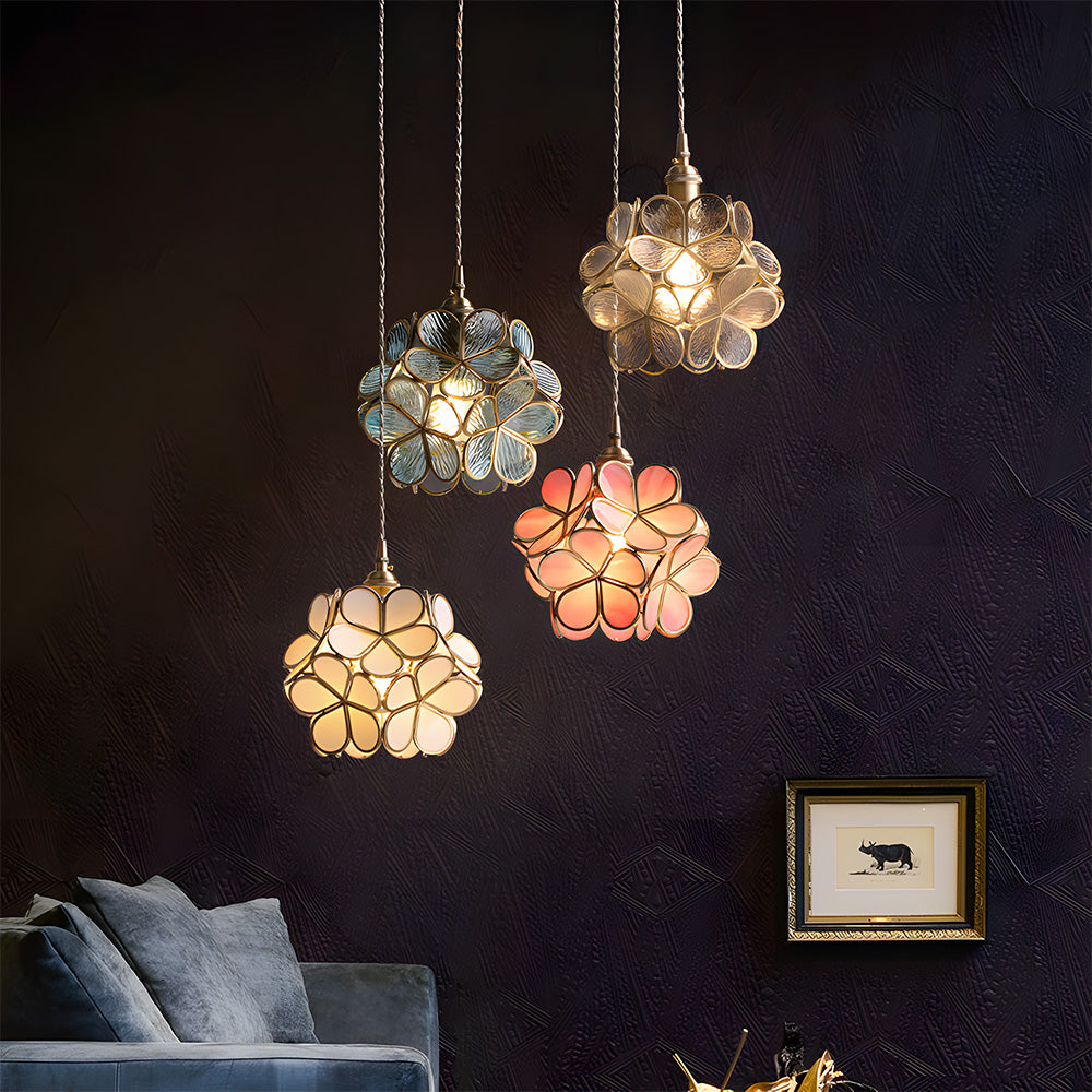Light refracts between the glass petals, creating a soft gradient glow. Suitable for living rooms, dining areas, hotel lobbies, and similar spaces, it interprets the balanced aesthetics of "natural forms and minimalist luxury" in Scandinavian design.
