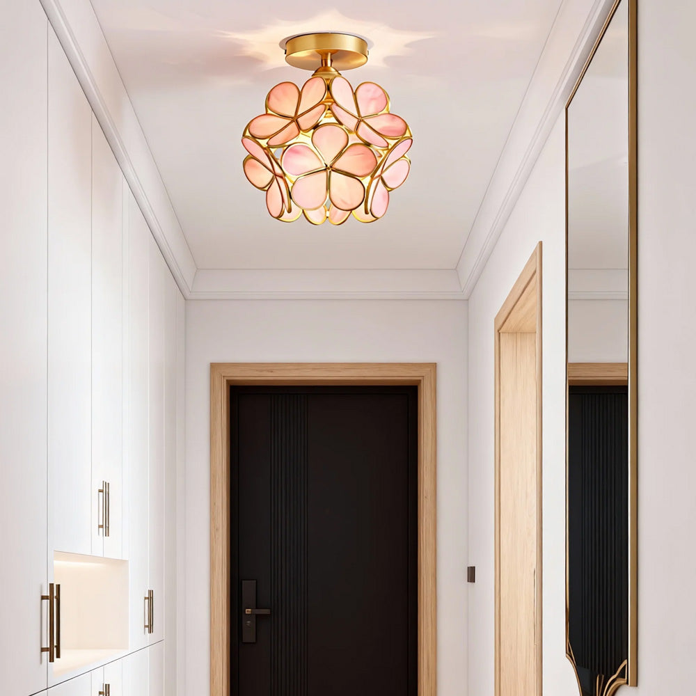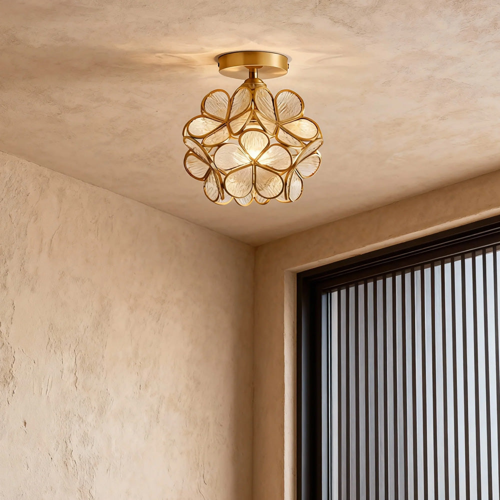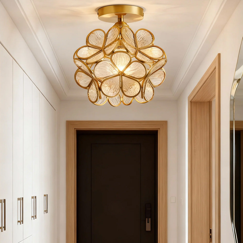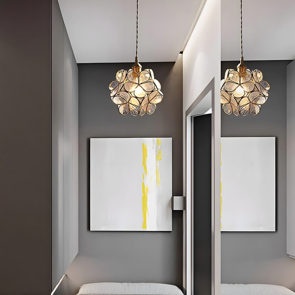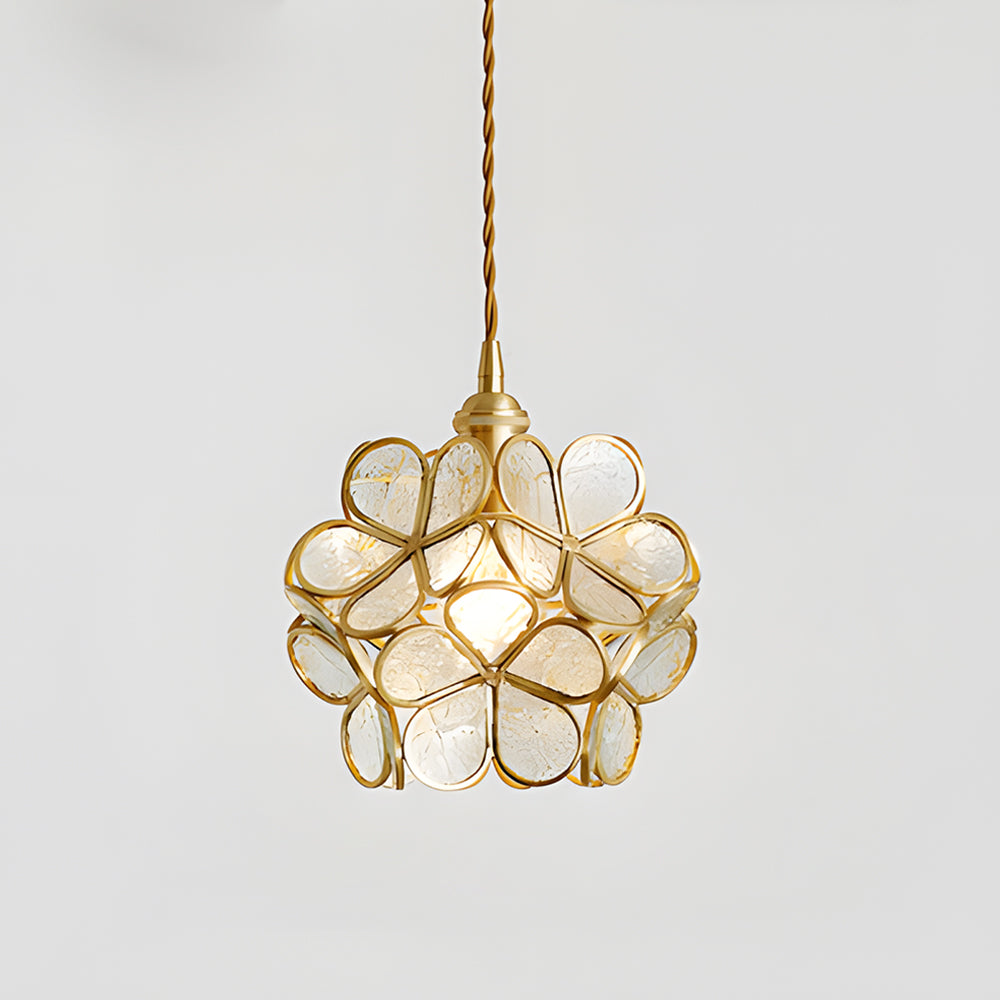 Light refracts between the glass petals, creating a soft gradient glow. Suitable for living rooms, dining areas, hotel lobbies, and similar spaces, it interprets the balanced aesthetics of "natural forms and minimalist luxury" in Scandinavian design.