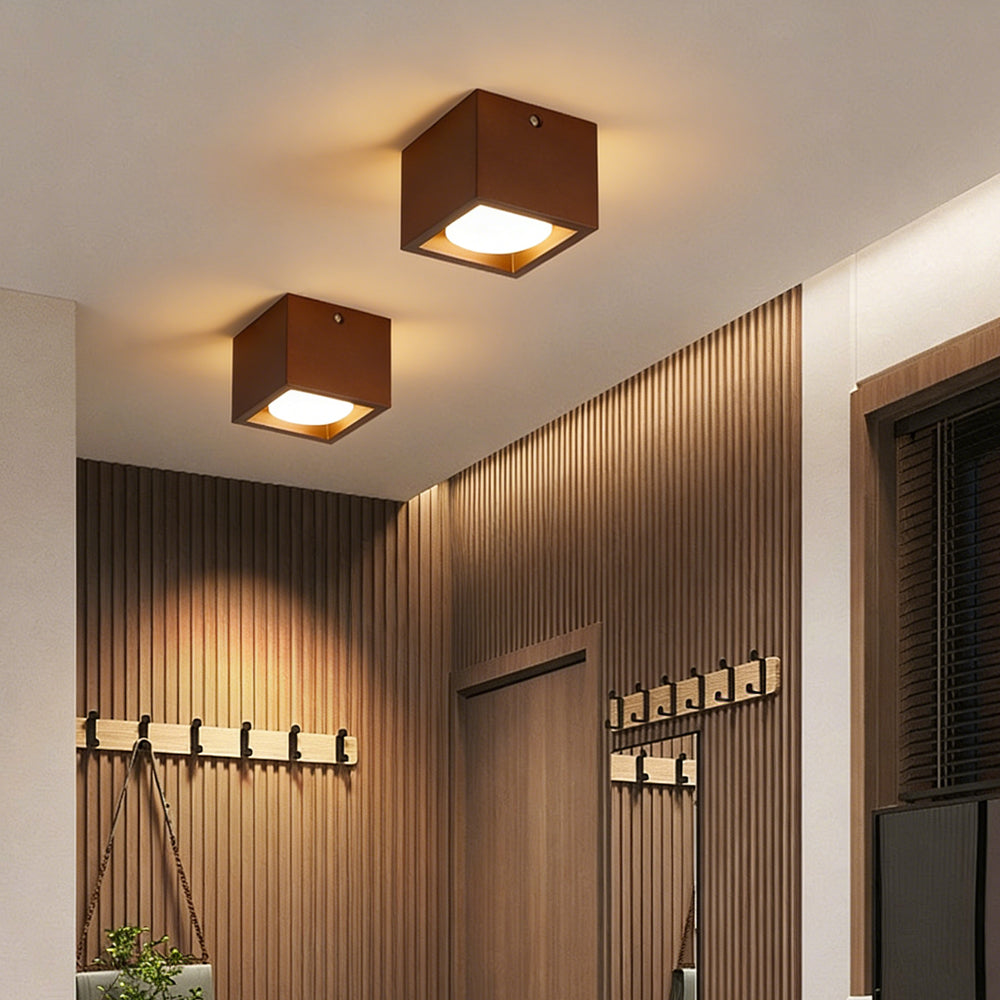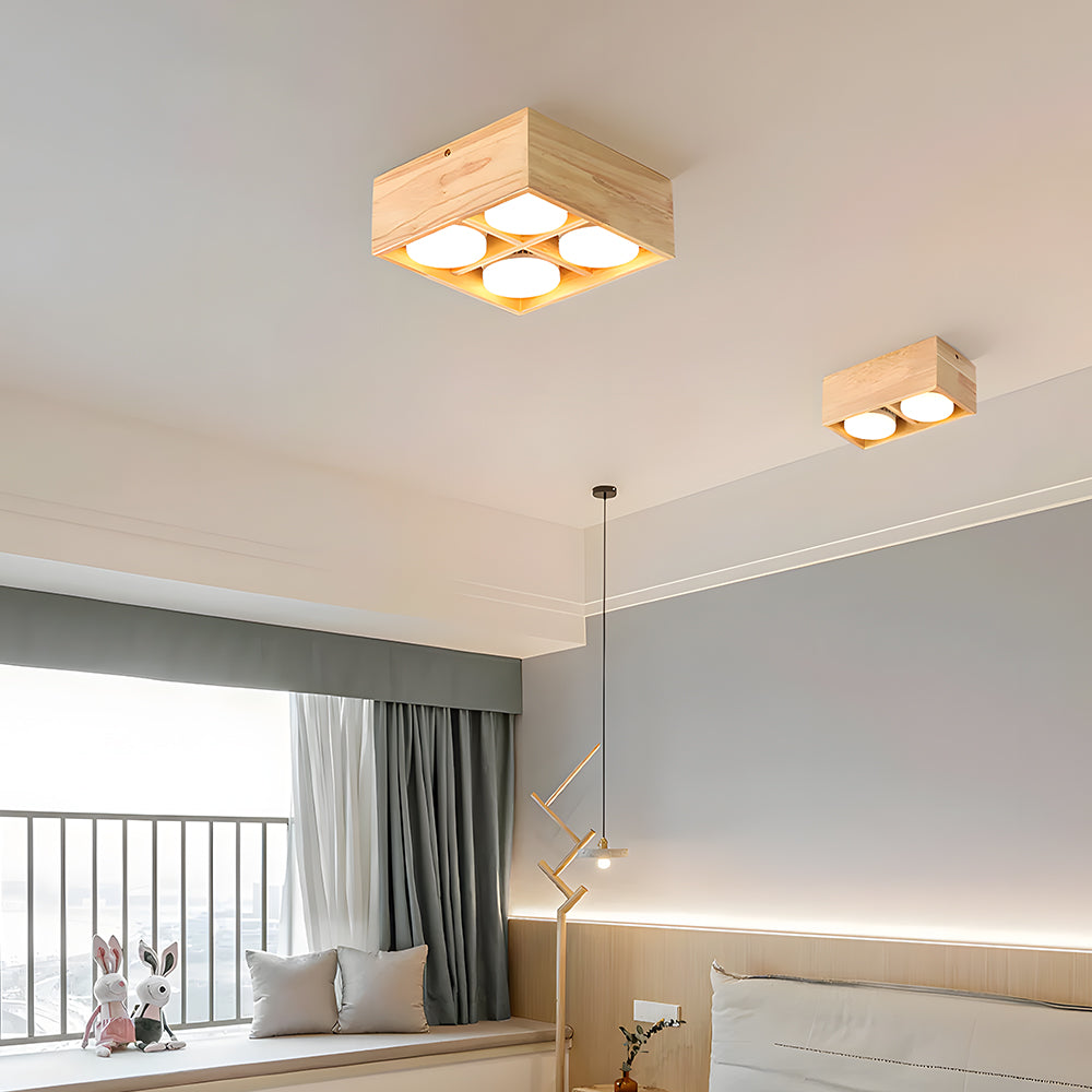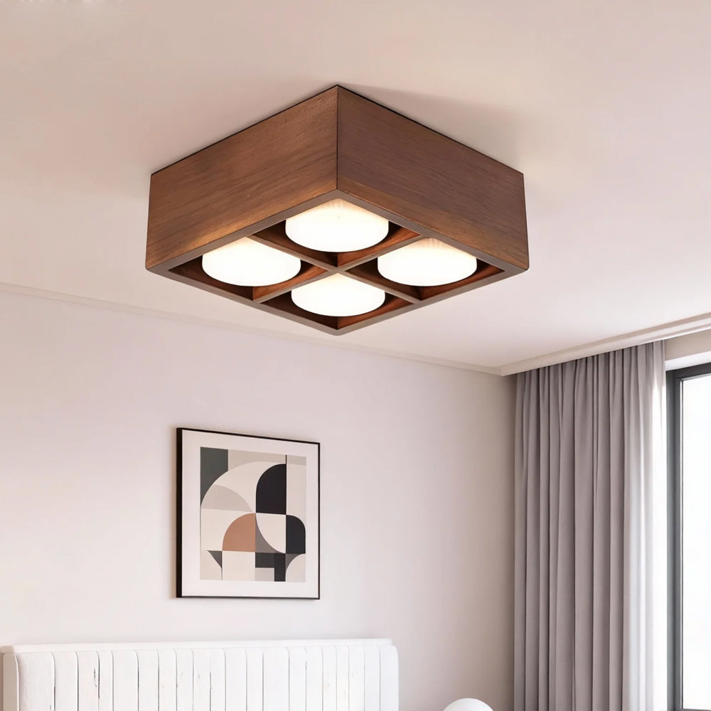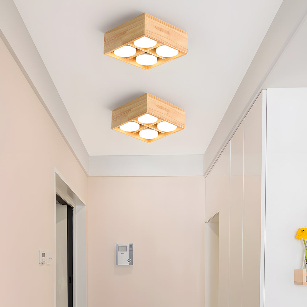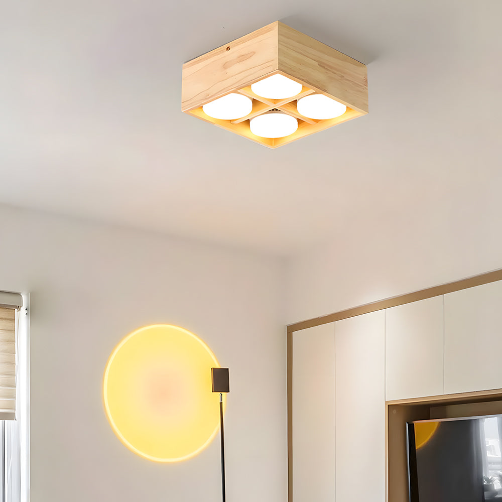 Nordic Minimalist Modern Square Solid Wood Ceiling Light