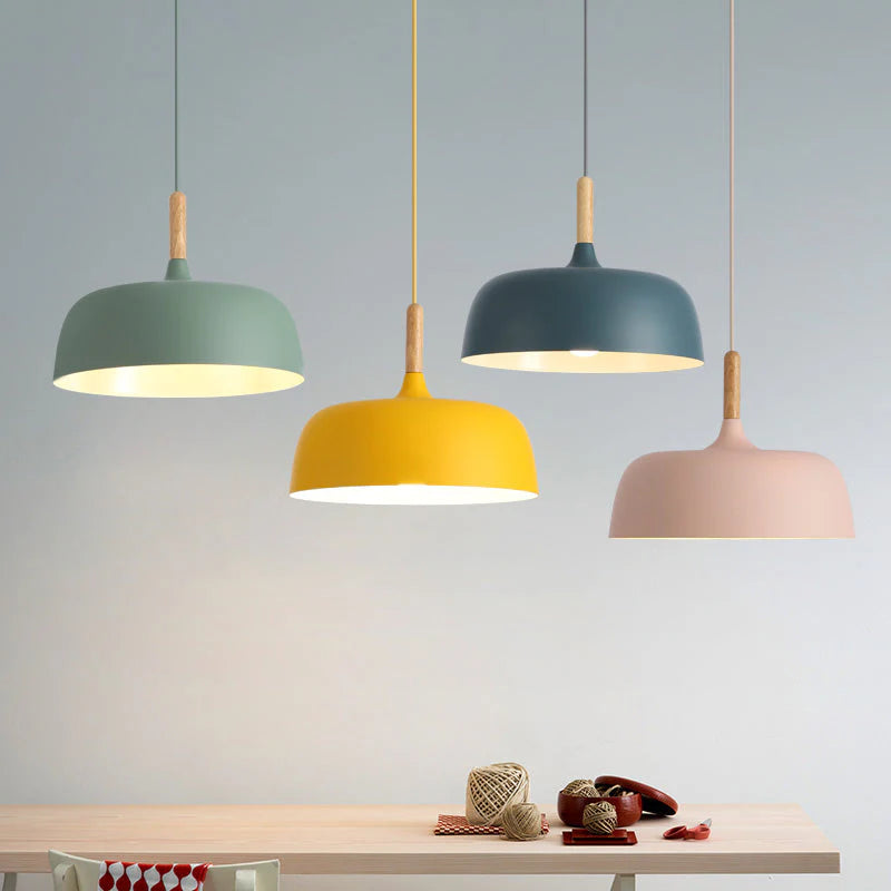 Brighten your dining space with this Nordic colorful aluminum pendant light. Sleek and playful, it's perfect for kitchens, dining rooms, or cafés seeking modern charm with a pop of color.