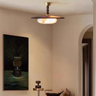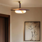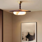 The Ceiling Light merges a sleek wooden shade with an alabaster or glass diffuser, casting a warm glow. Accented with brass and a beaded stem, it adds a sophisticated, timeless centerpiece to any room.