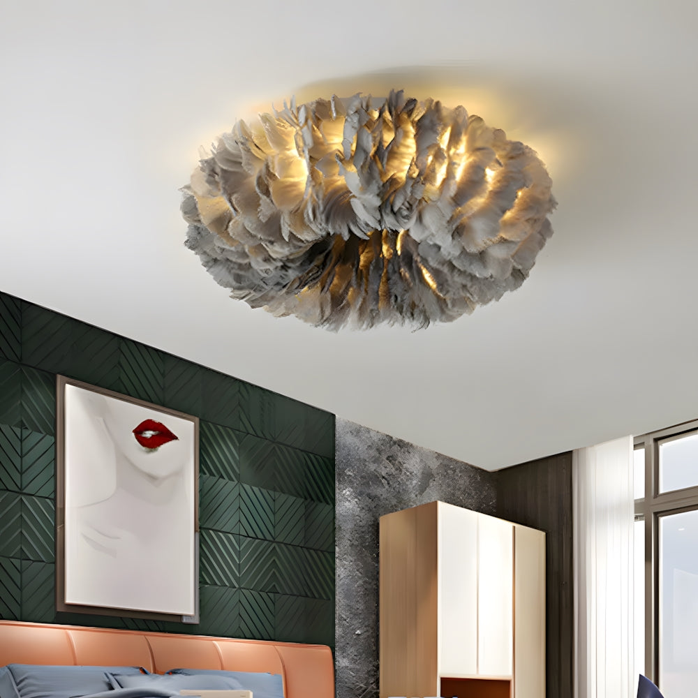 Light up your space with modern elegance! Its sleek design blends seamlessly with any room, while delicate feather detailing adds a soft, warm charm. Upgrade your lighting to craft a cozy, inviting atmosphere effortlessly.