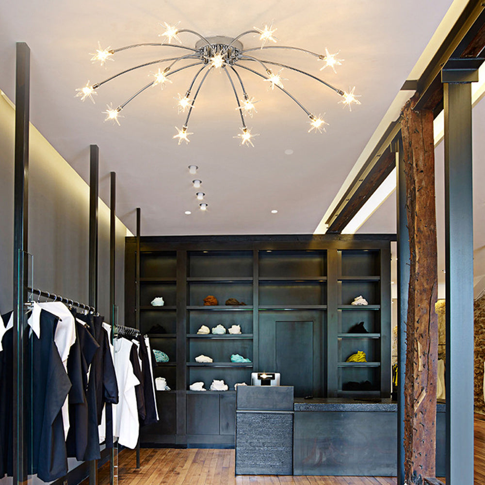 Personalized Art Deco Starry Metal Glass LED Flush Mount Ceiling Light