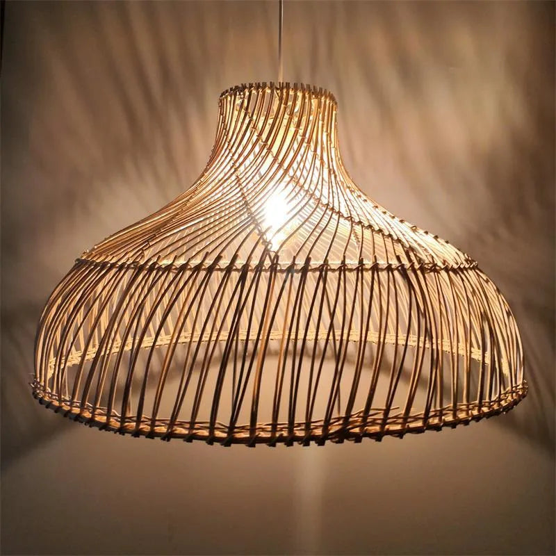 Boho Style Lamp for Home Rustic Hand-Woven Rattan Pendant Lights